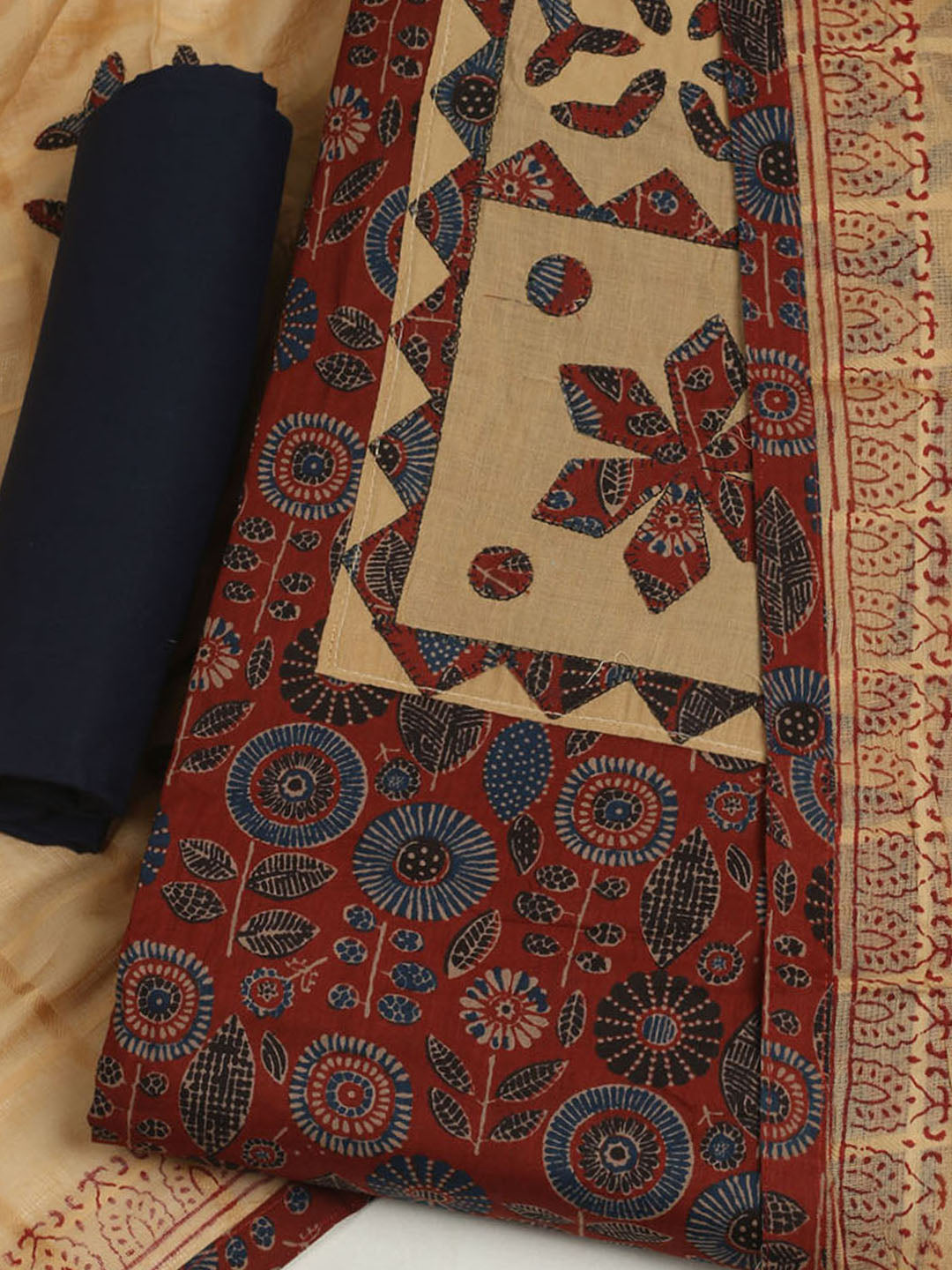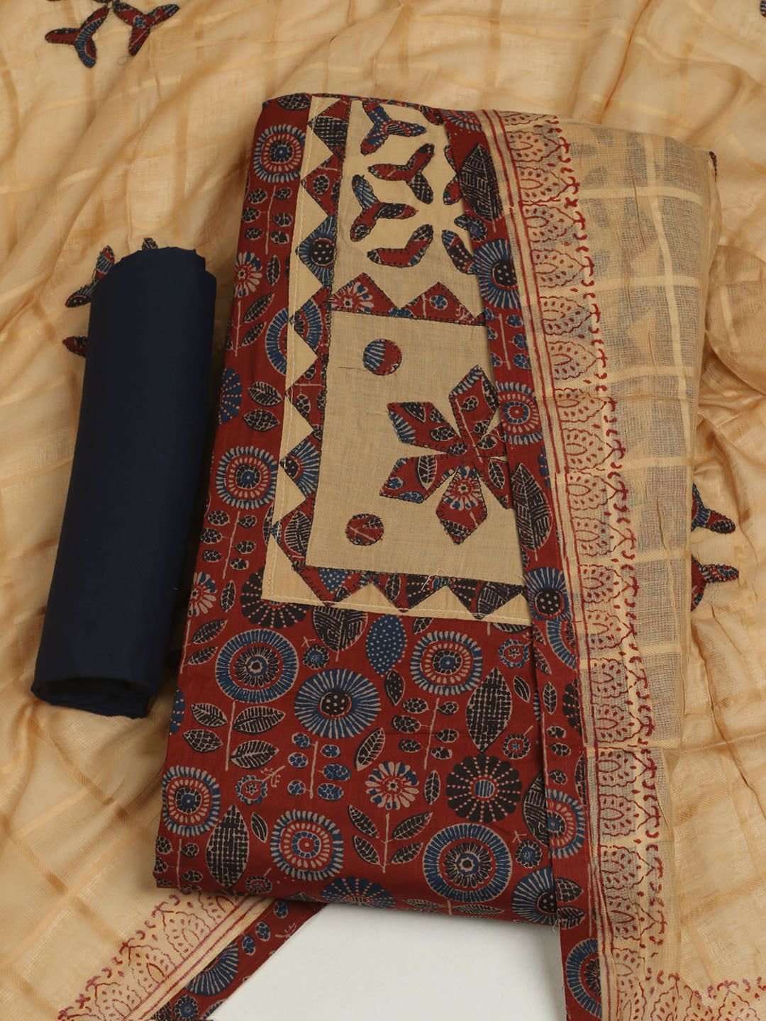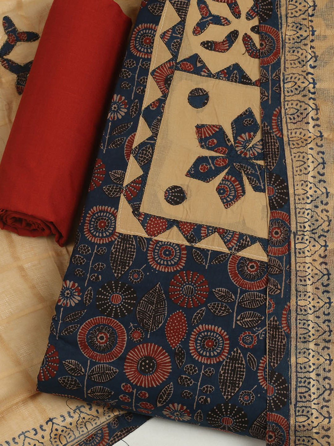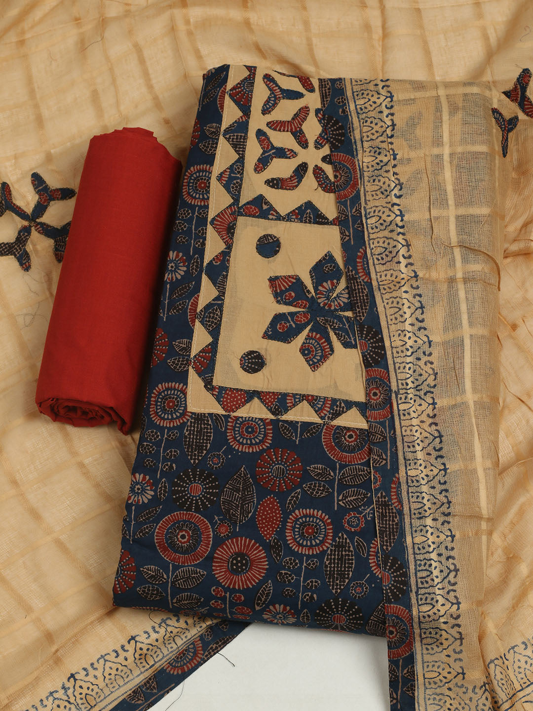 Printed Cotton Unstitched Suits Printed Suit With Pant & Dupatta