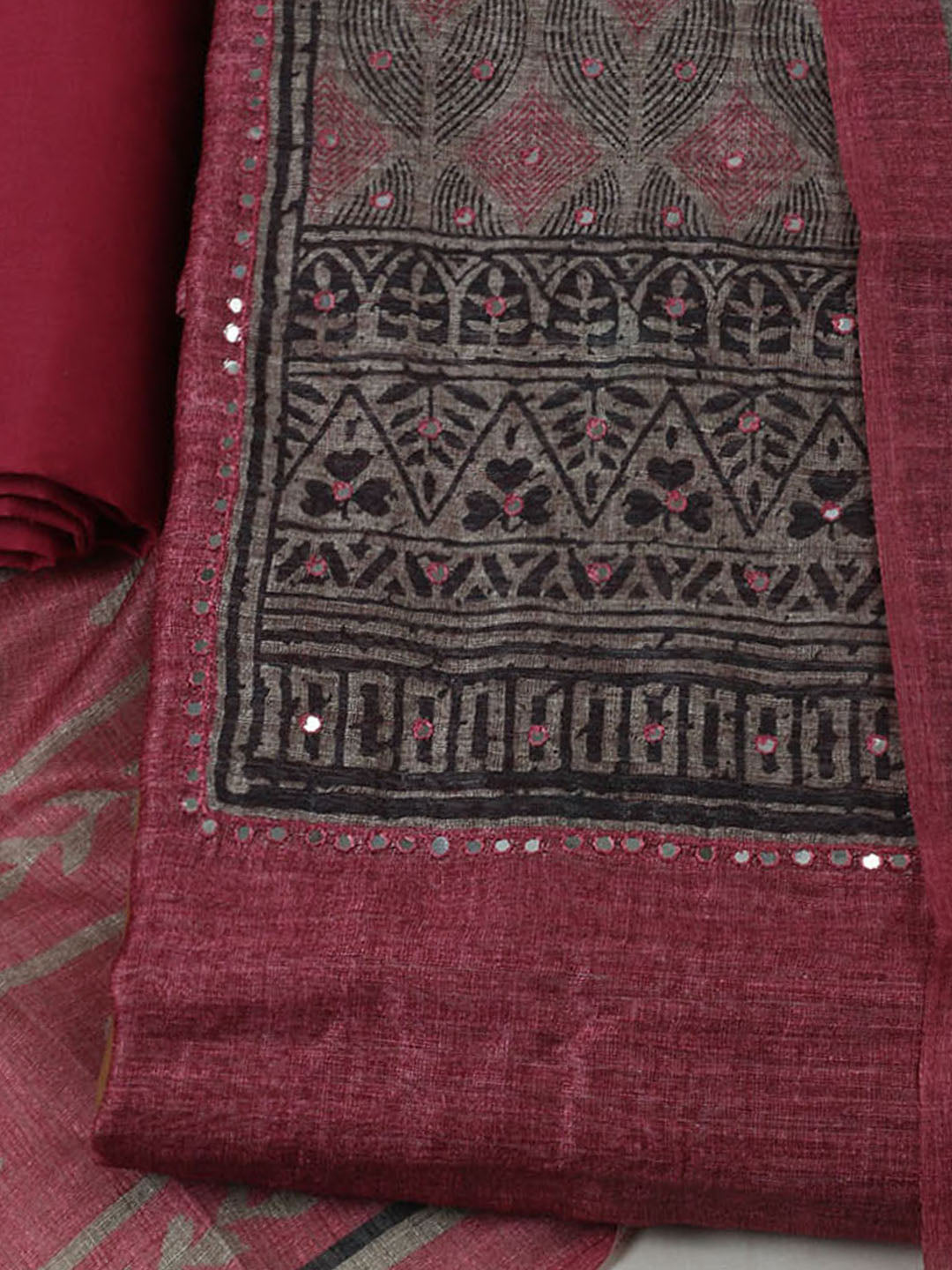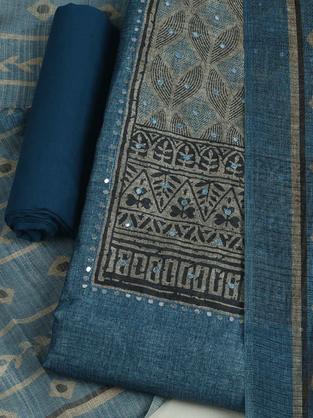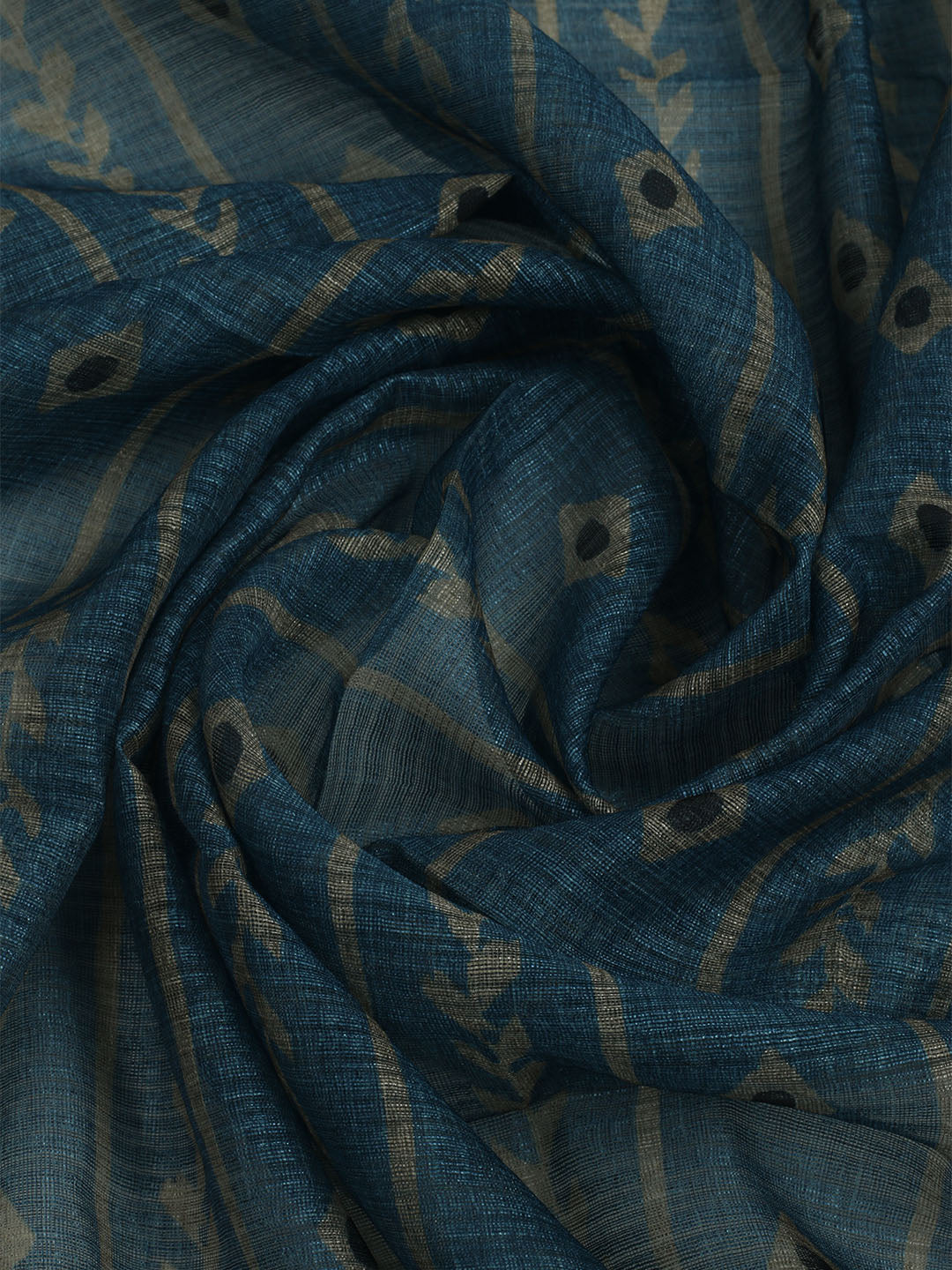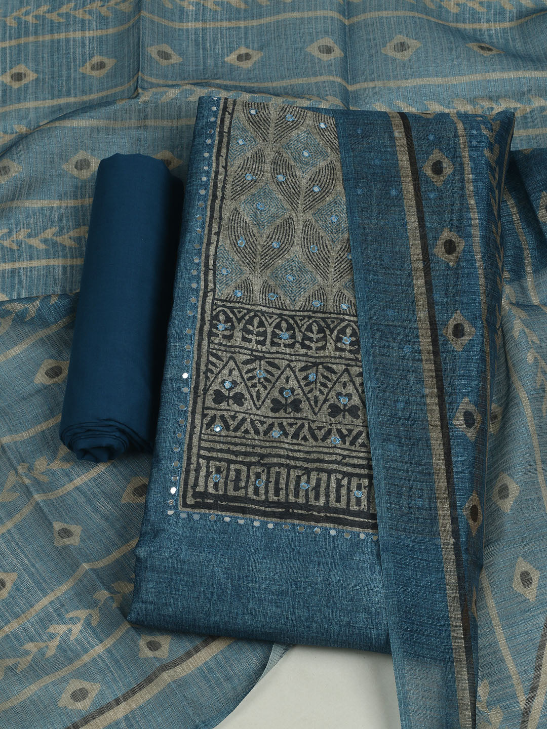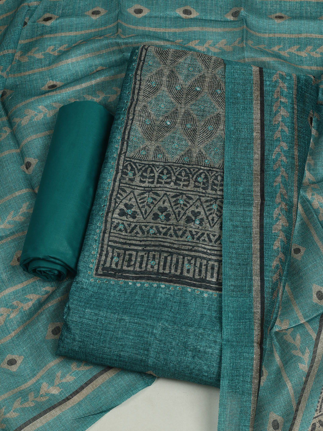 Printed Chanderi Unstitched Suit With Pant & Dupatta