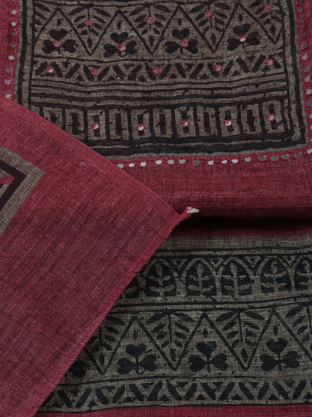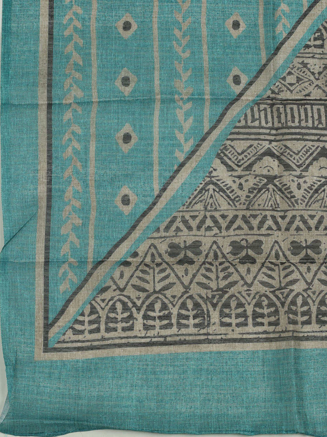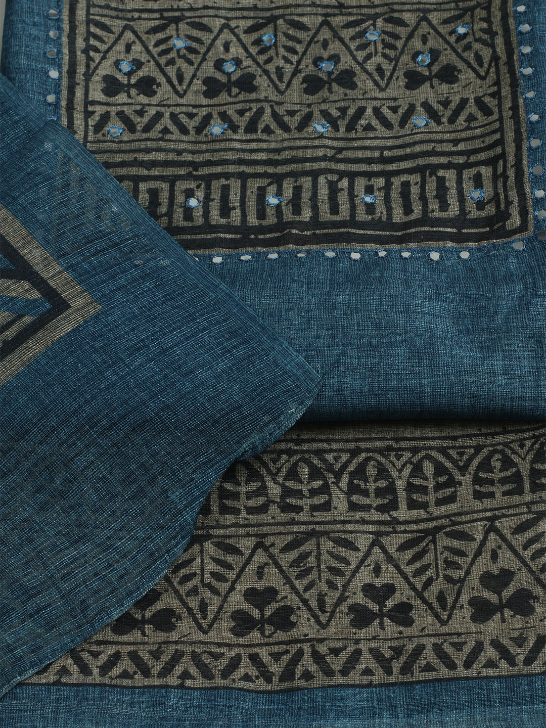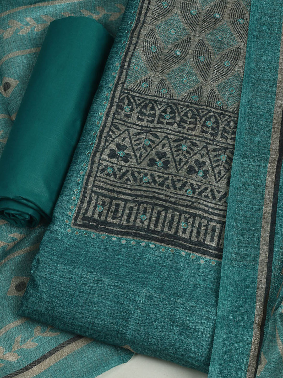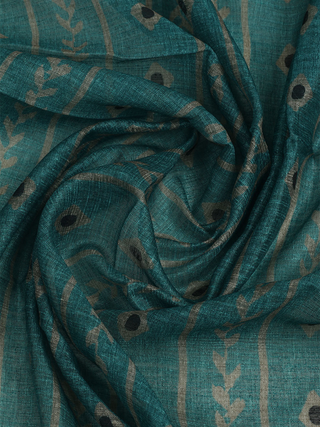 Printed Chanderi Unstitched Suit With Pant & Dupatta