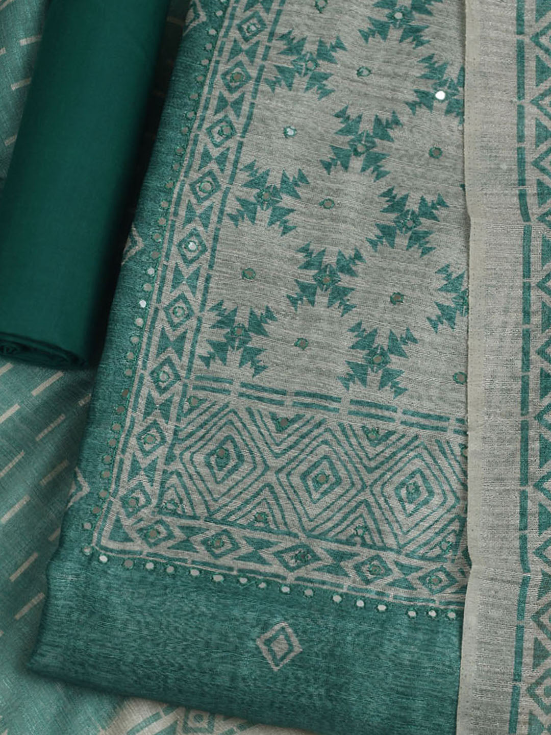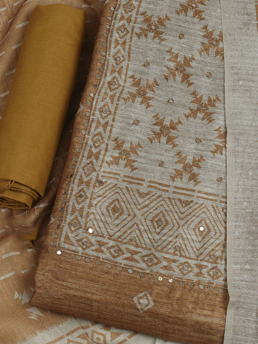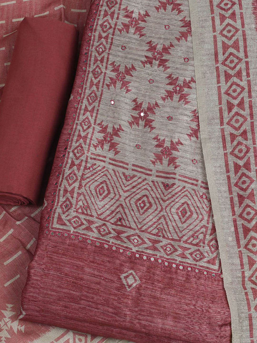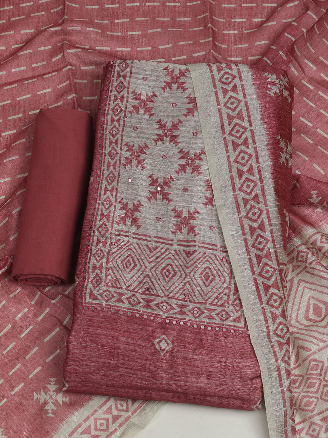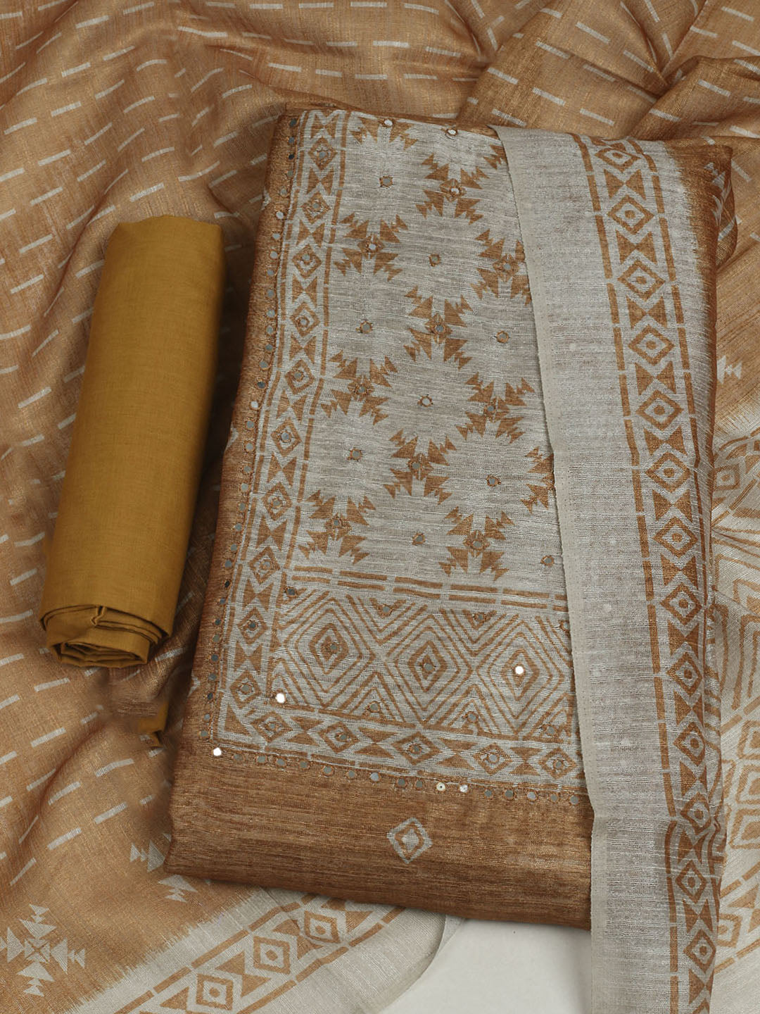 Printed Chanderi Unstitched Suit With Pant & Dupatta