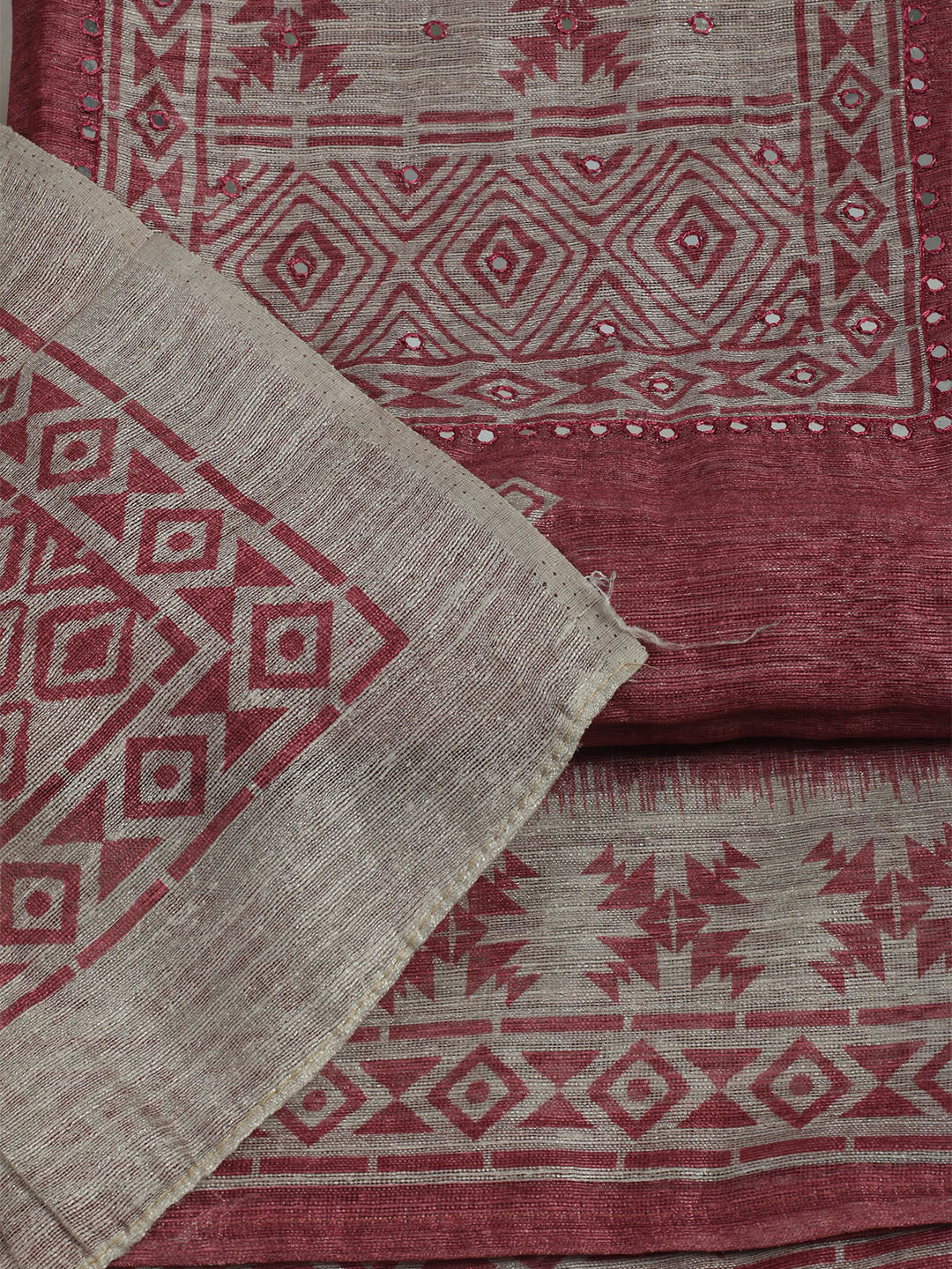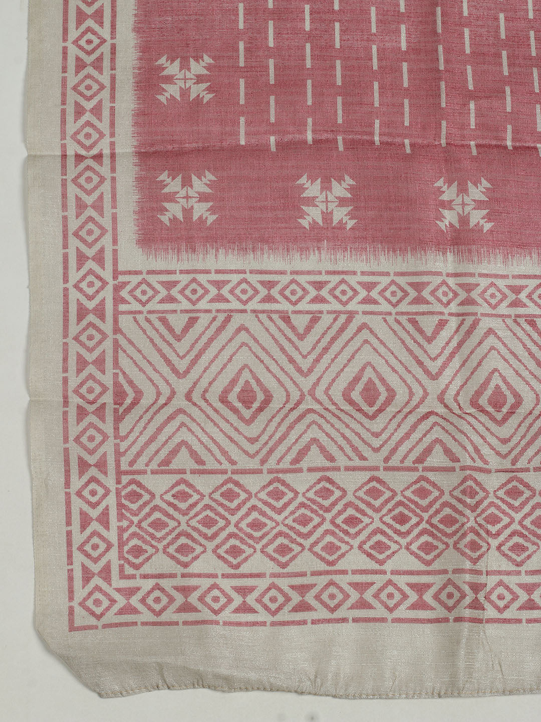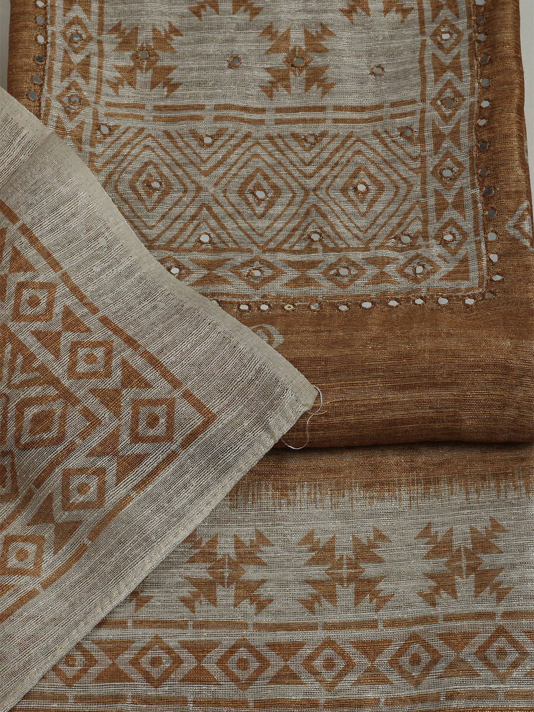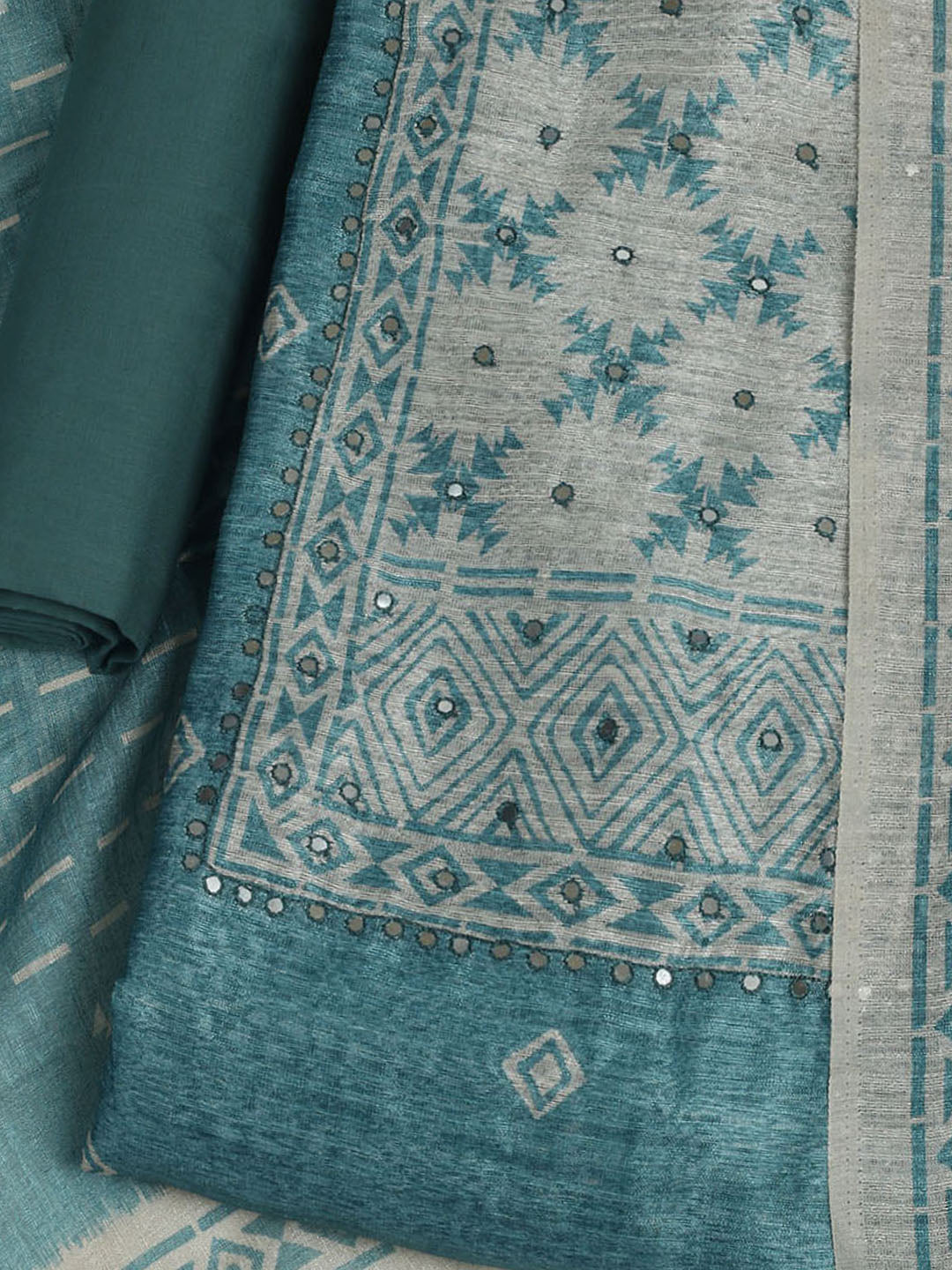 Printed Chanderi Unstitched Suit With Pant & Dupatta