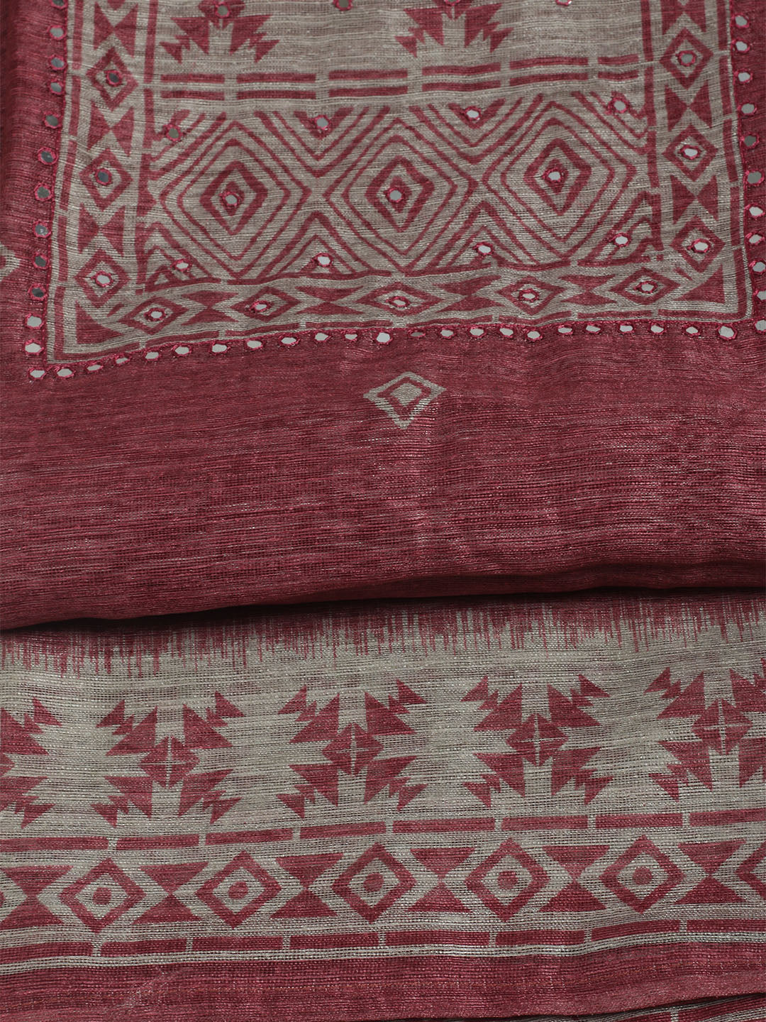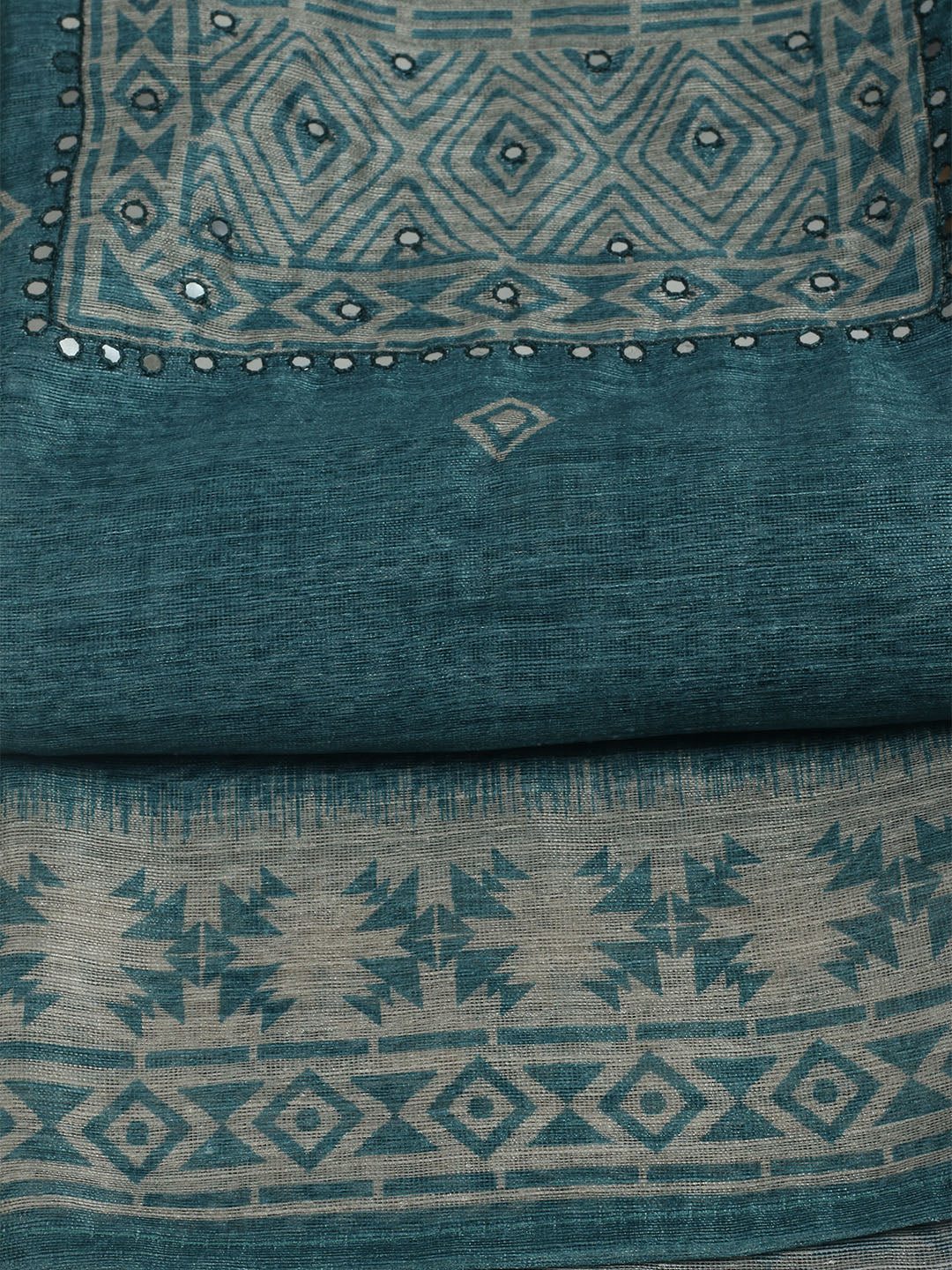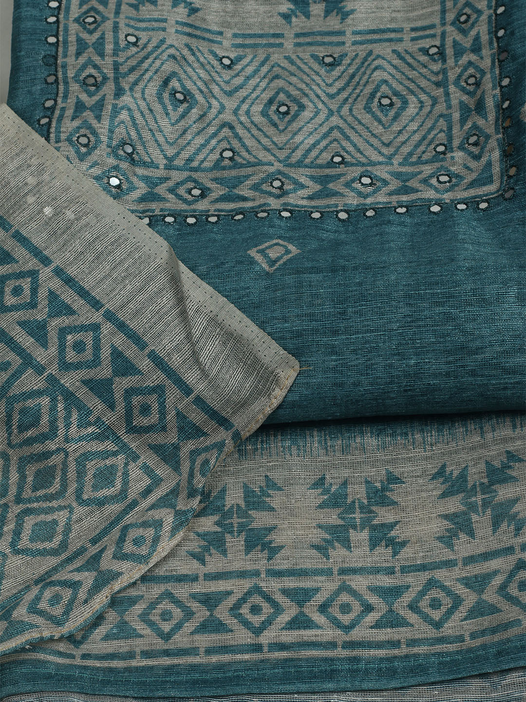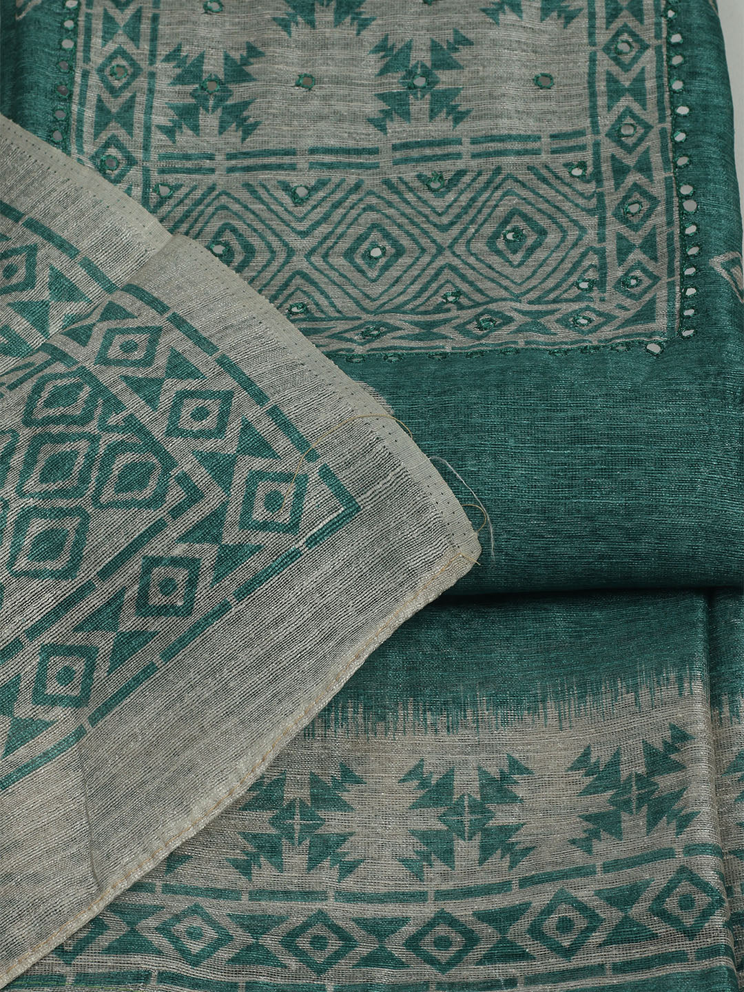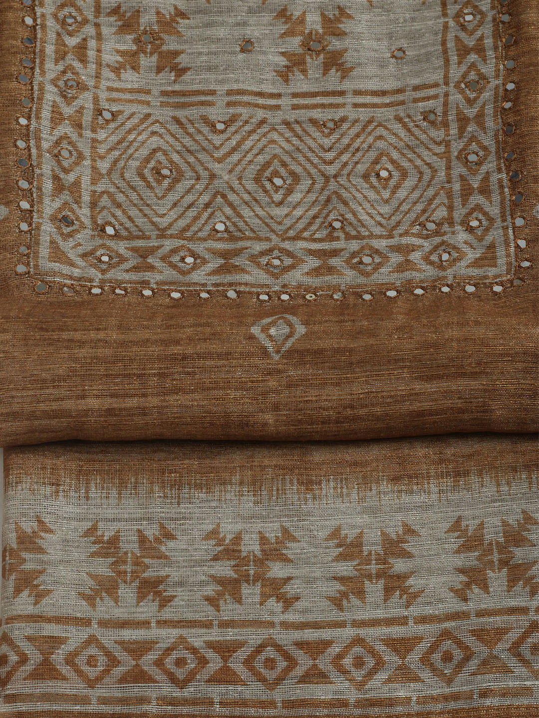 Printed Chanderi Unstitched Suit With Pant & Dupatta
