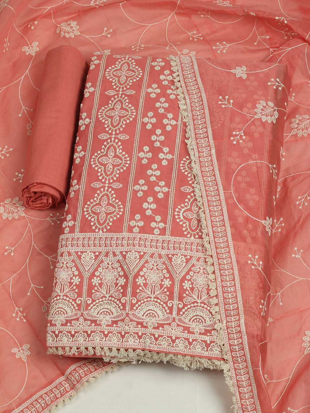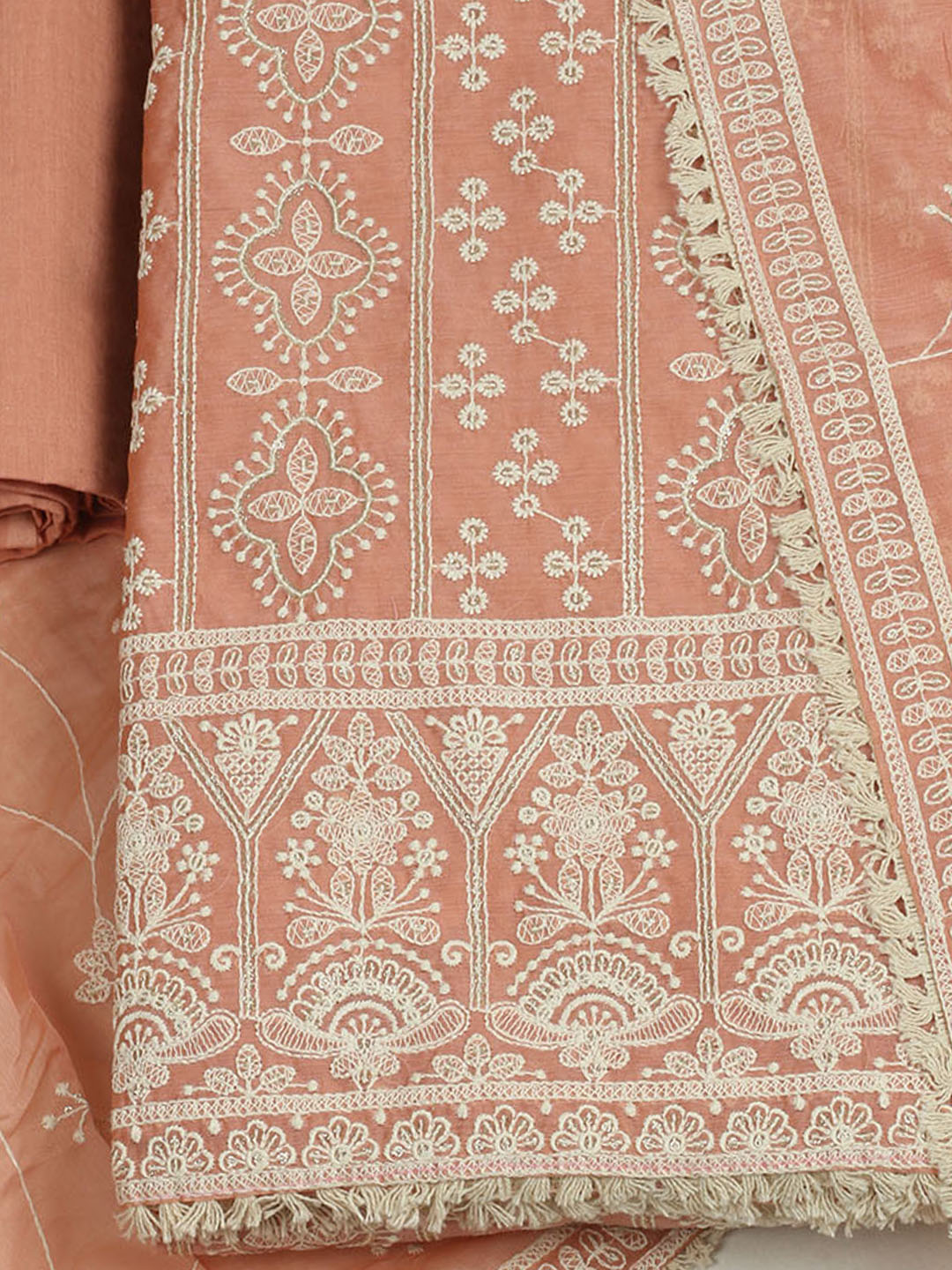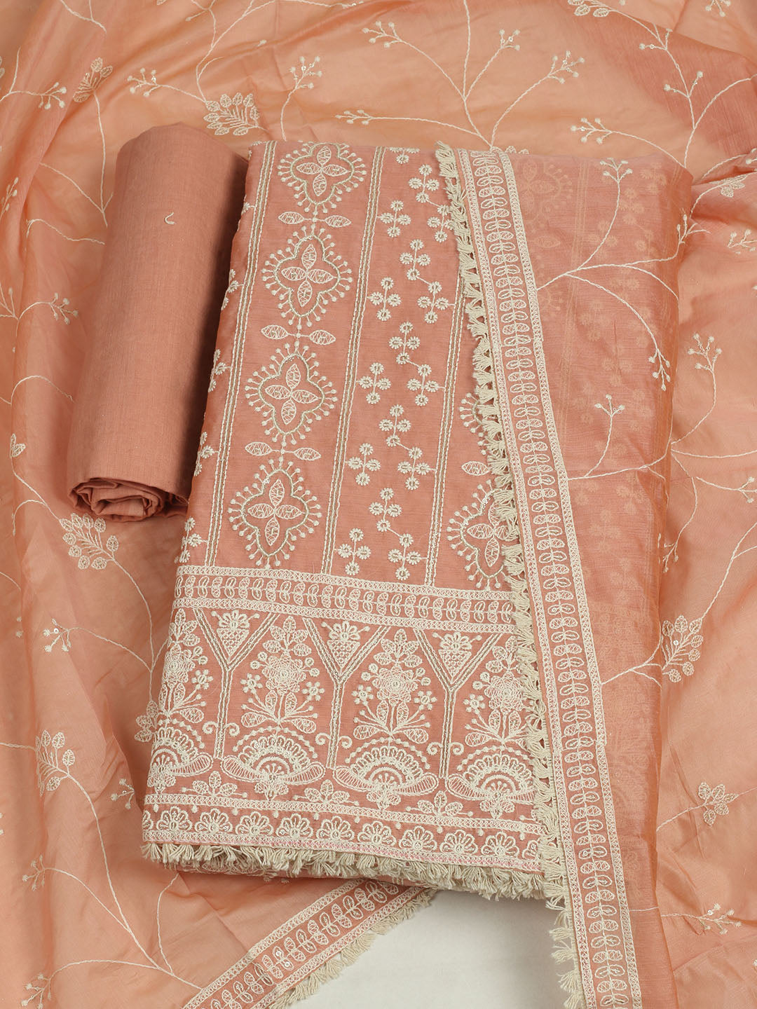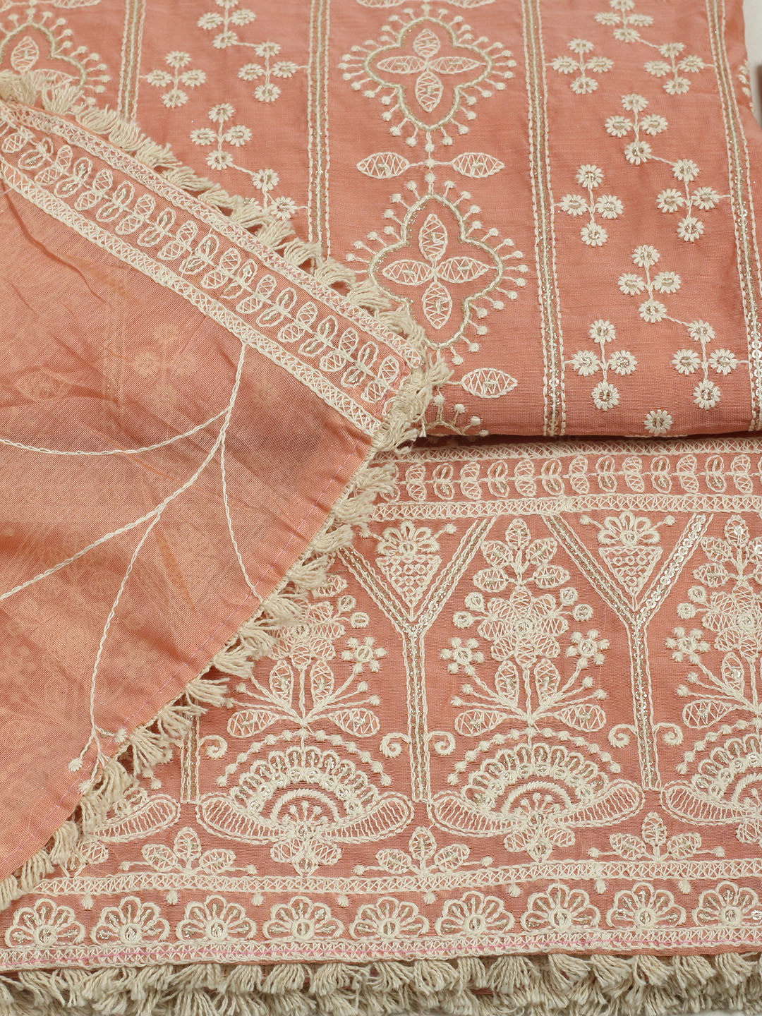 Embroidered Chanderi Unstitched Suit With Pant & Dupatta