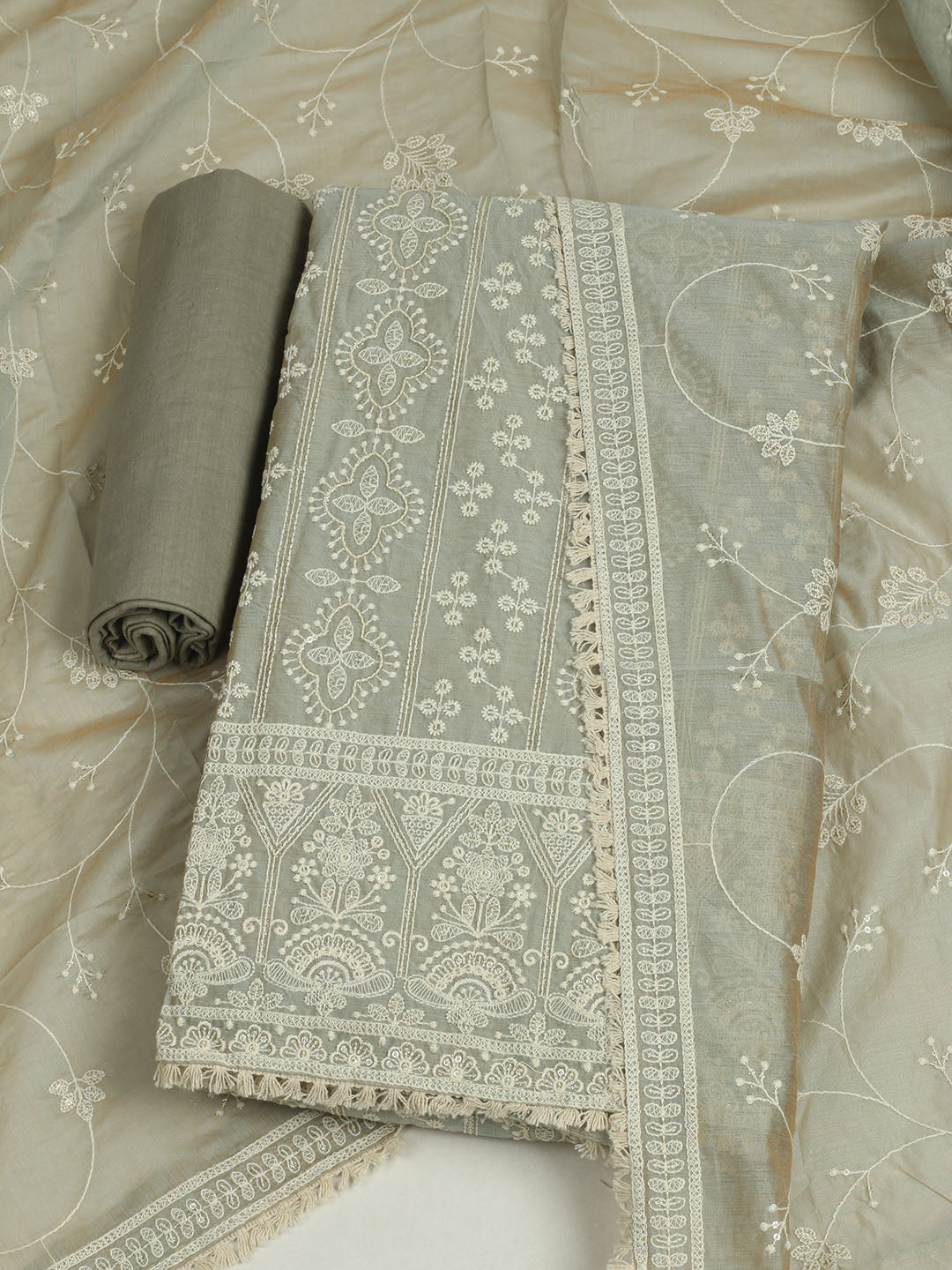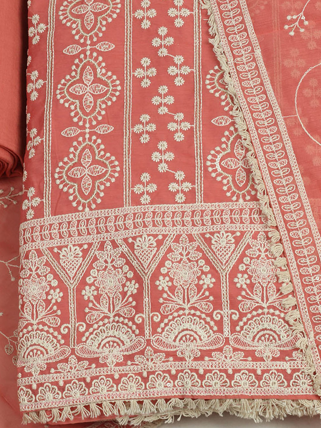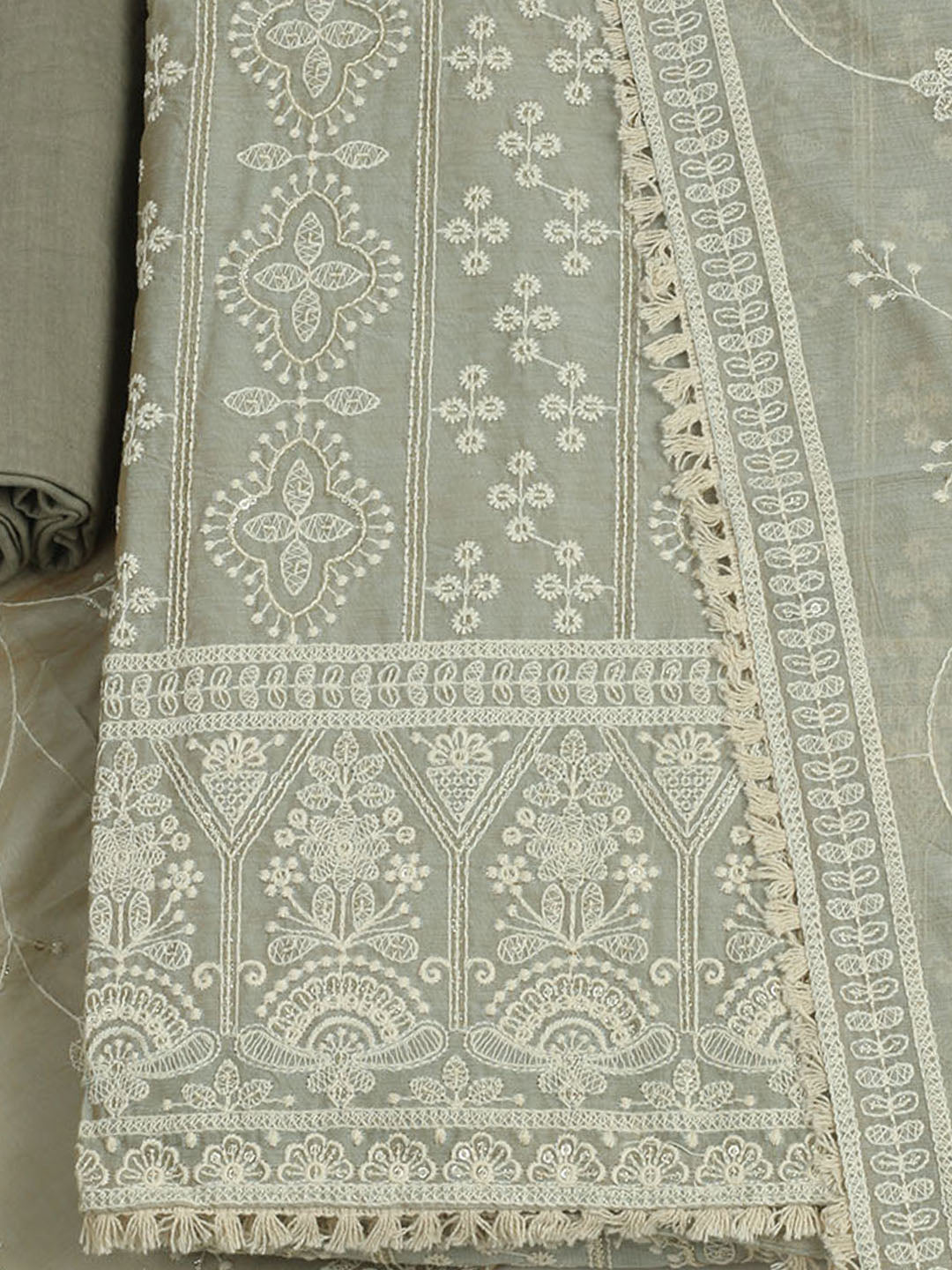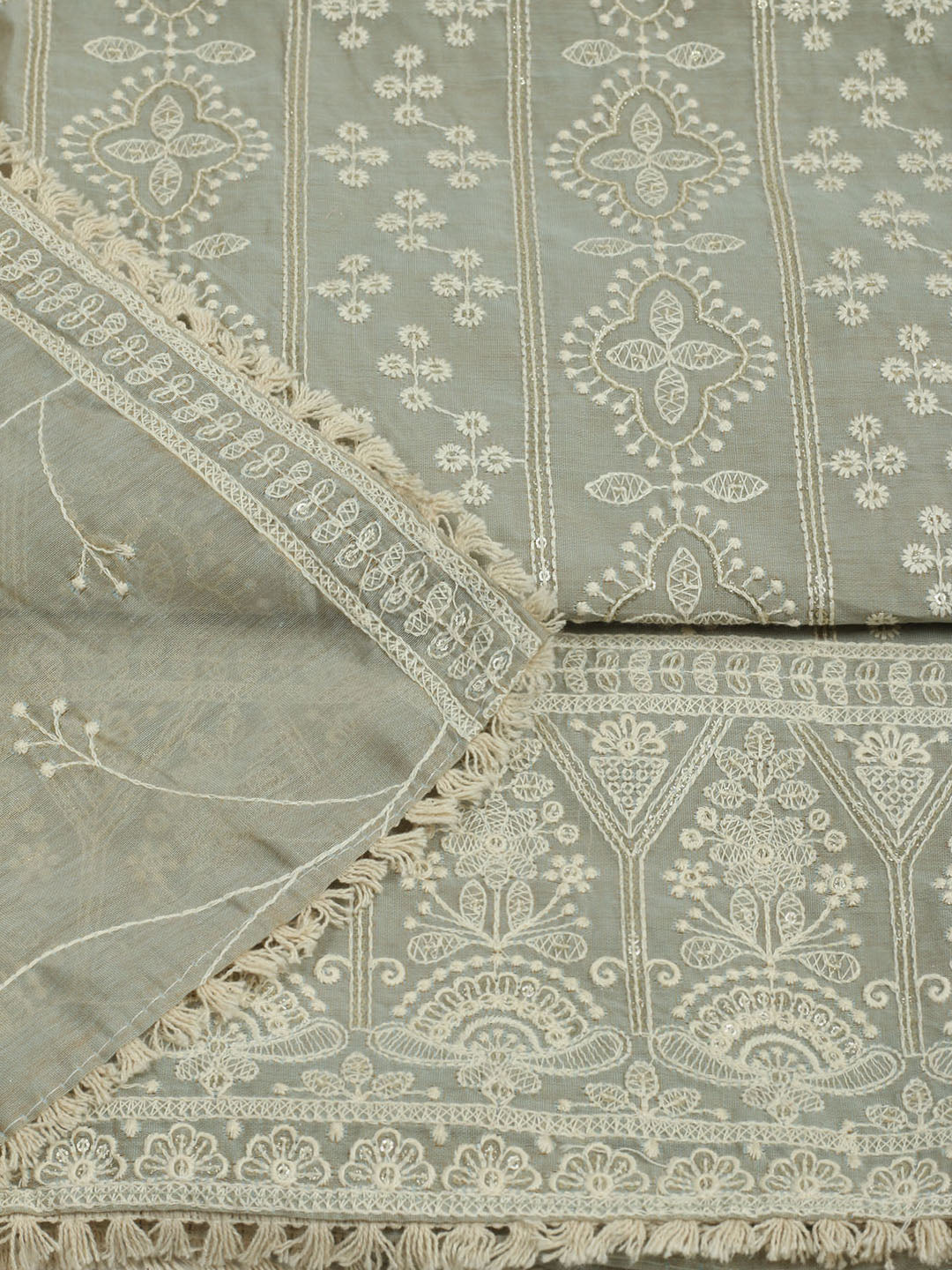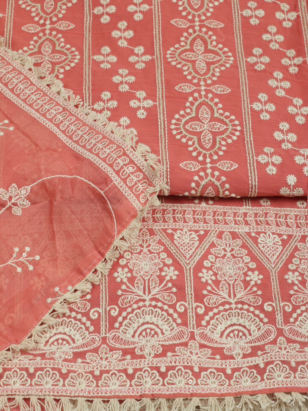 Embroidered Chanderi Unstitched Suit With Pant & Dupatta