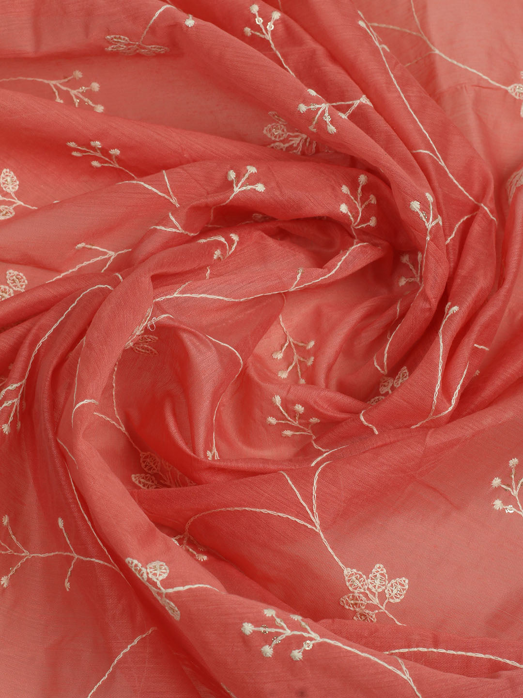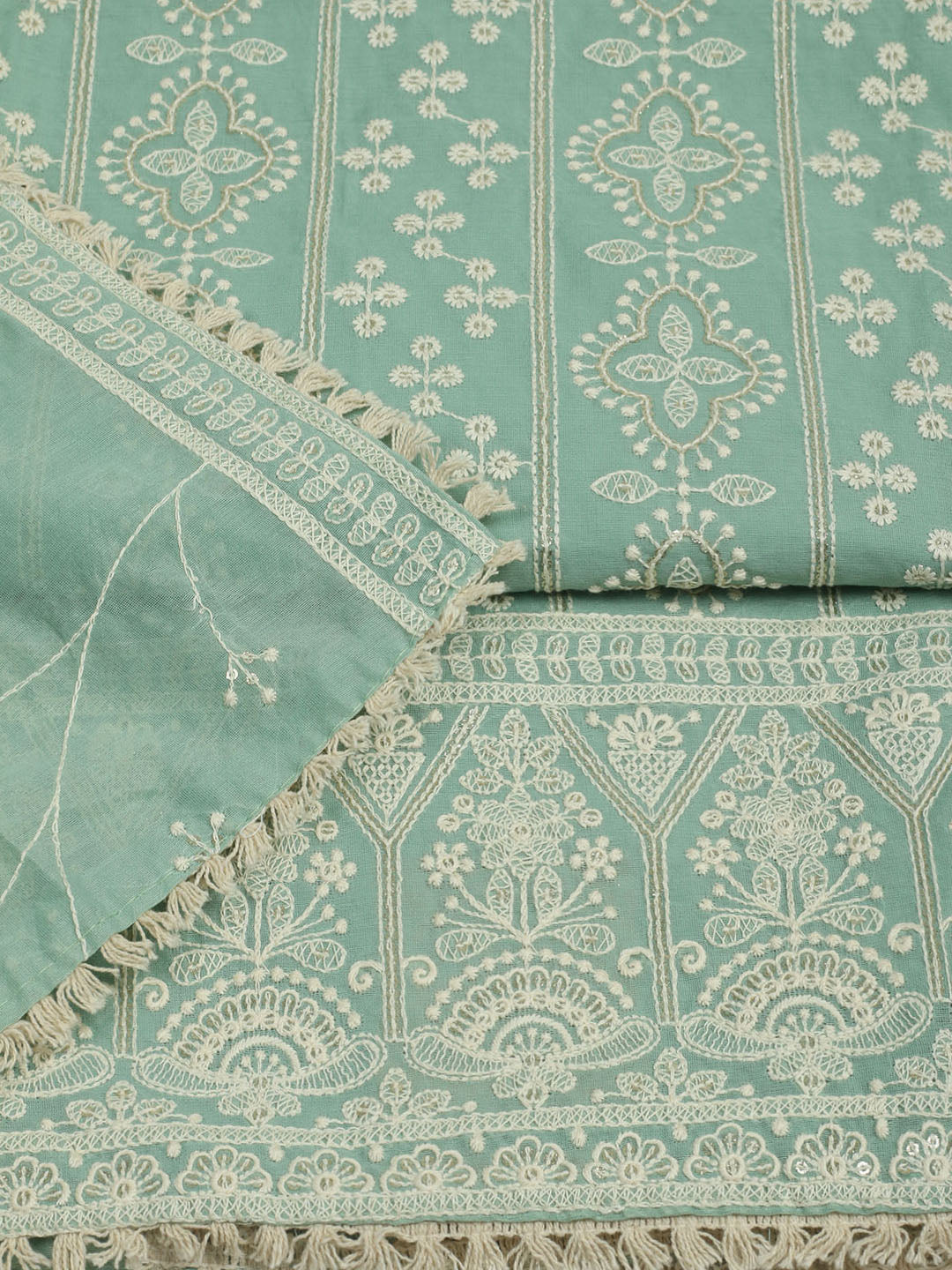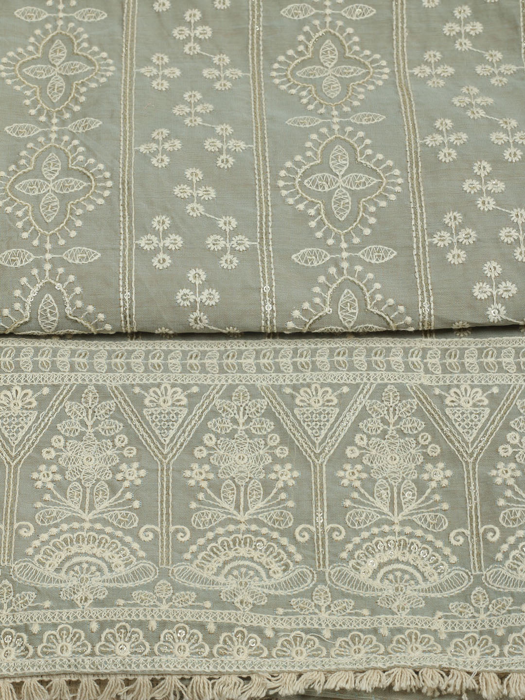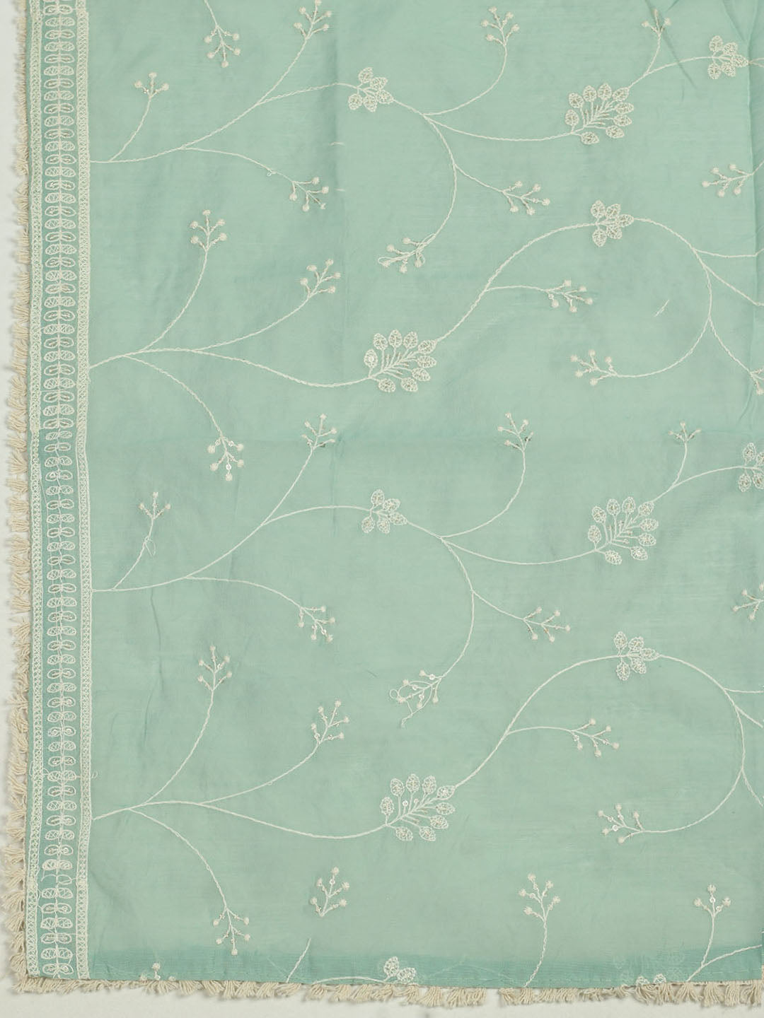 Embroidered Chanderi Unstitched Suit With Pant & Dupatta