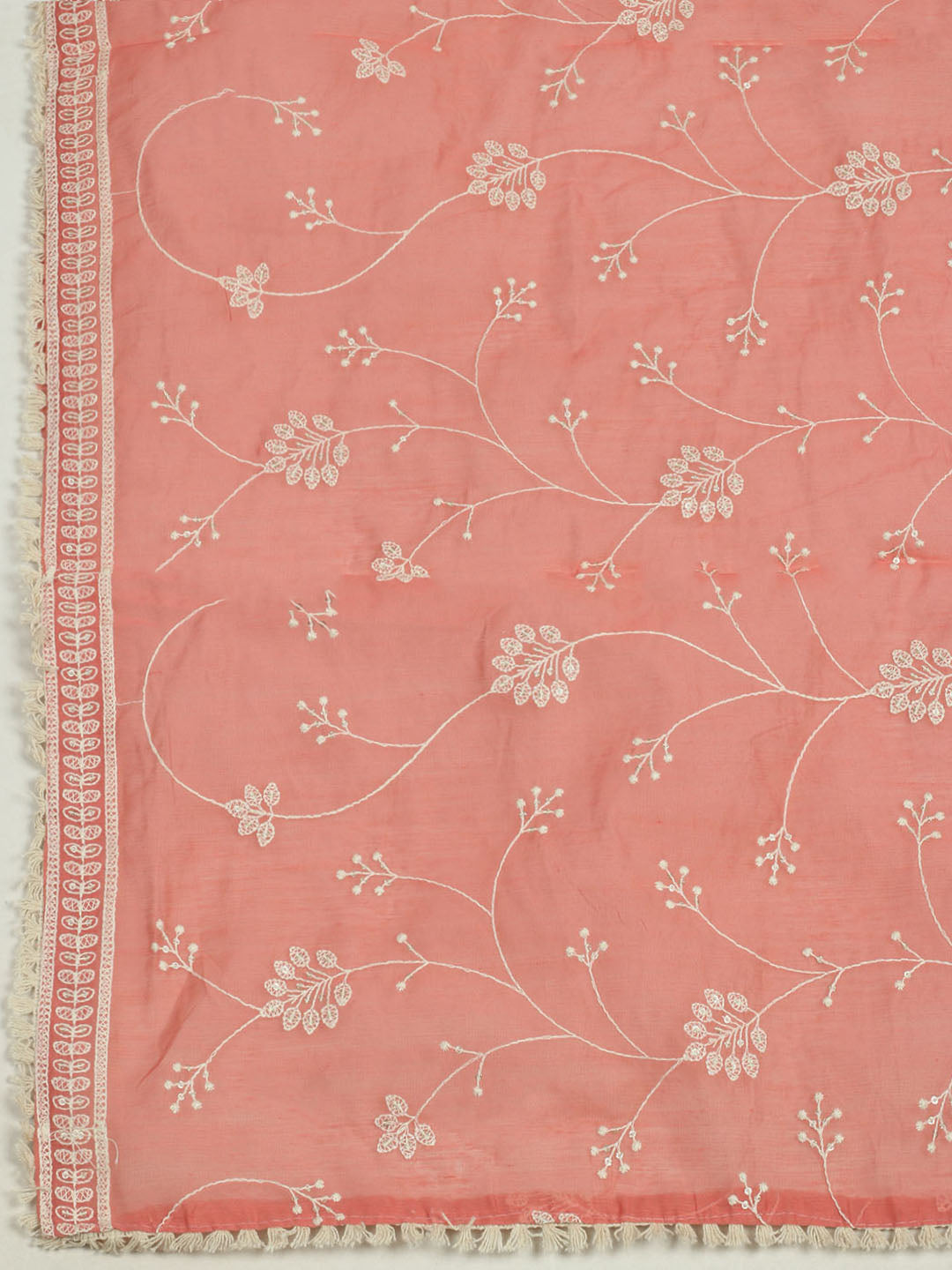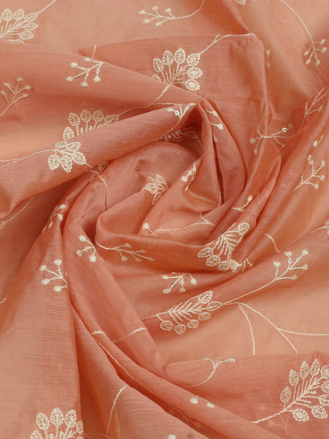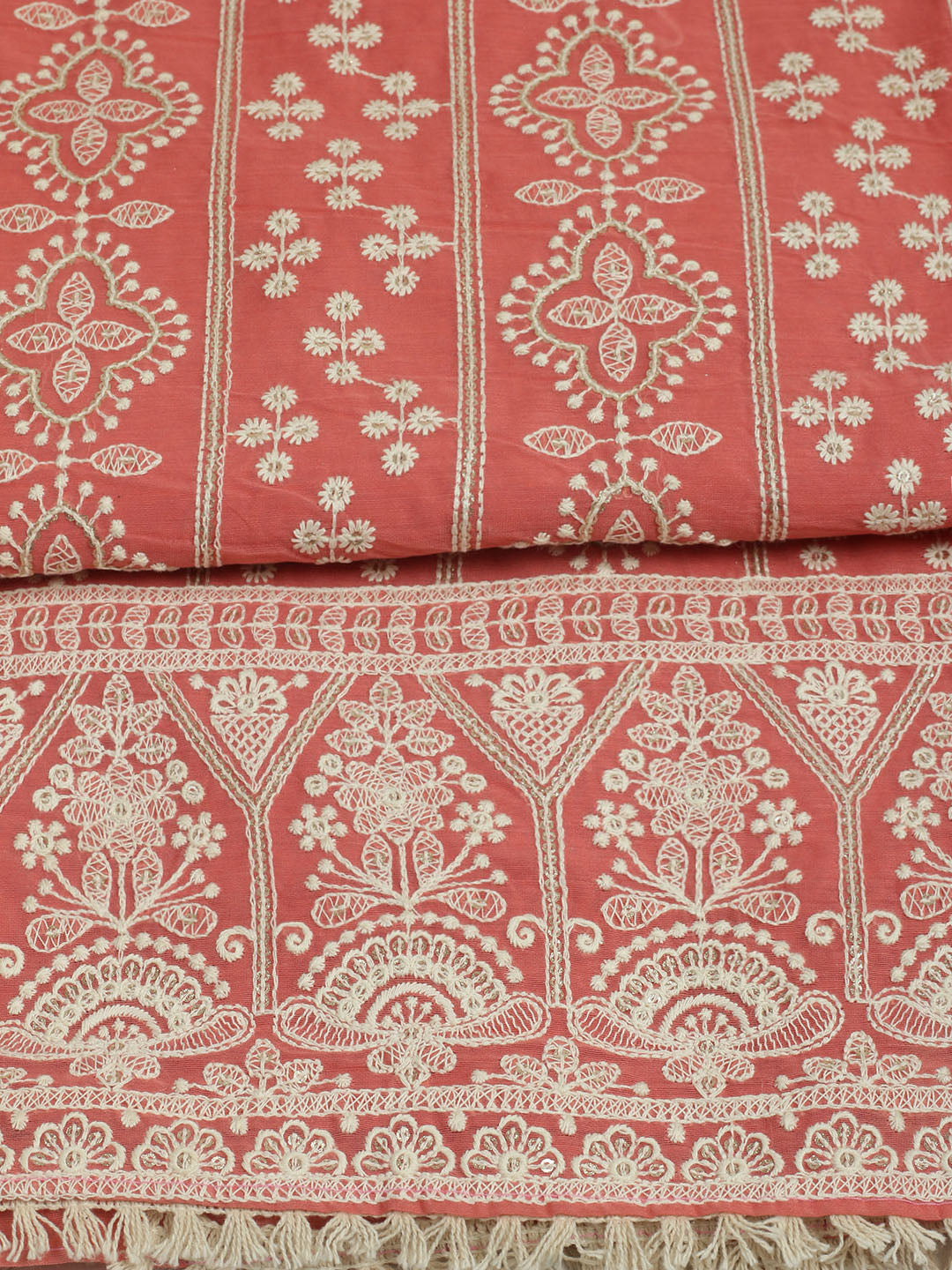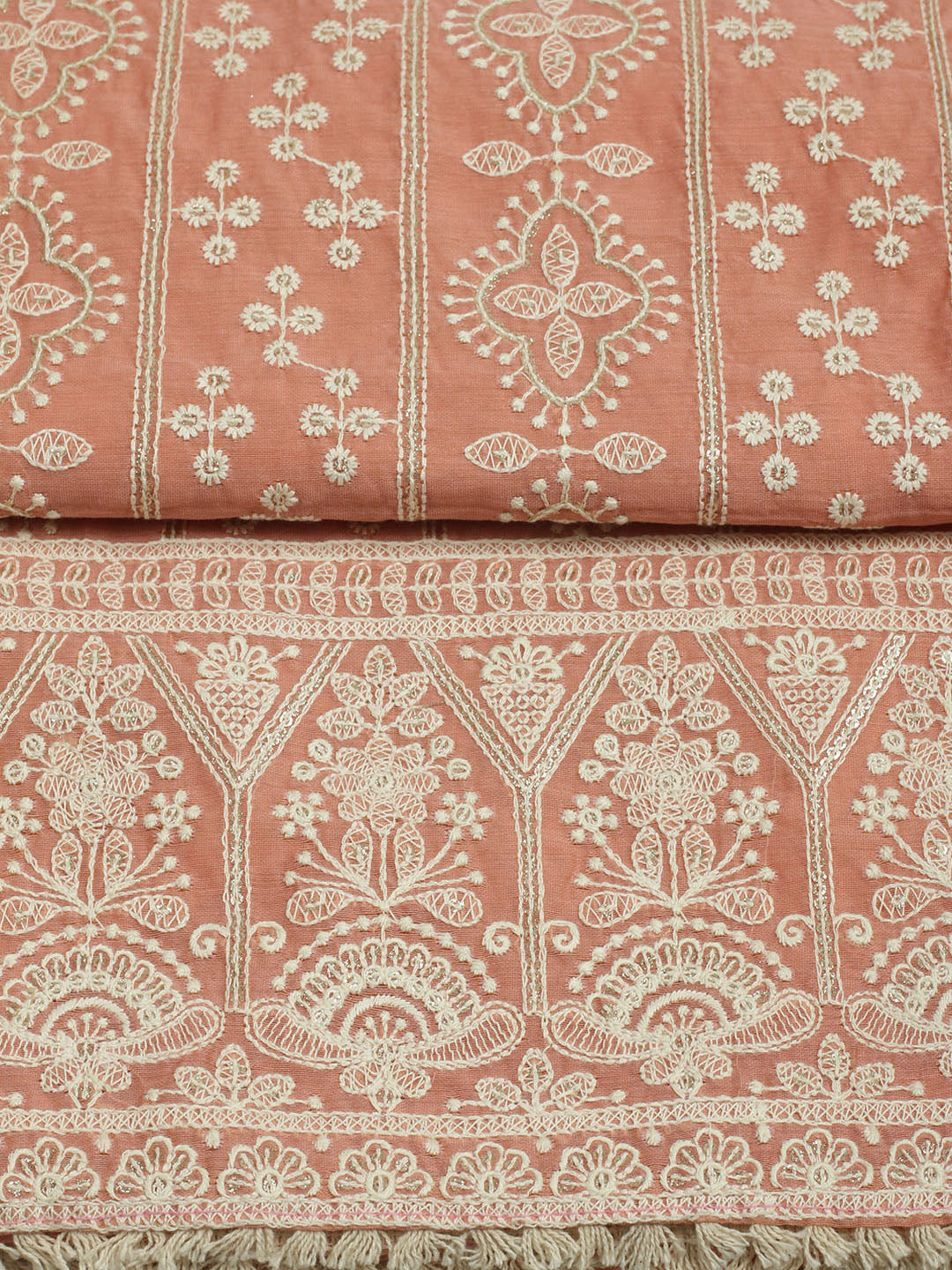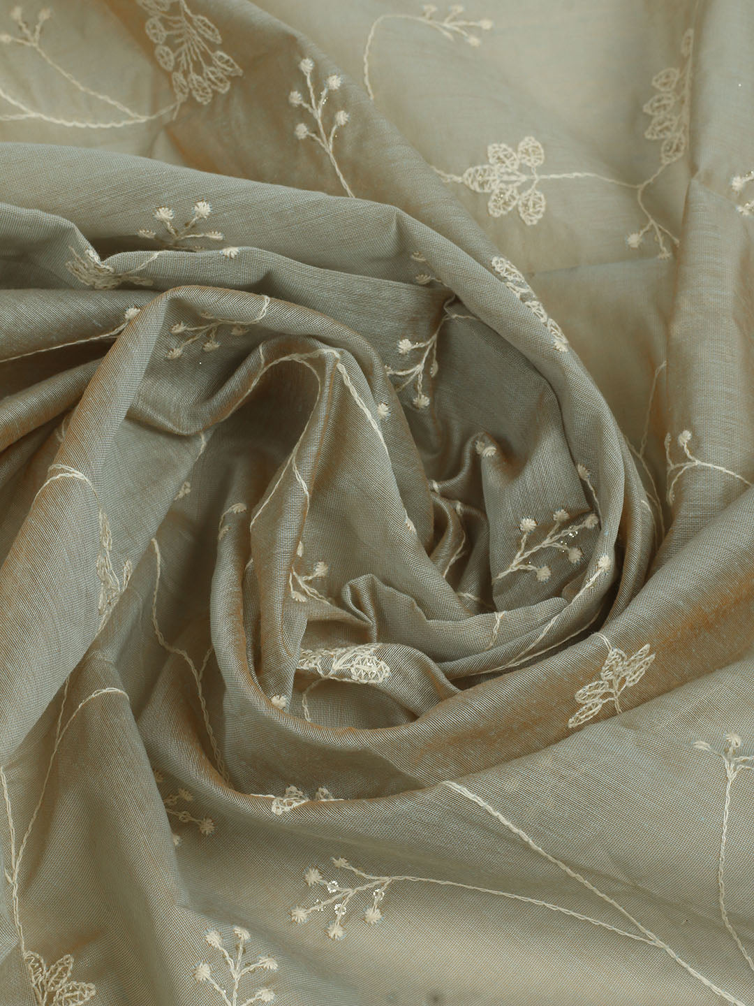 Embroidered Chanderi Unstitched Suit With Pant & Dupatta