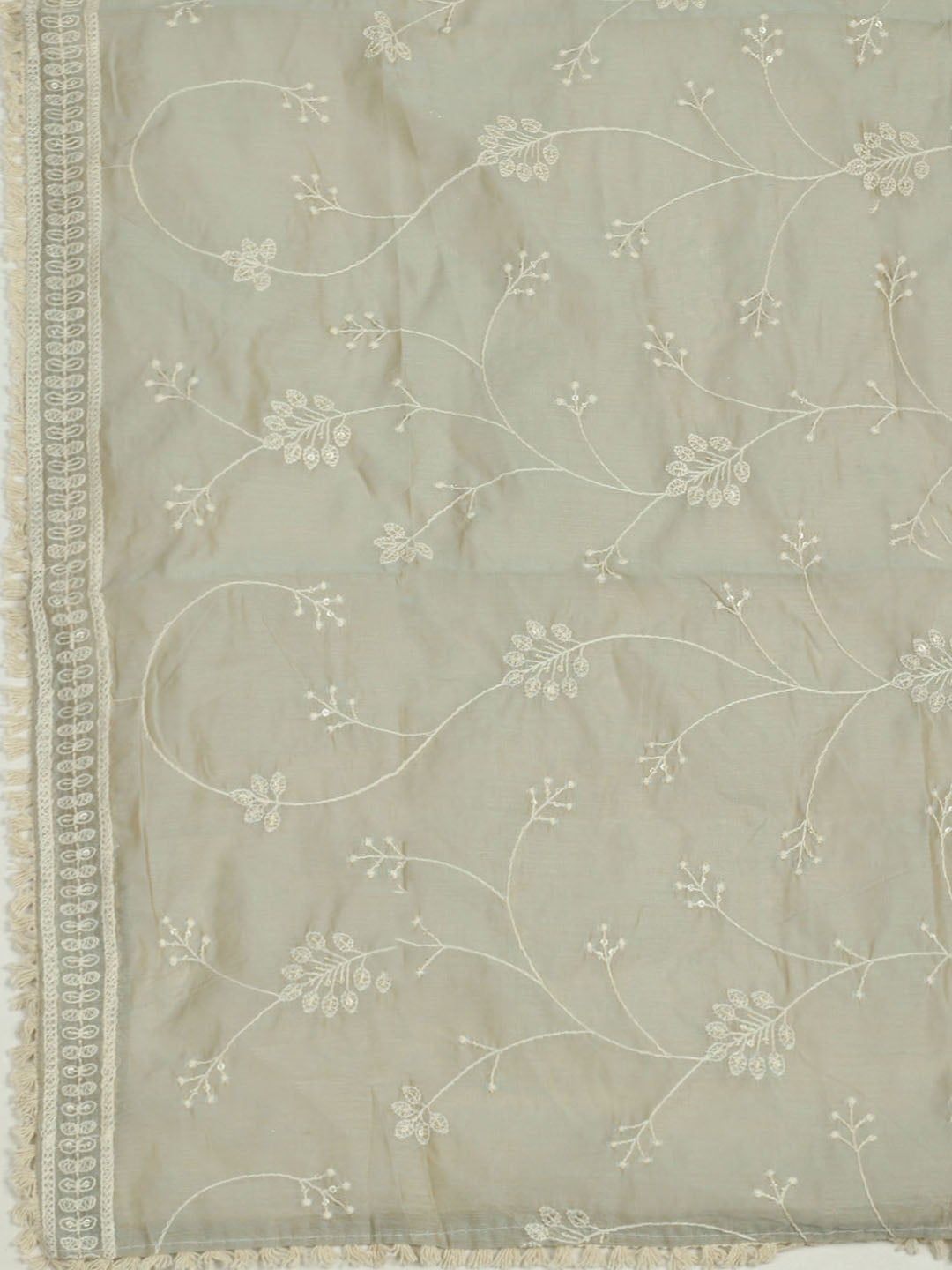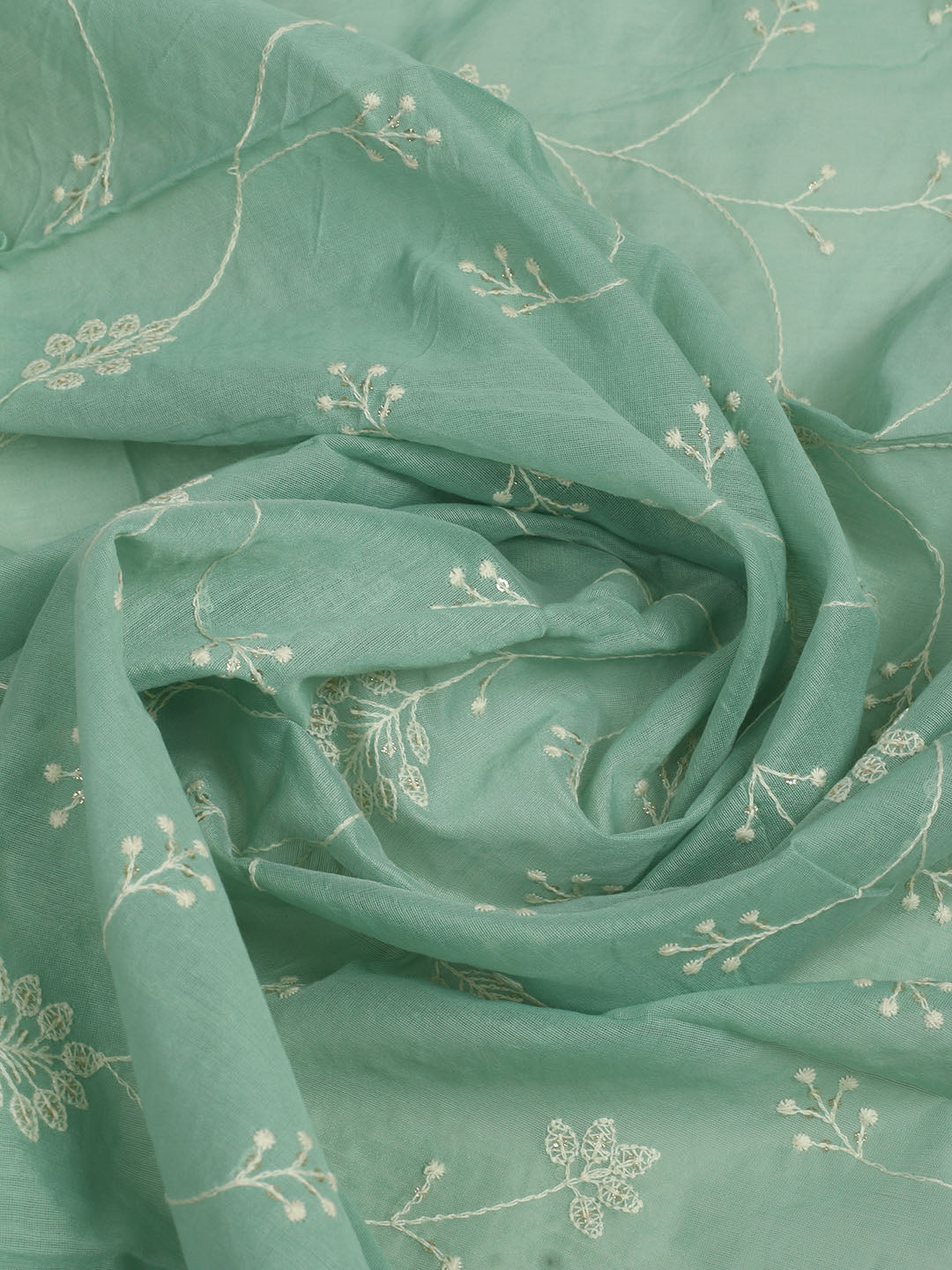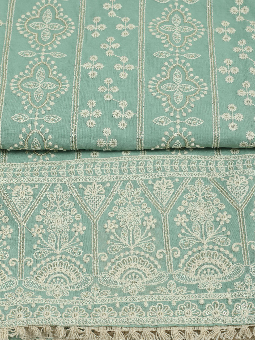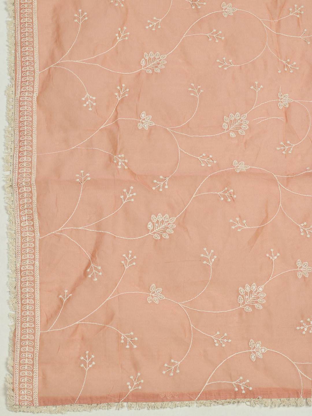 Embroidered Chanderi Unstitched Suit With Pant & Dupatta