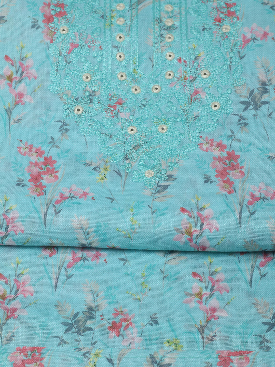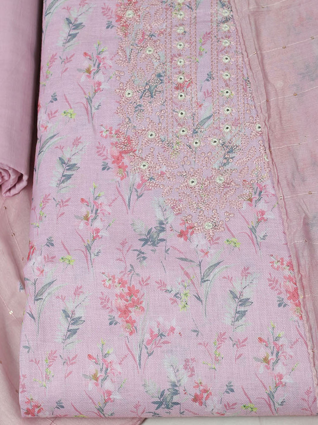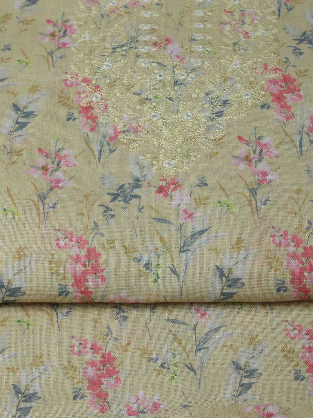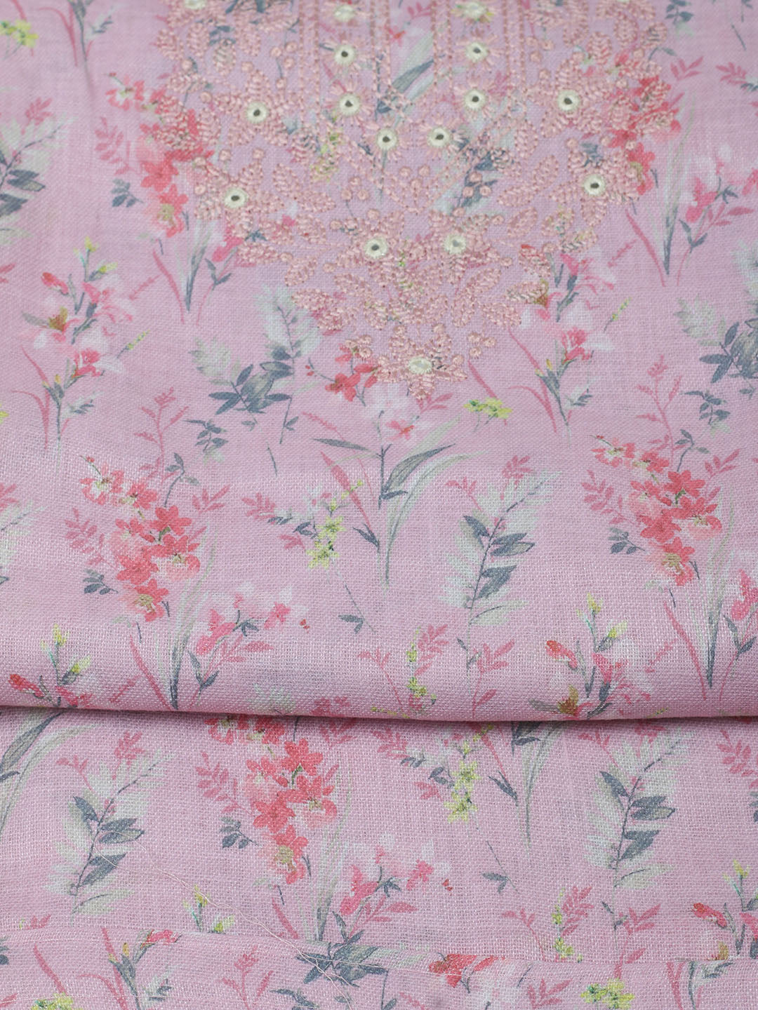 Embroidered Cotton Unstitched Suit With Pant & Dupatta