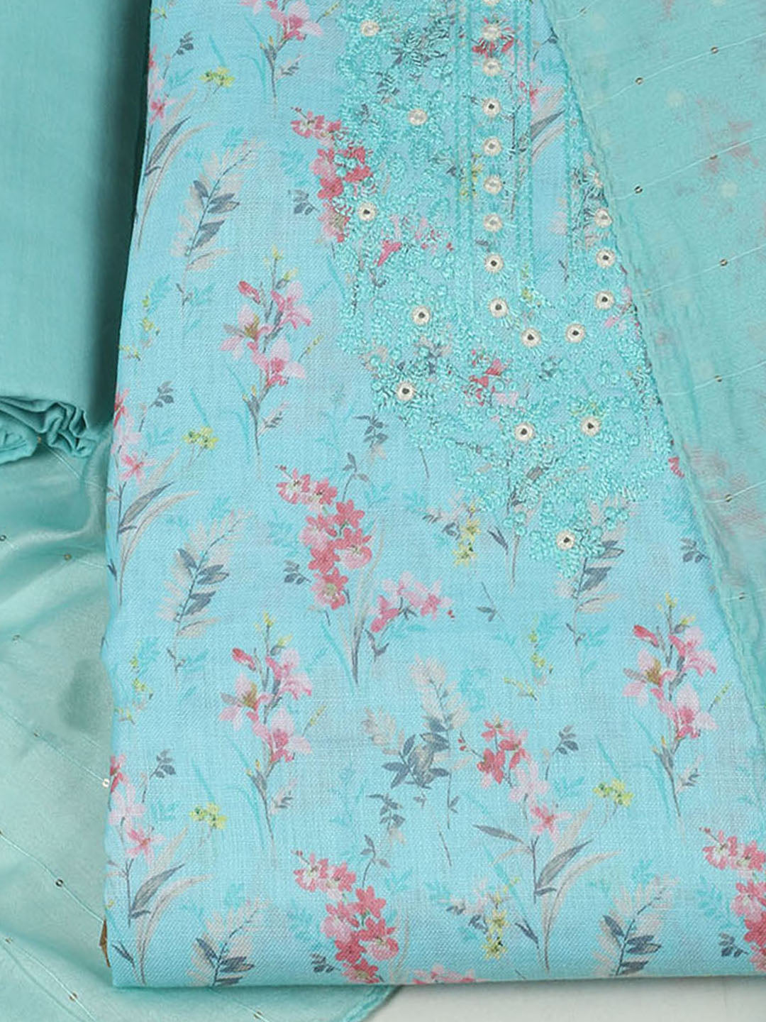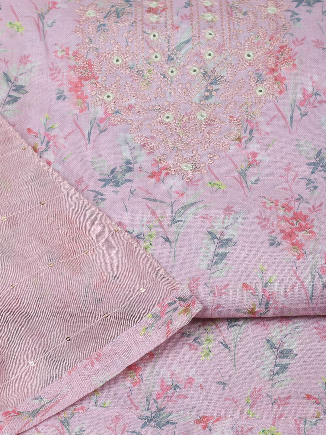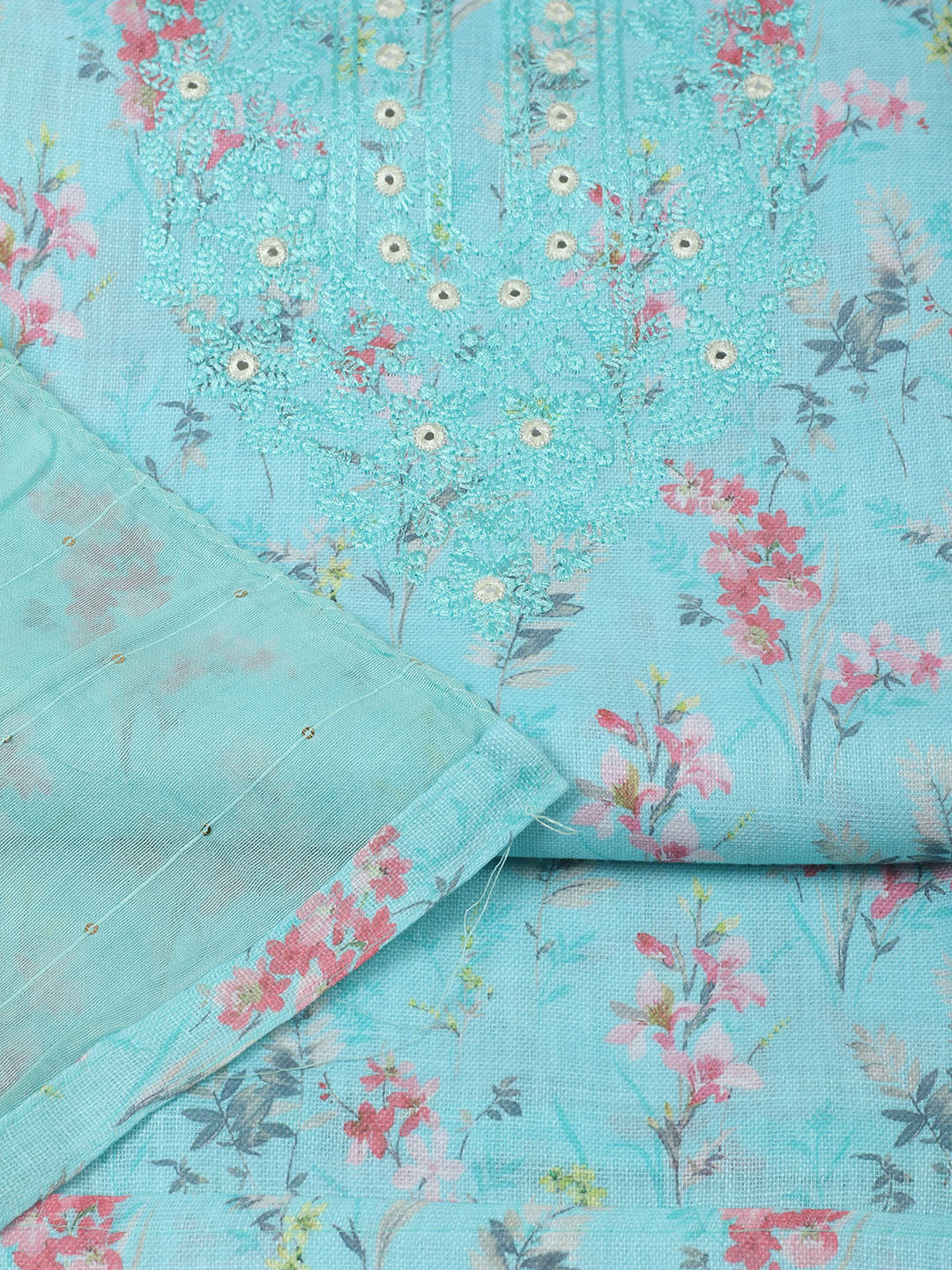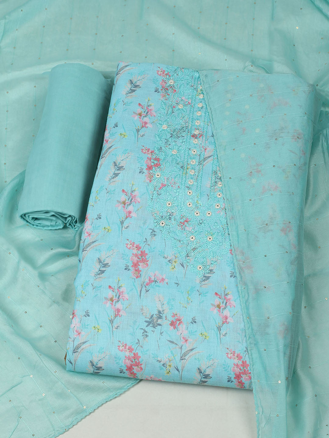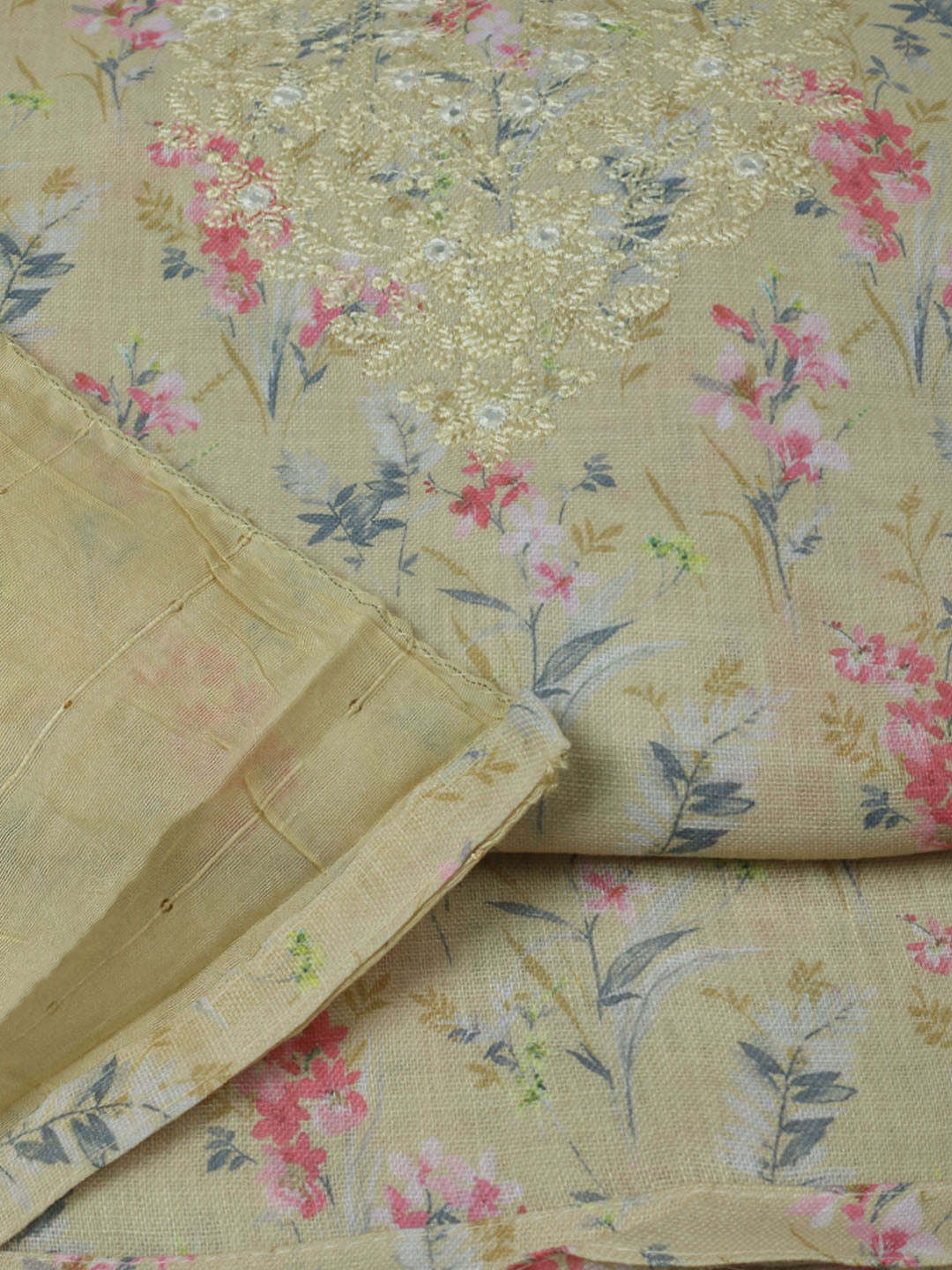 Embroidered Cotton Unstitched Suit With Pant & Dupatta