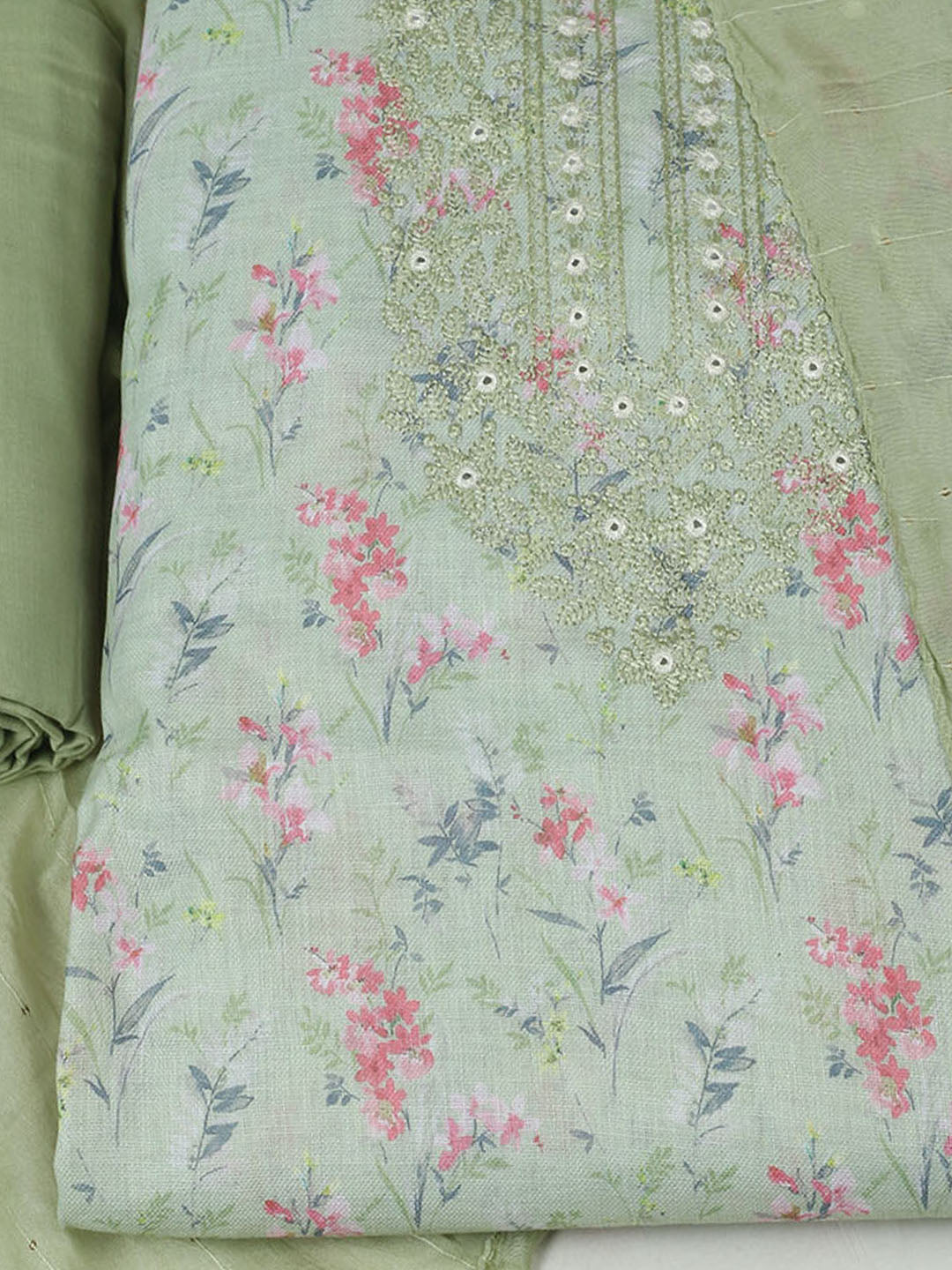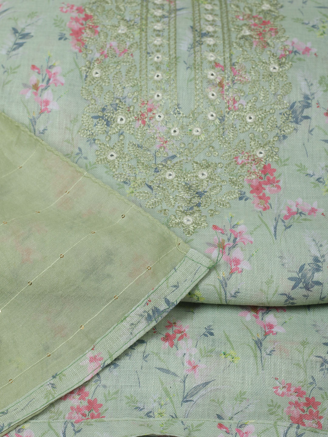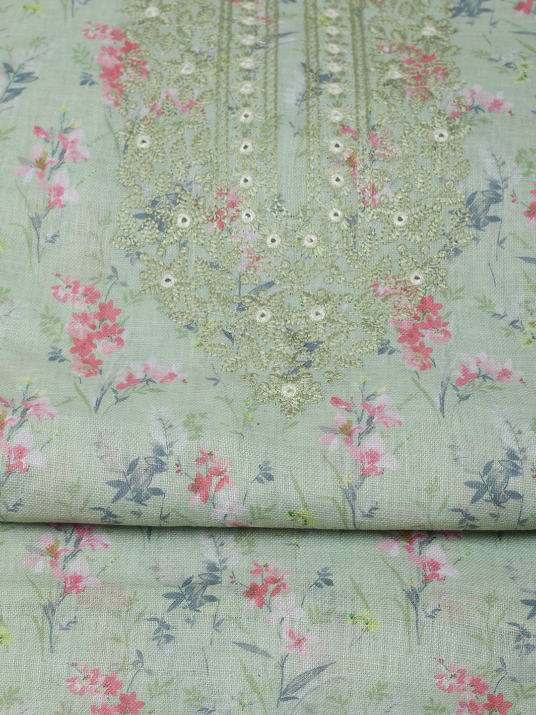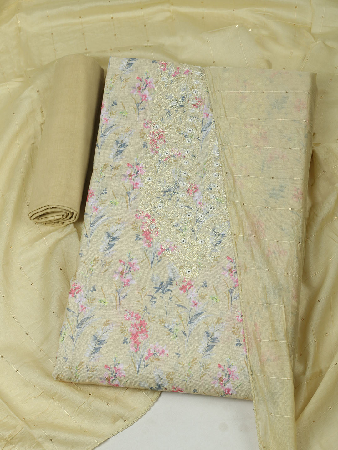 Embroidered Cotton Unstitched Suit With Pant & Dupatta