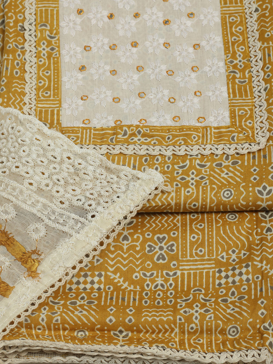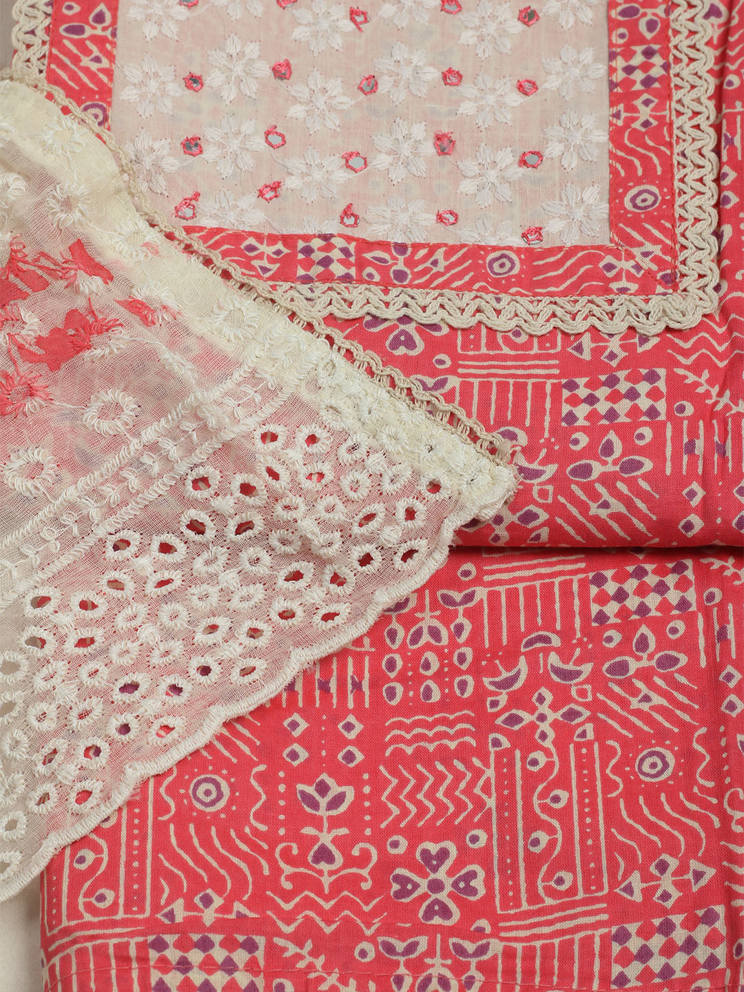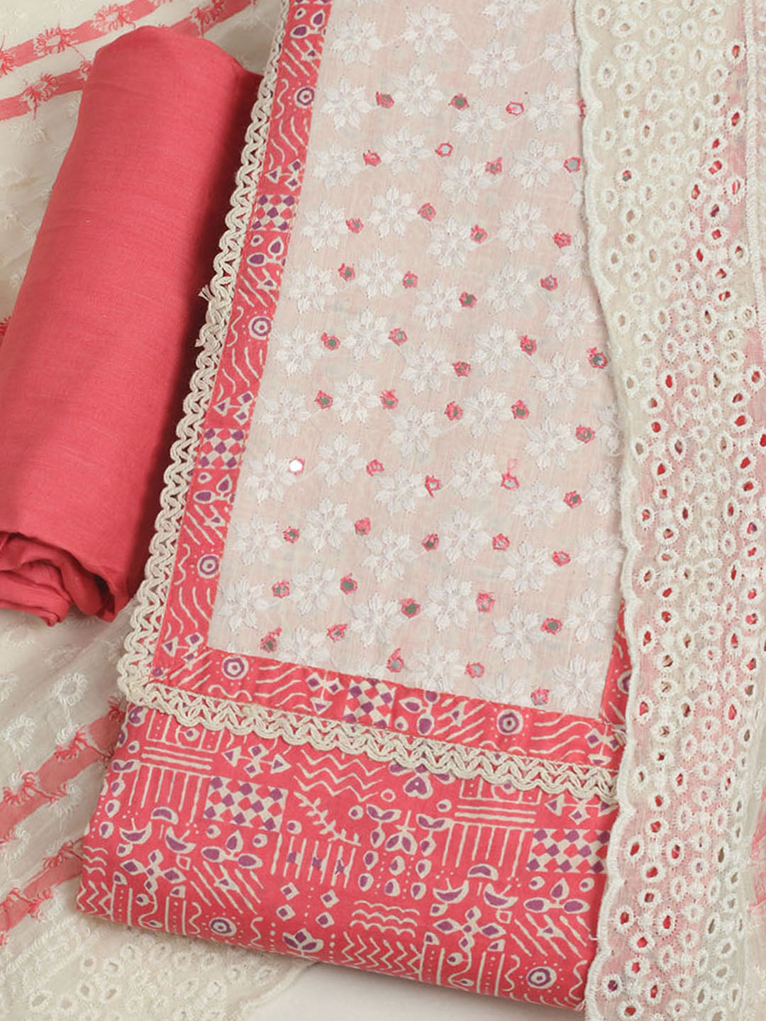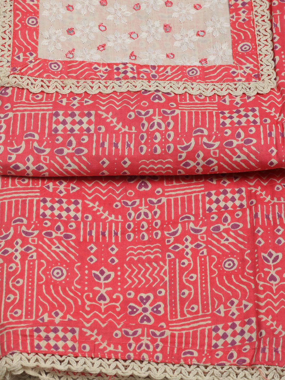 Printed Cotton Unstitched Suits Printed Suit With Pant & Dupatta