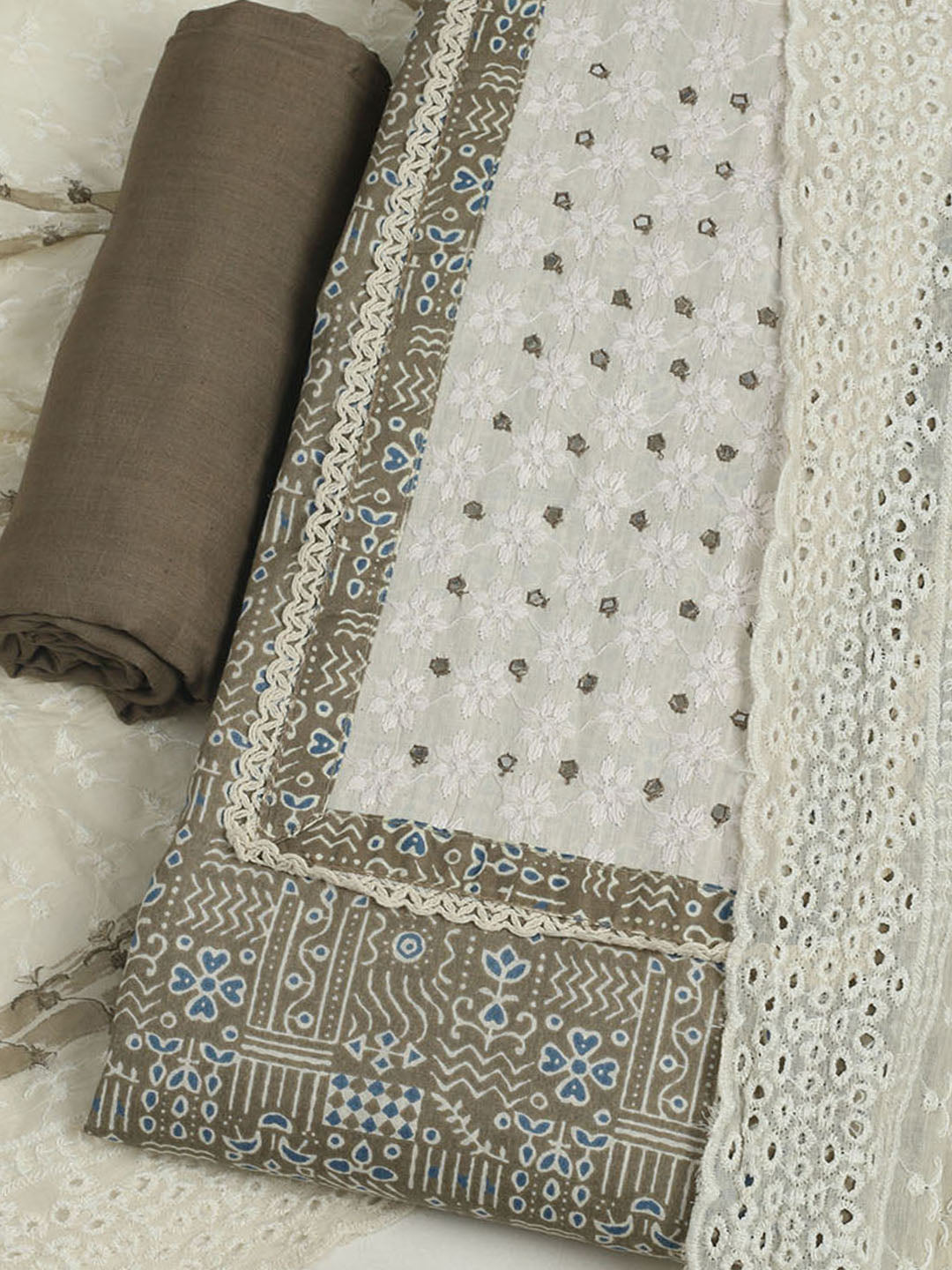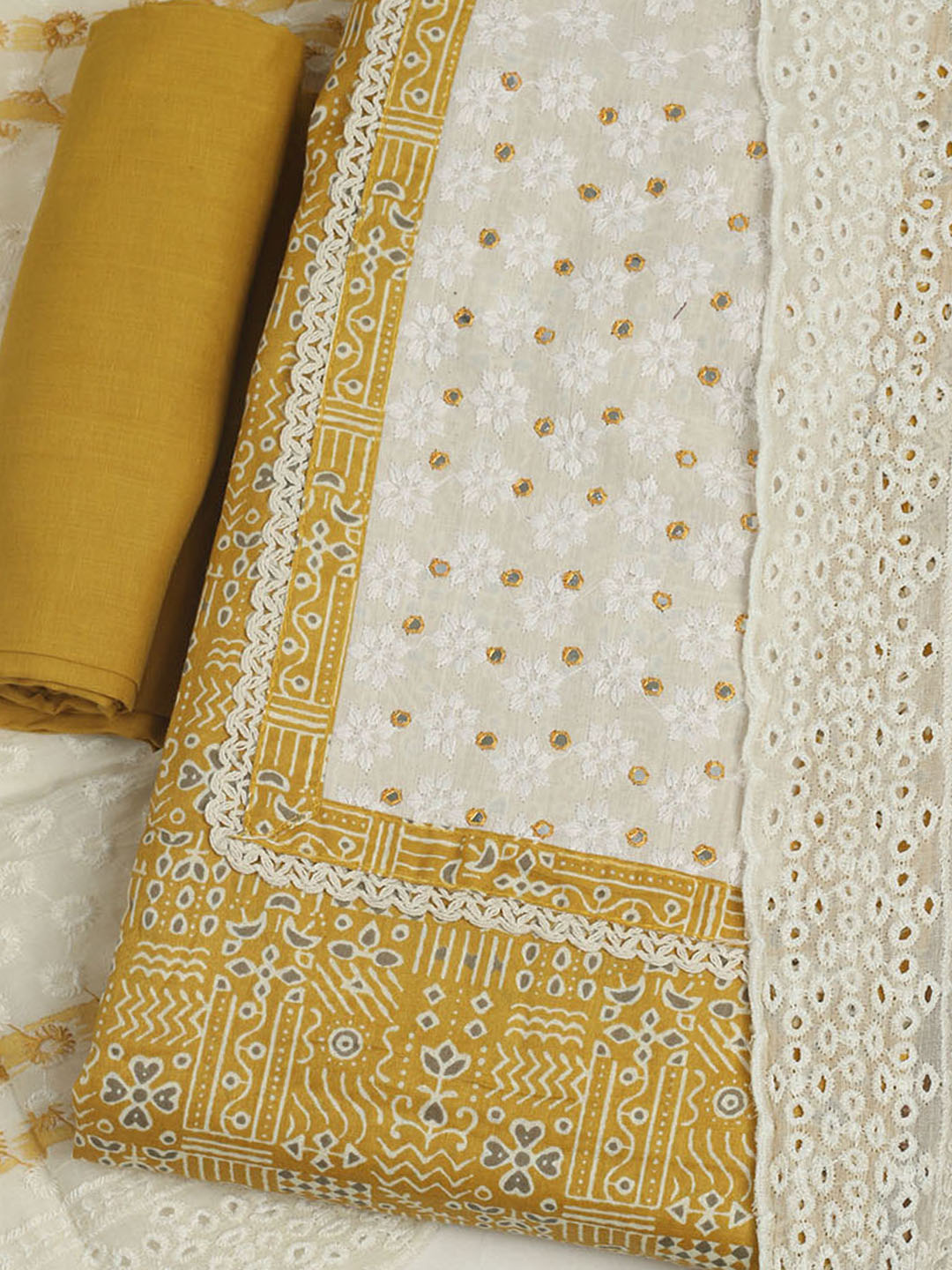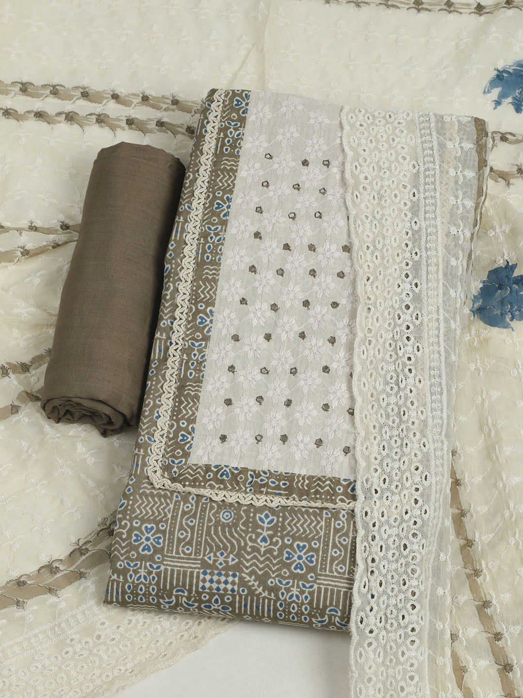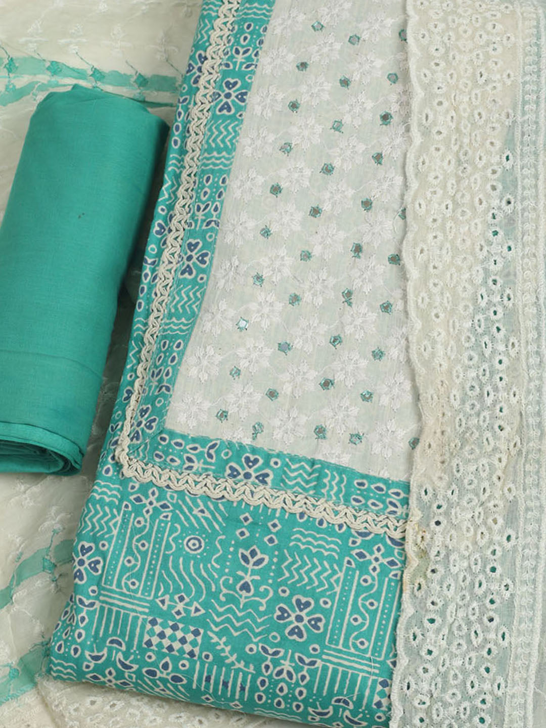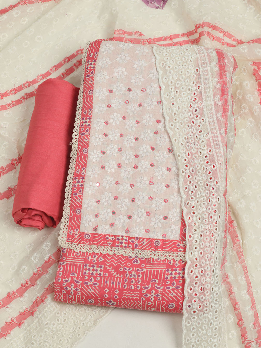 Printed Cotton Unstitched Suits Printed Suit With Pant & Dupatta
