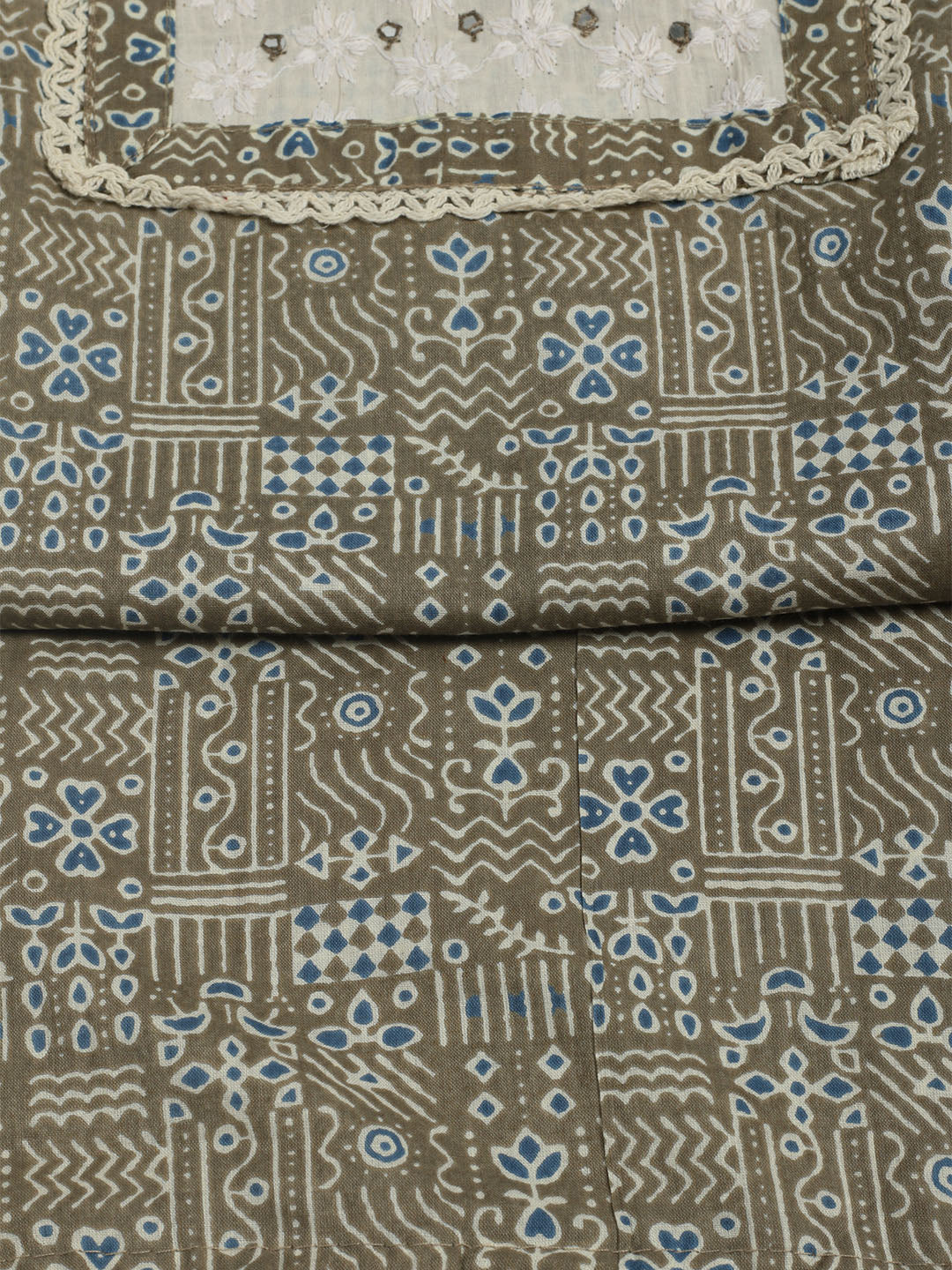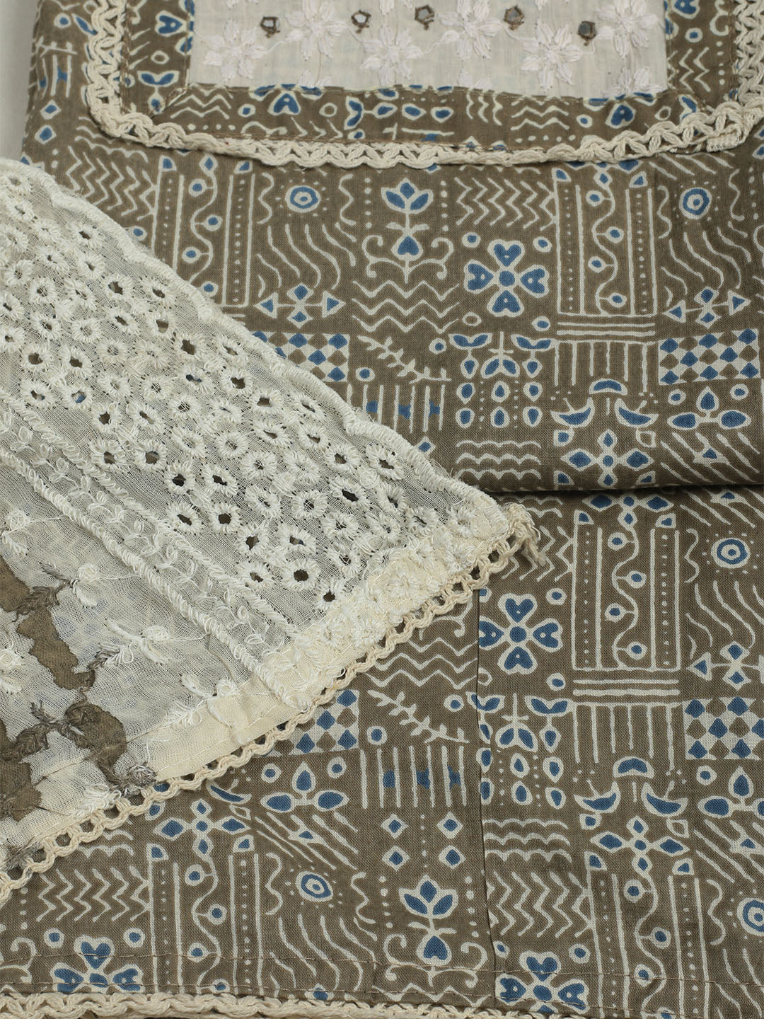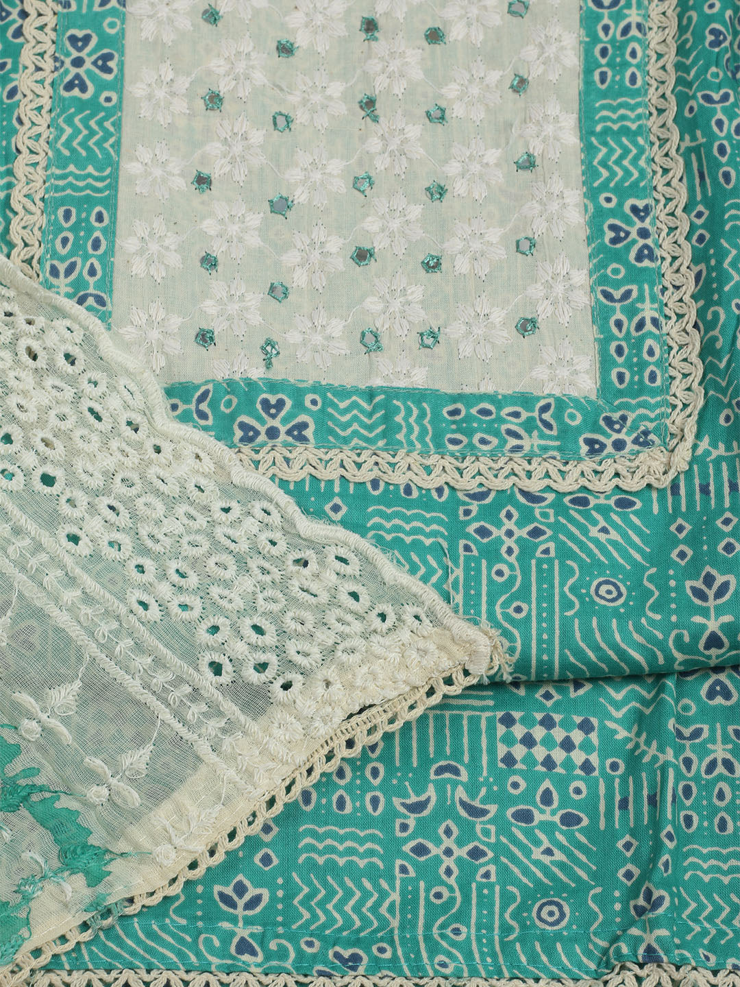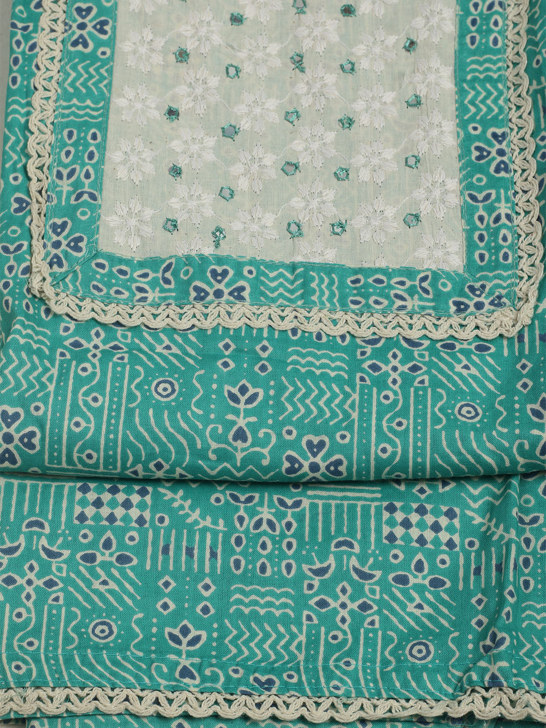 Printed Cotton Unstitched Suits Printed Suit With Pant & Dupatta