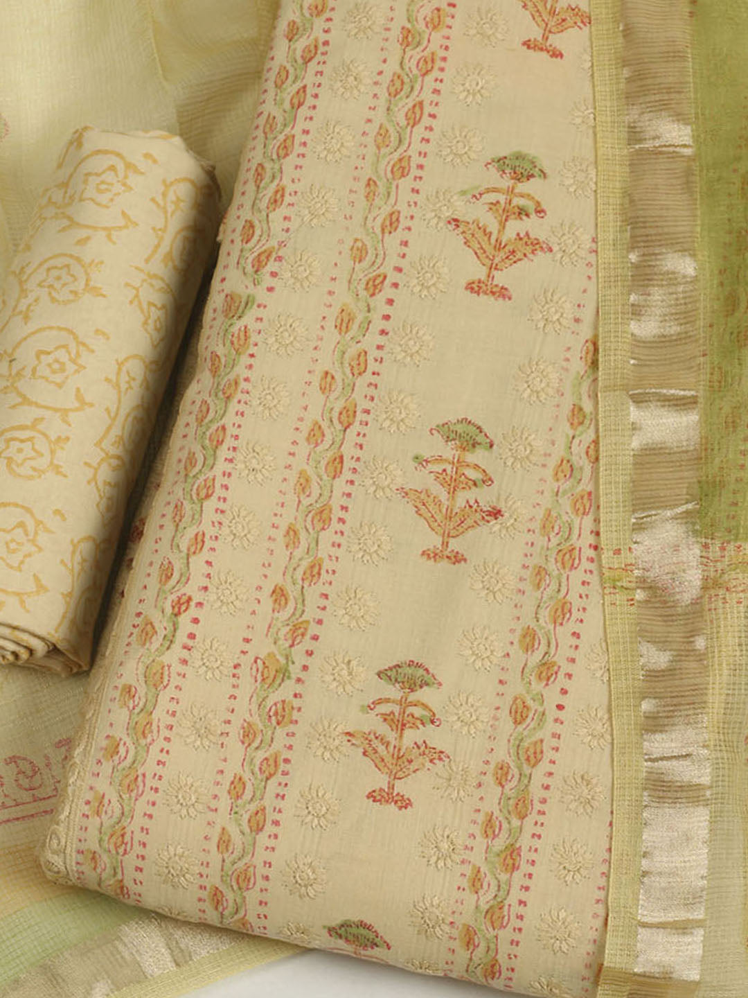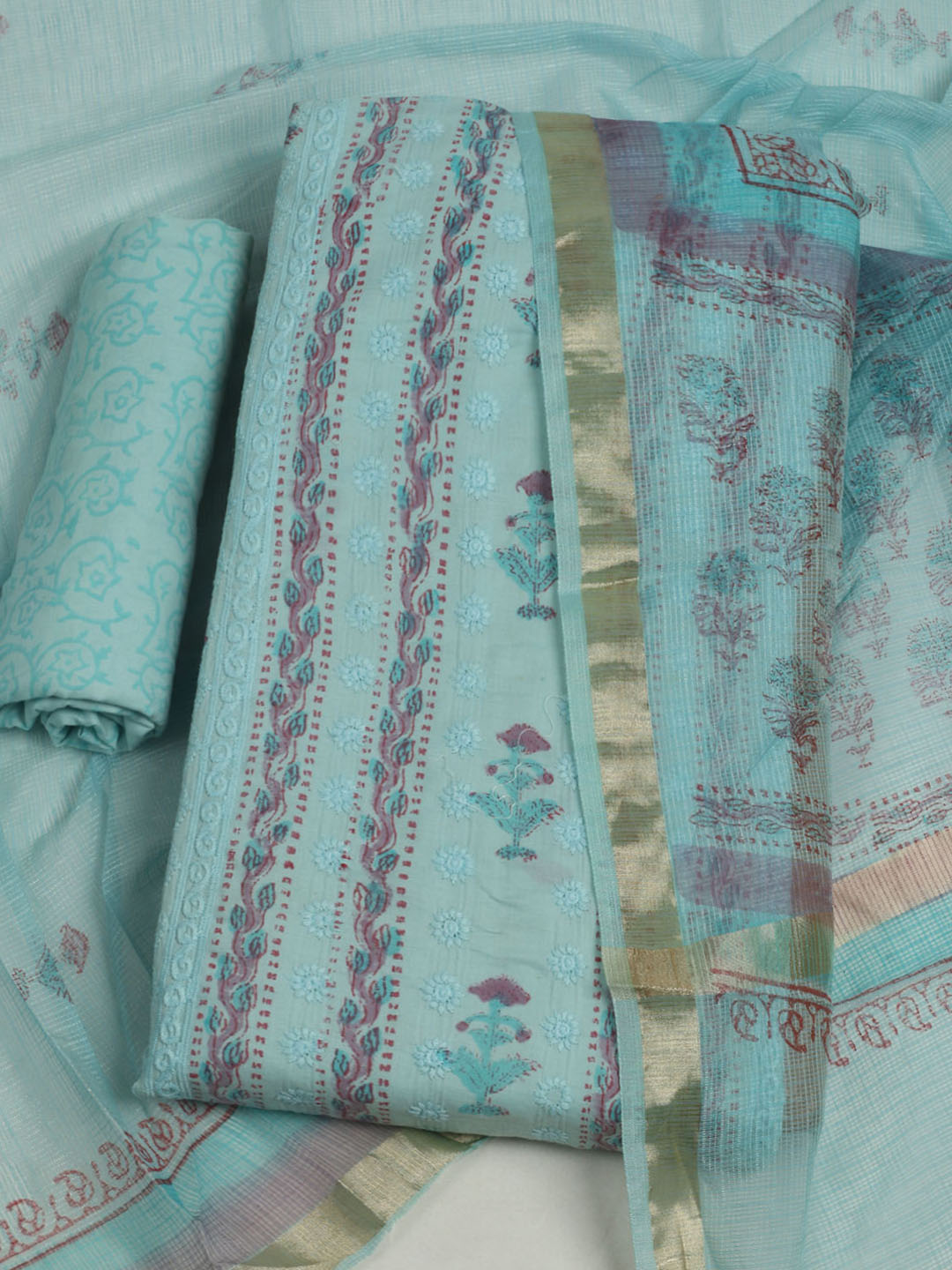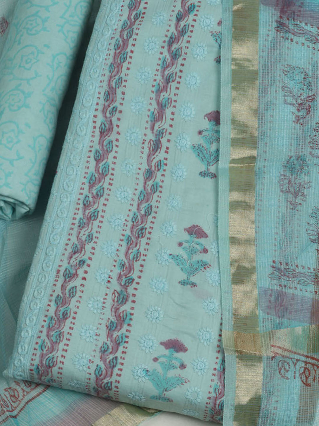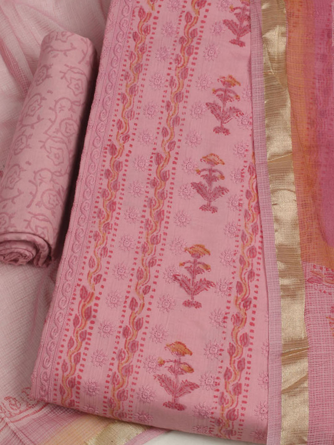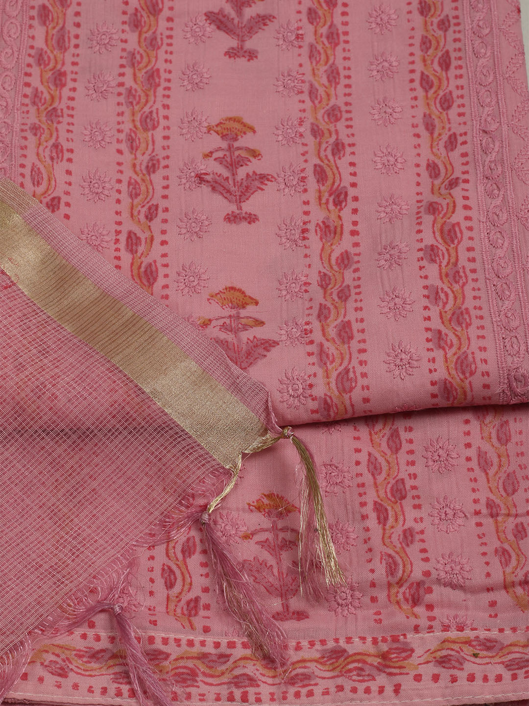 Printed Cotton Unstitched Suits Printed Suit With Pant & Dupatta