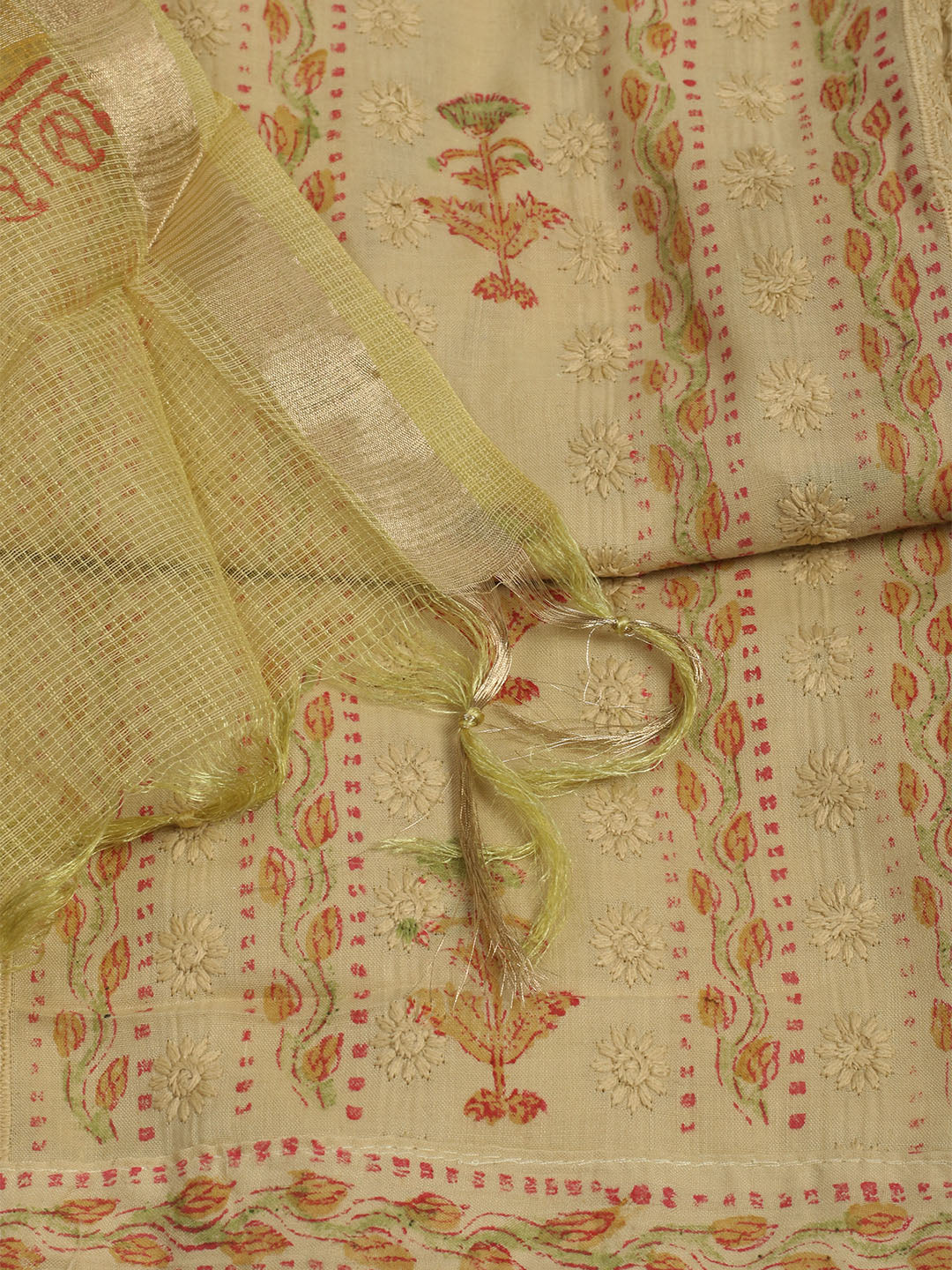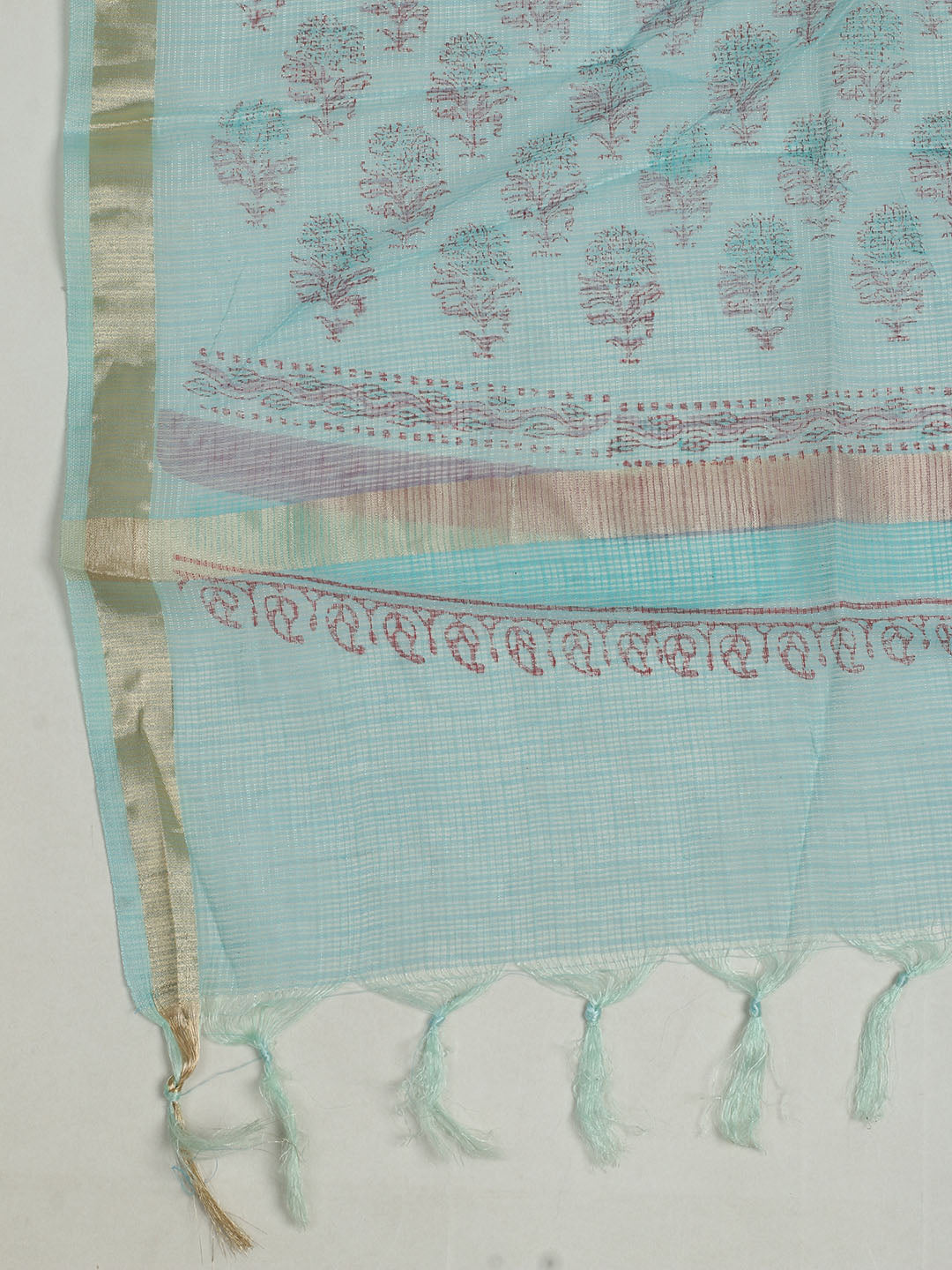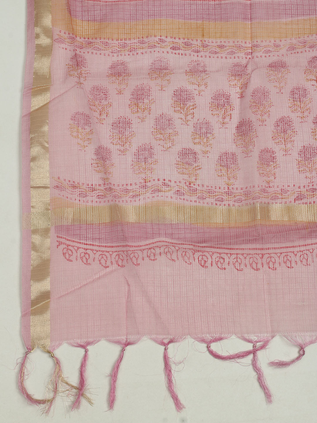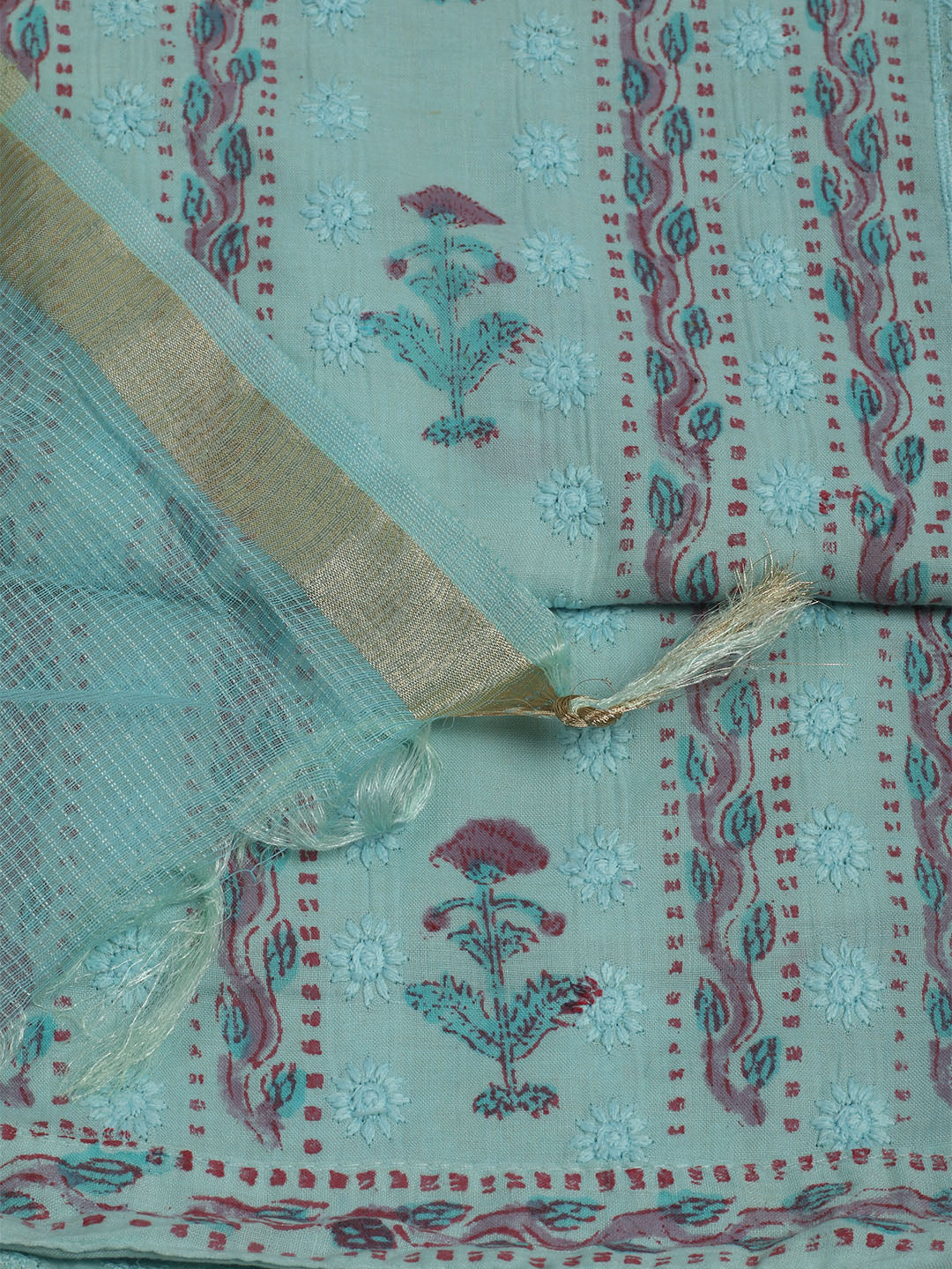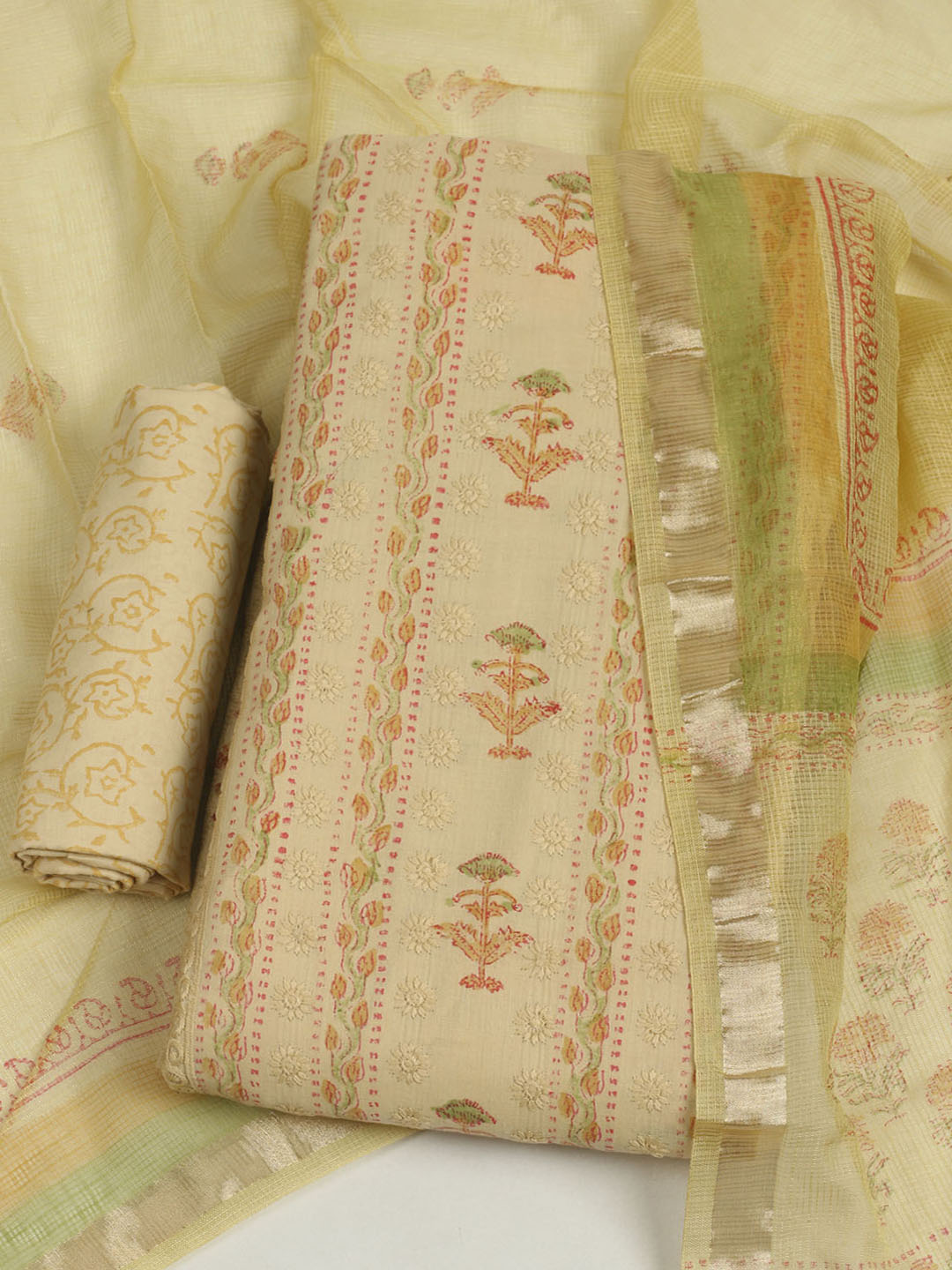 Printed Cotton Unstitched Suits Printed Suit With Pant & Dupatta