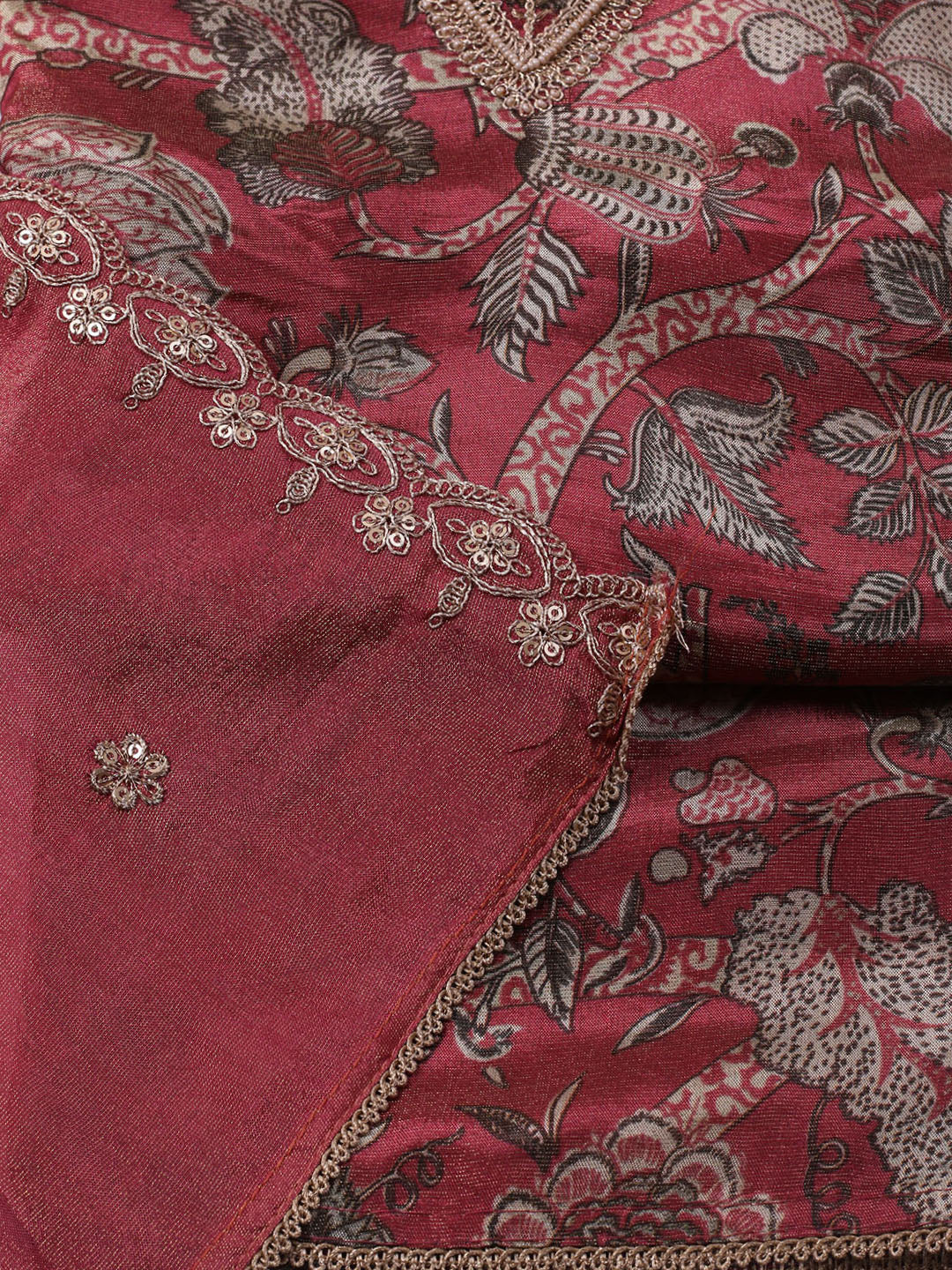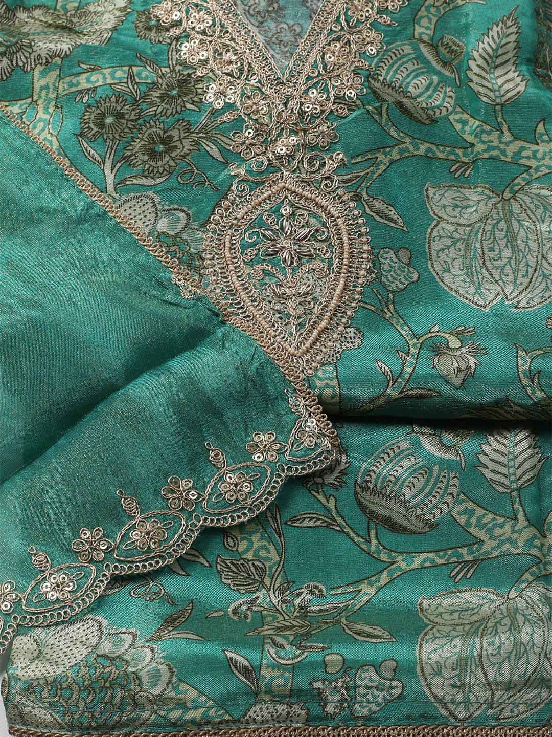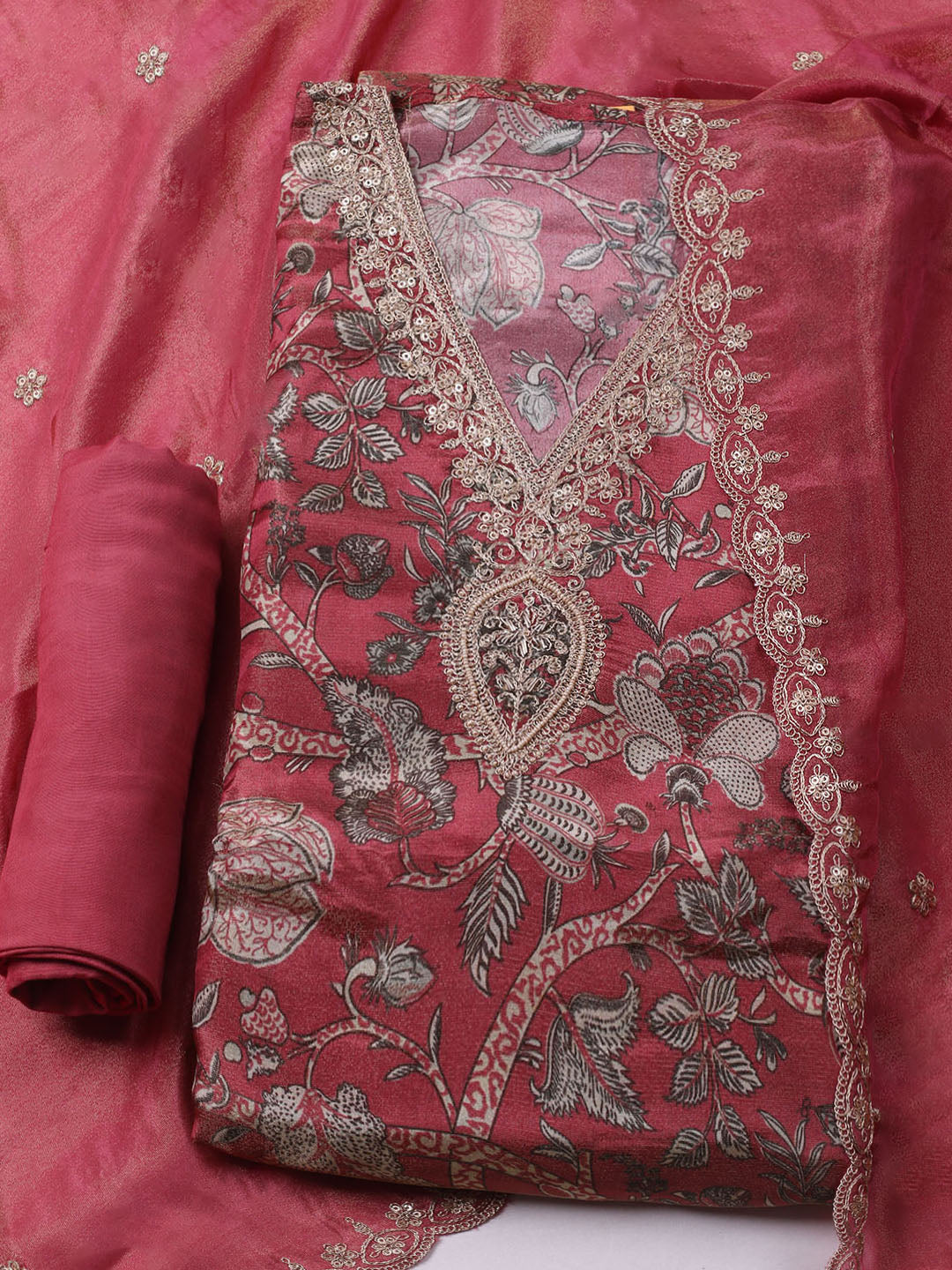 Embroidered Tissue Unstitched Kurta With Pant & Dupatta