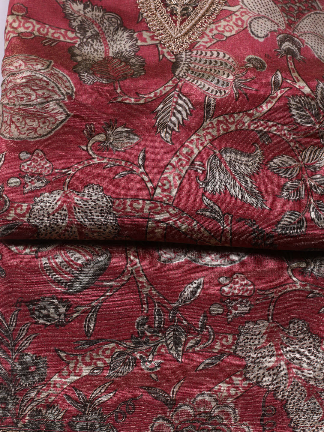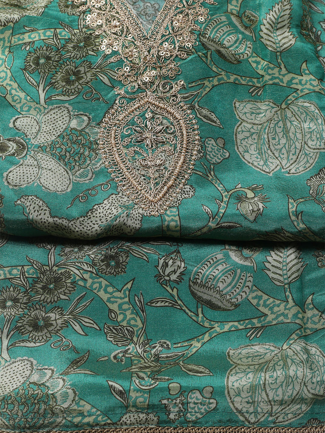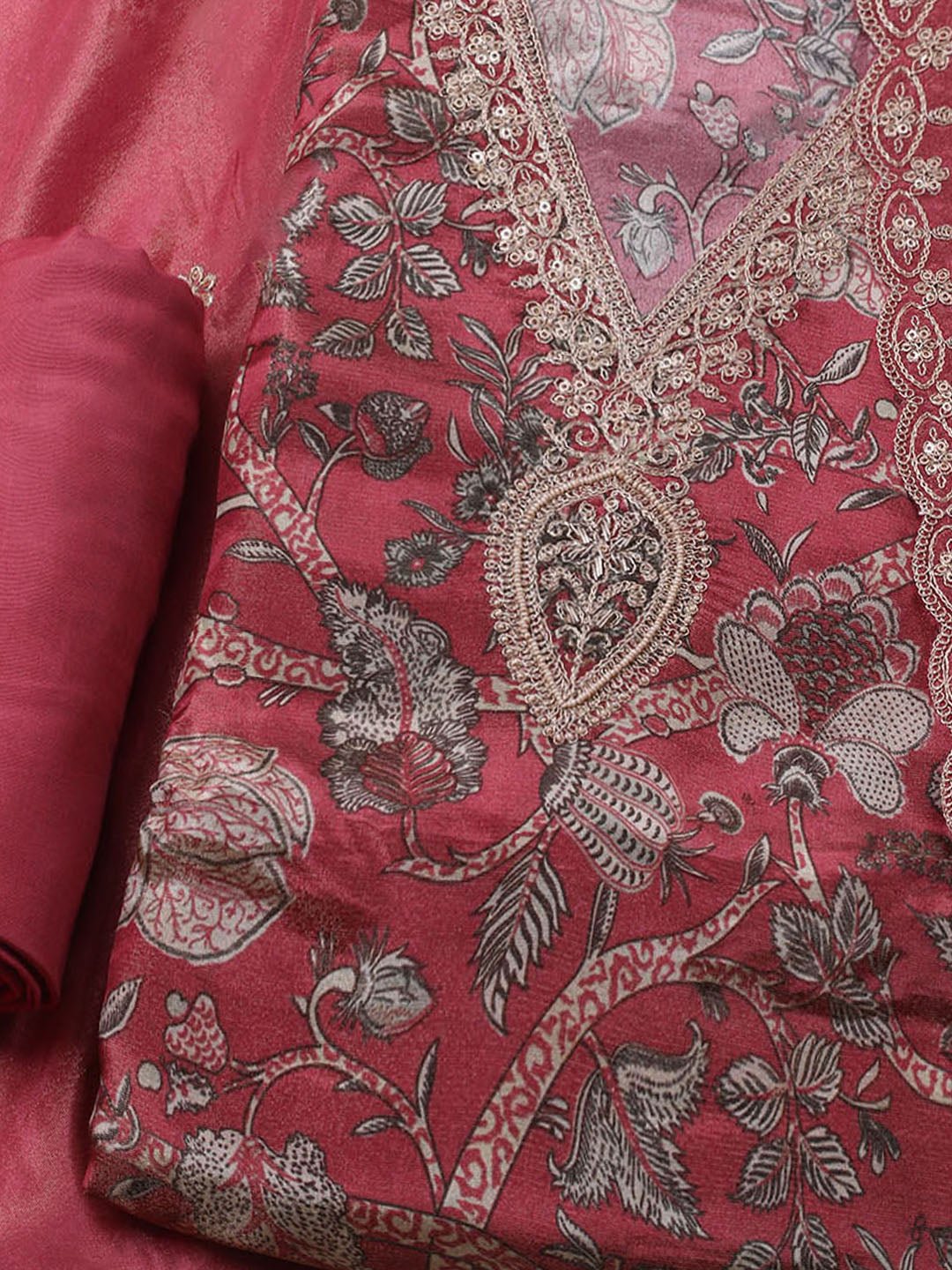 Embroidered Tissue Unstitched Kurta With Pant & Dupatta