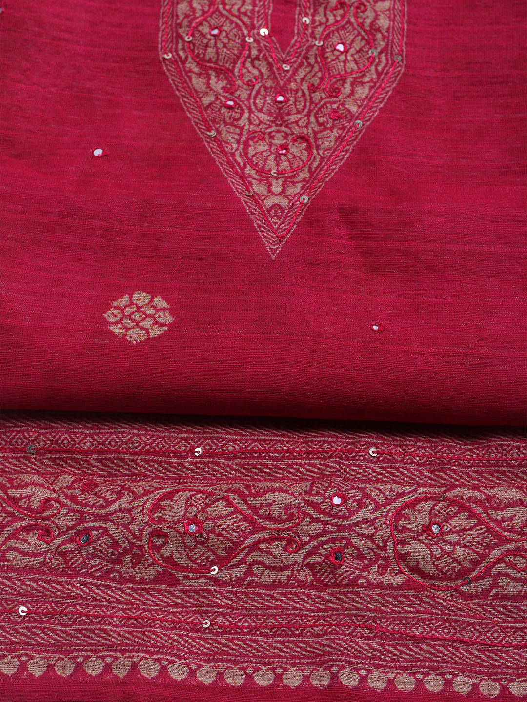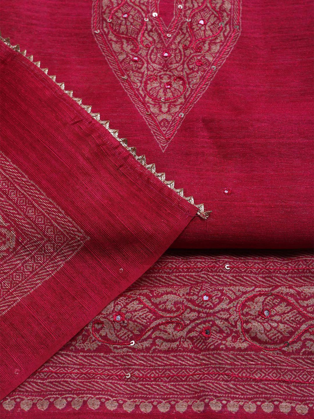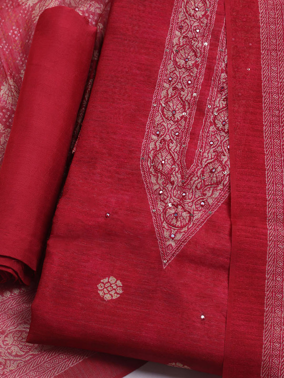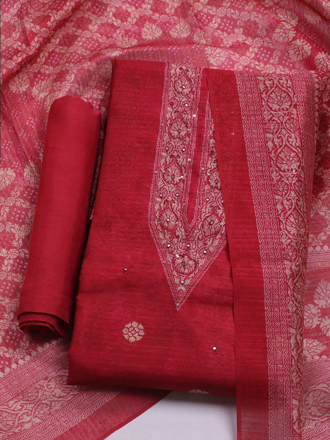 Embroidered Chanderi Unstitched Suit With Dupatta