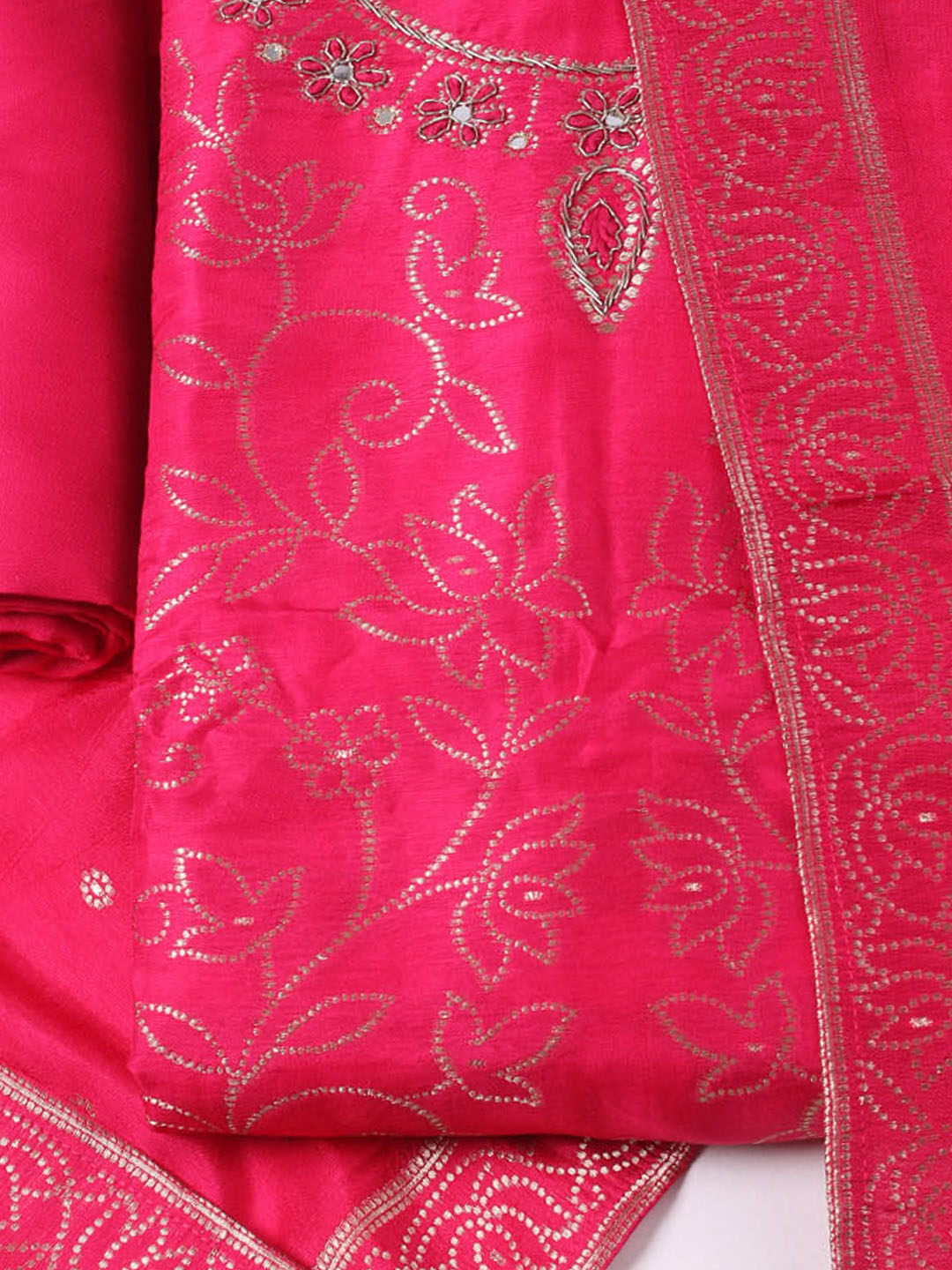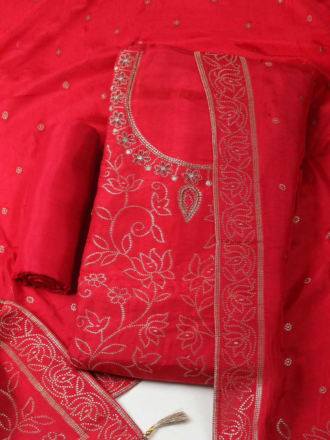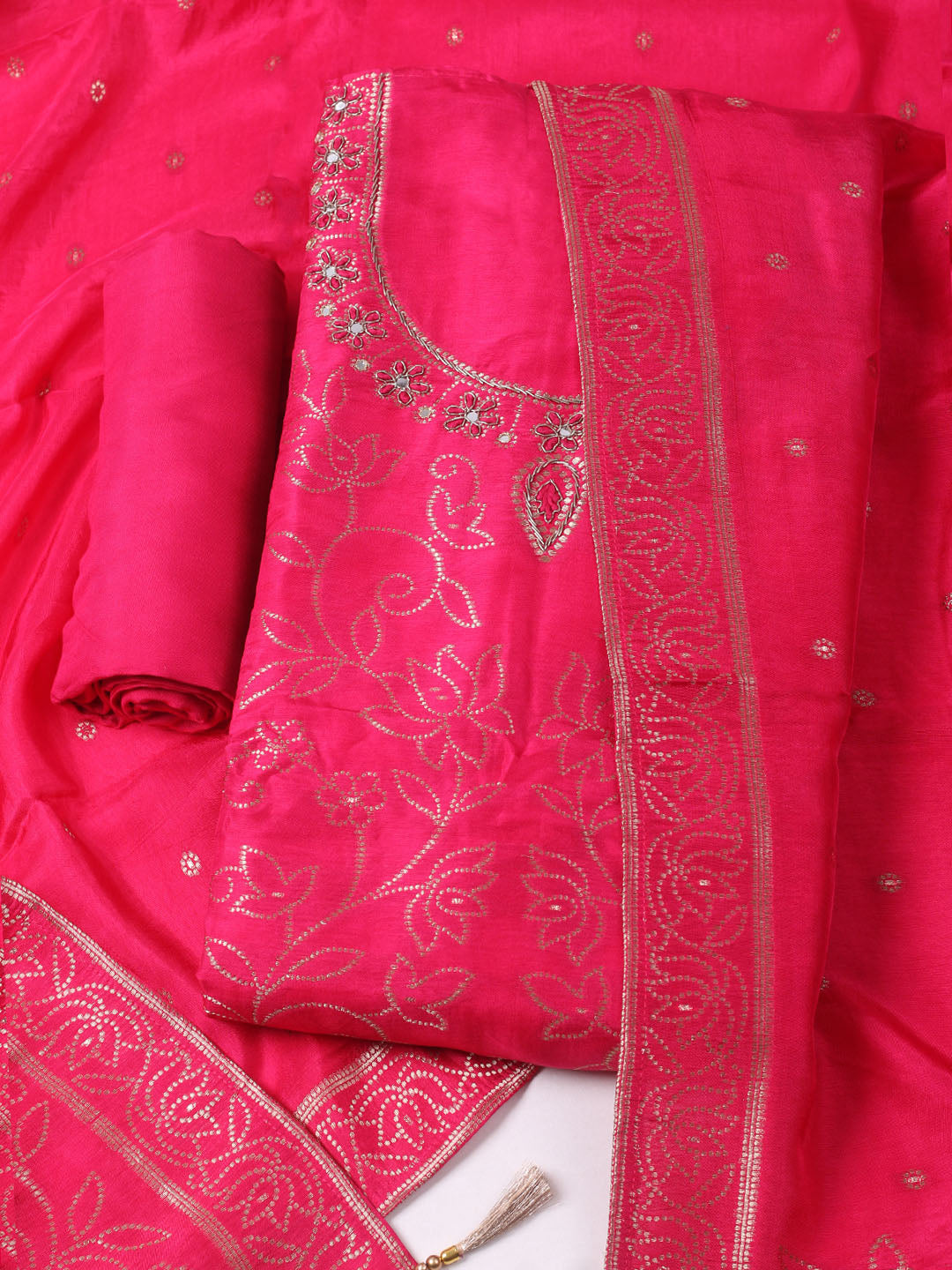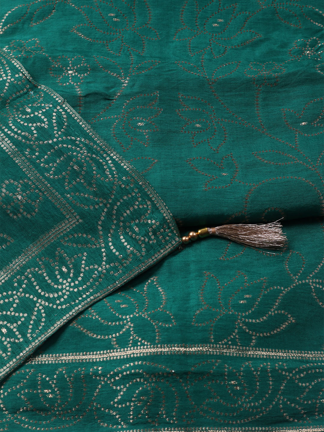 Woven Design Chanderi Unstitched Kurta With Pant & Dupatta