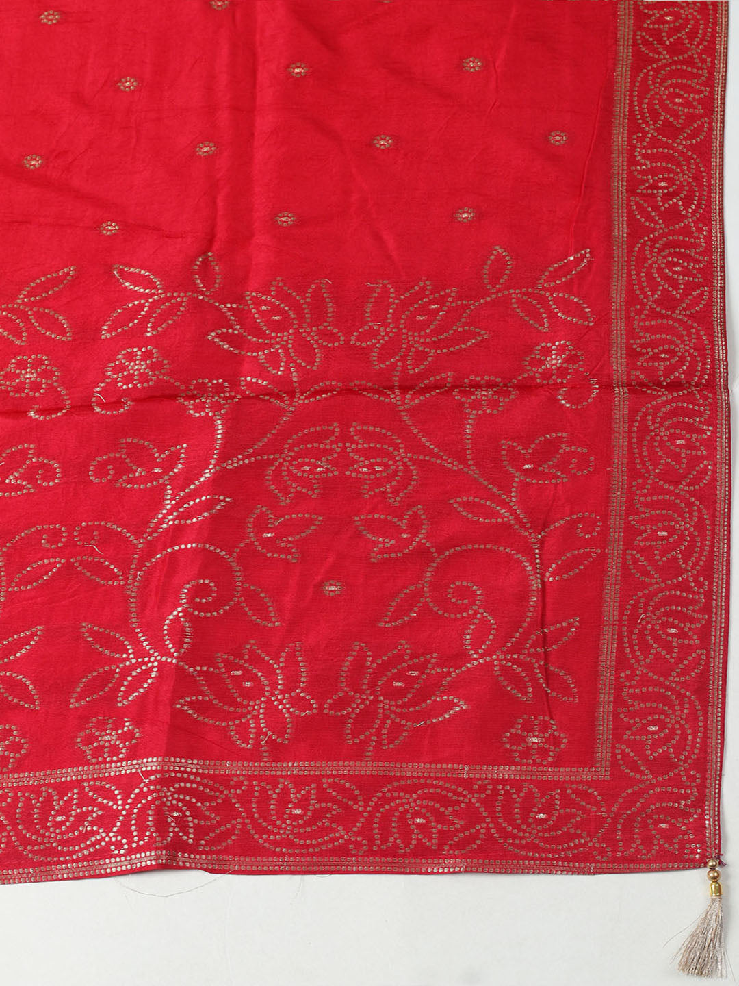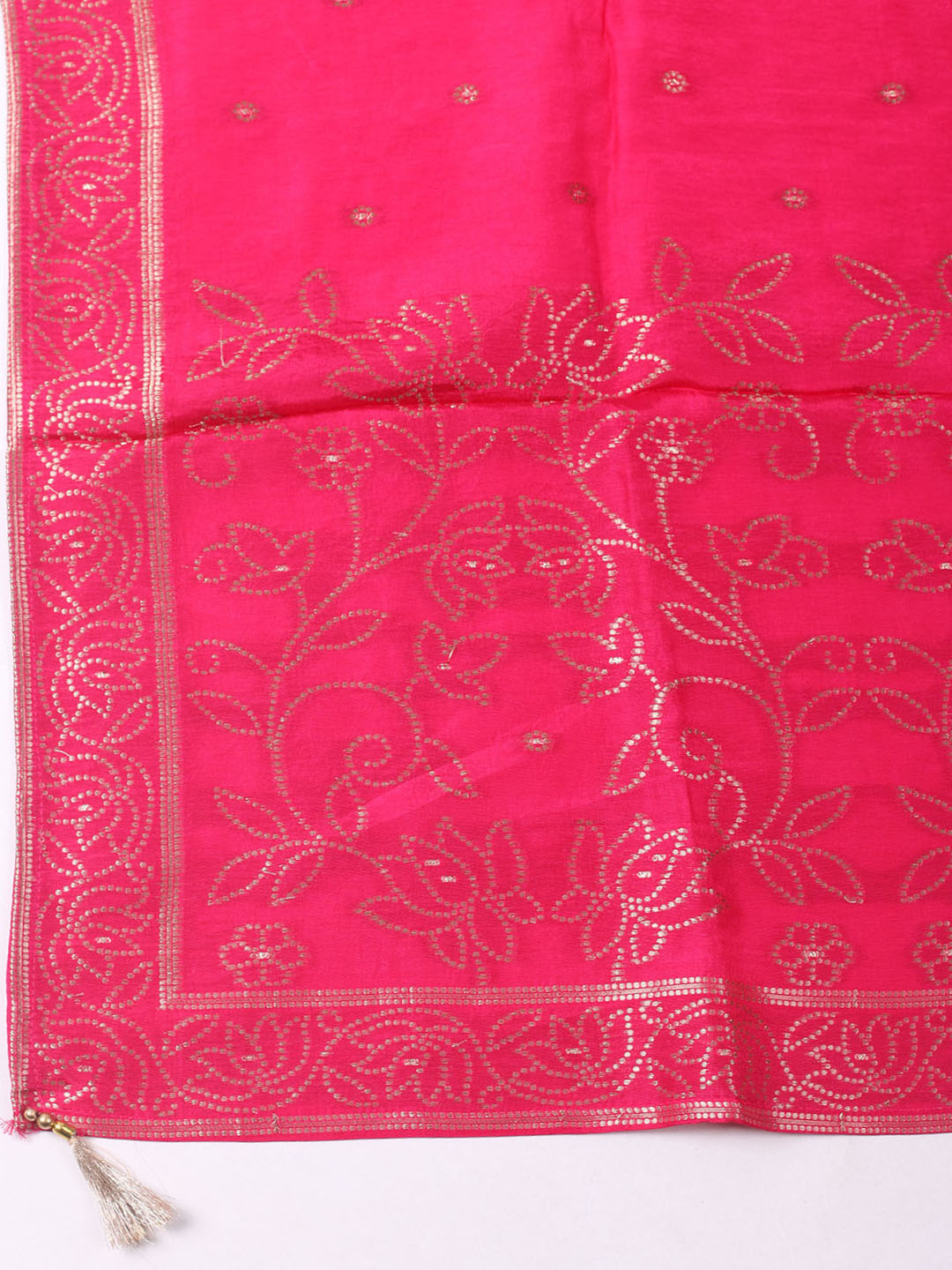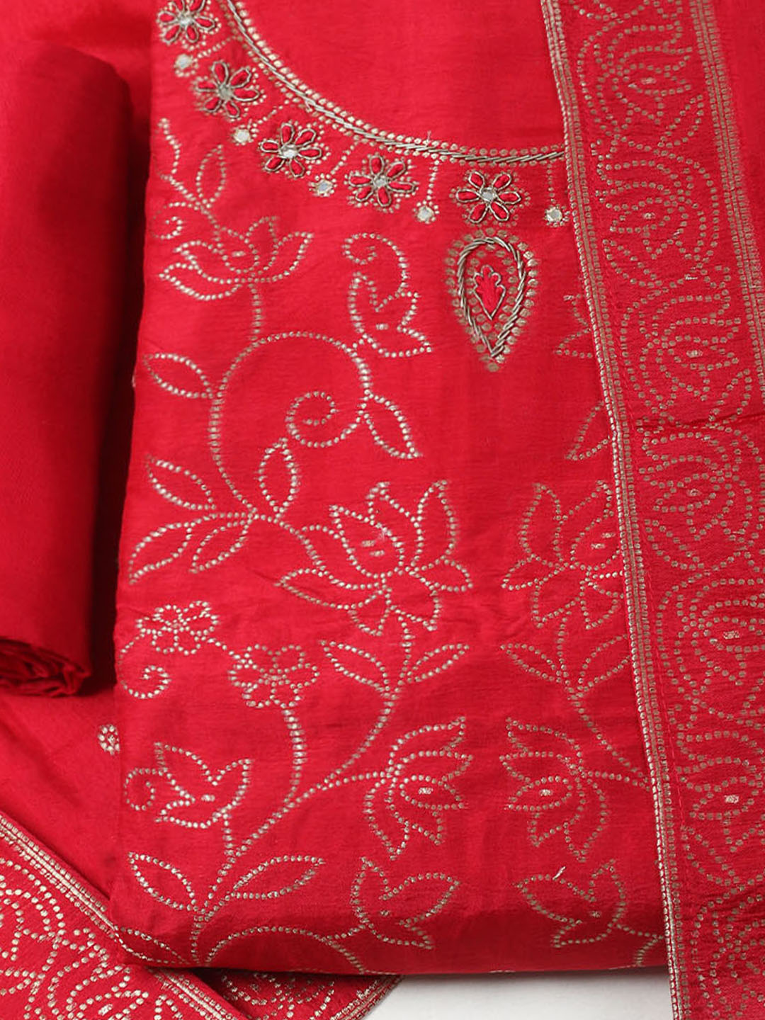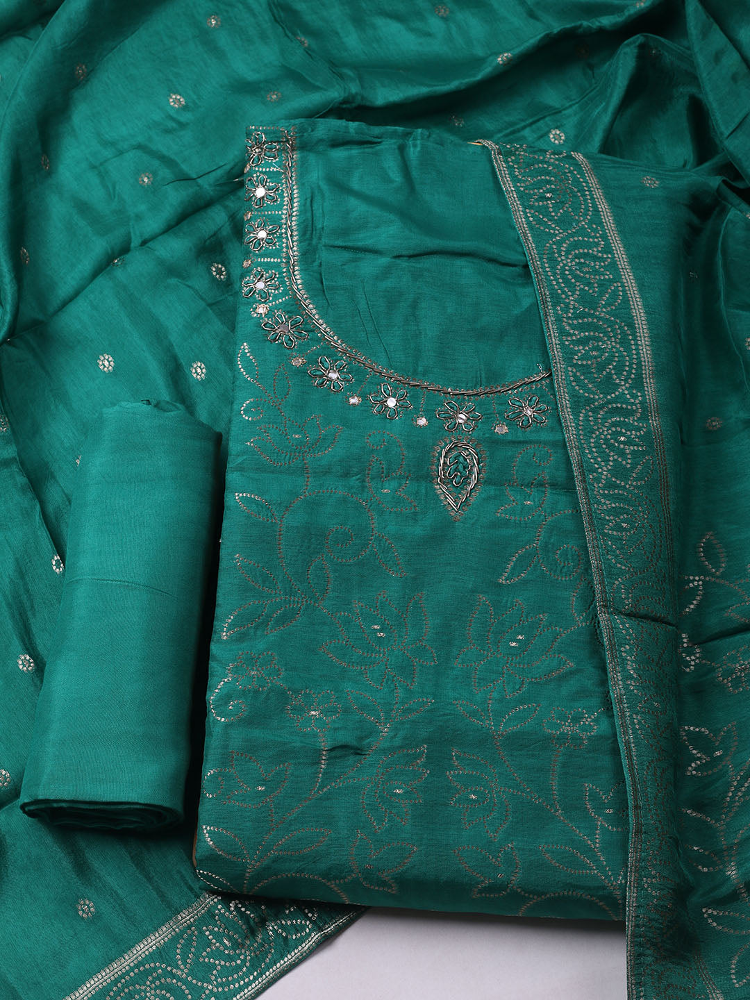 Woven Design Chanderi Unstitched Kurta With Pant & Dupatta