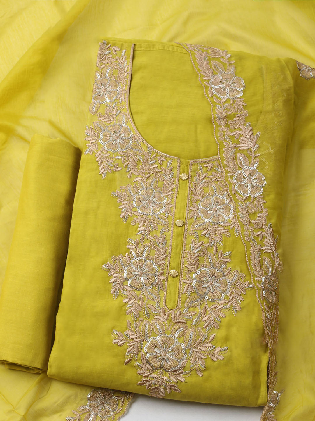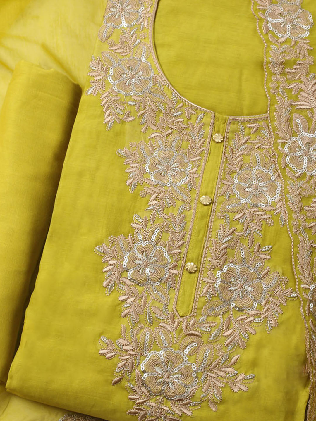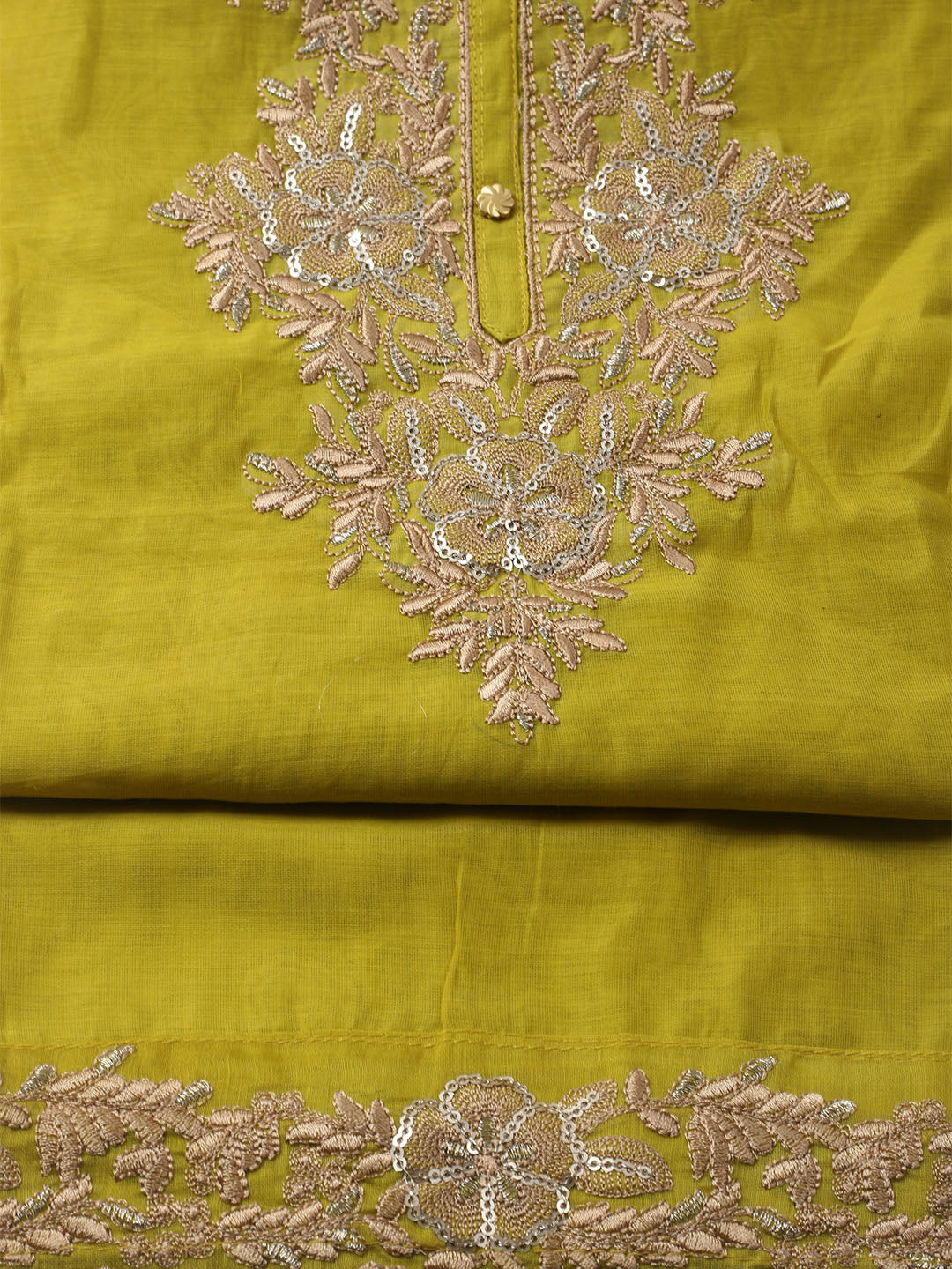 Embroidered Chanderi Unstitched Kurta With Pant & Dupatta