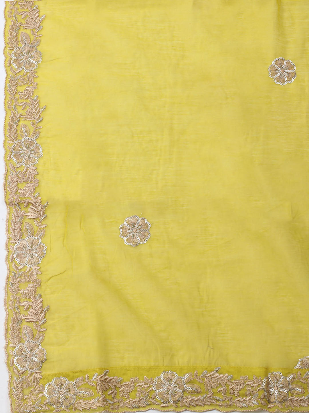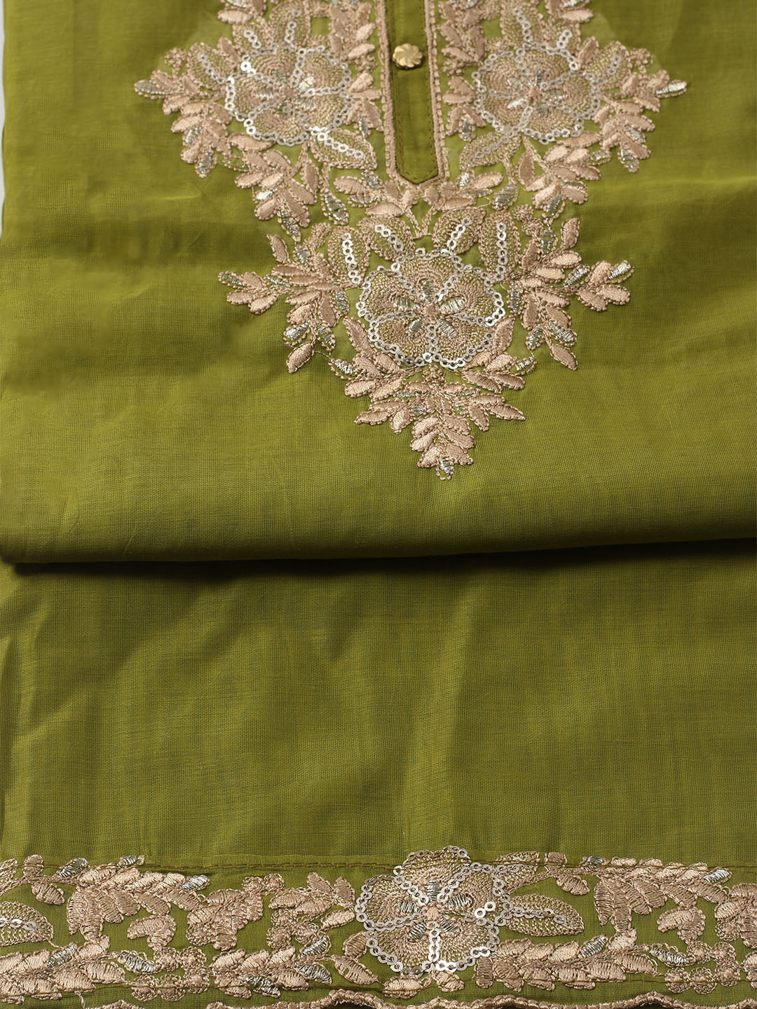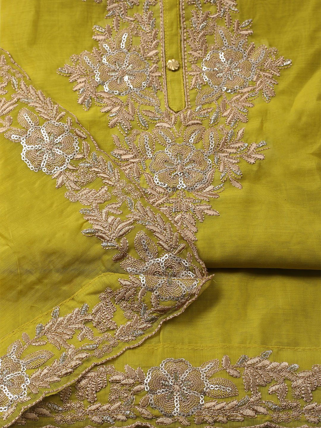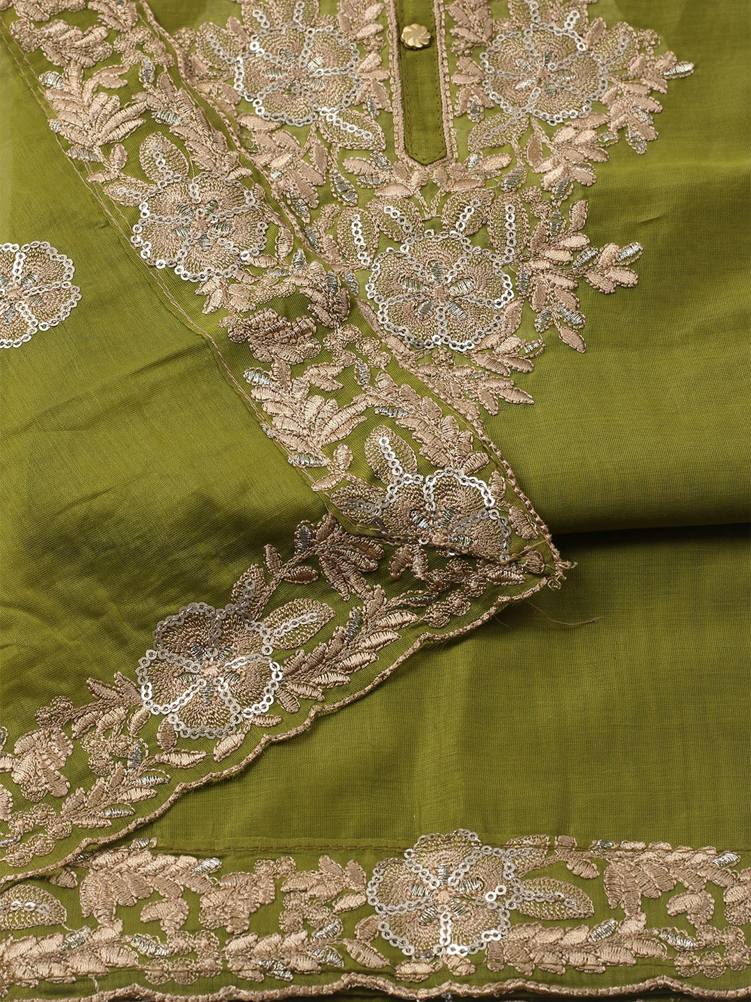 Embroidered Chanderi Unstitched Kurta With Pant & Dupatta