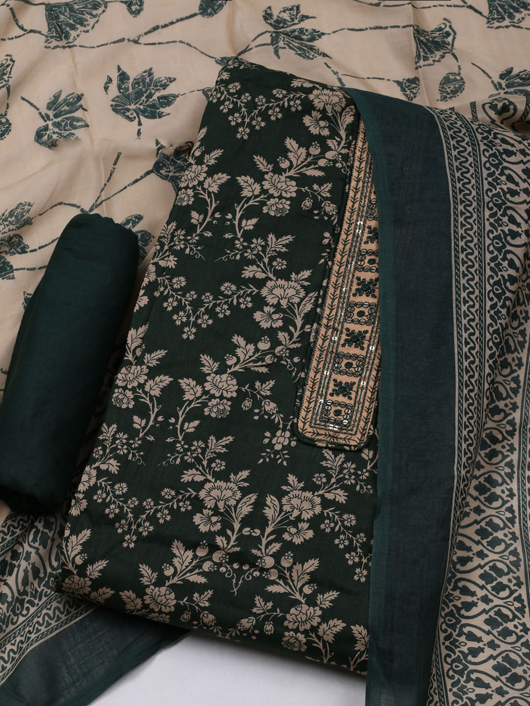 Printed Cotton Blend Unstitched Suit With Dupatta