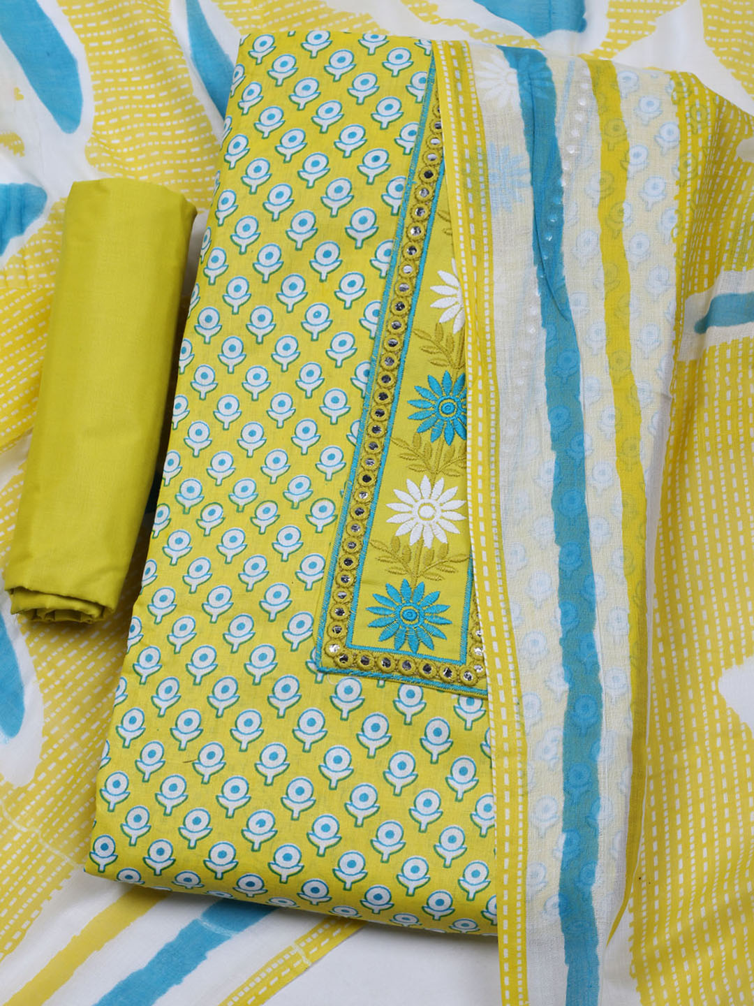 Printed Cotton Blend Unstitched Suit With Dupatta