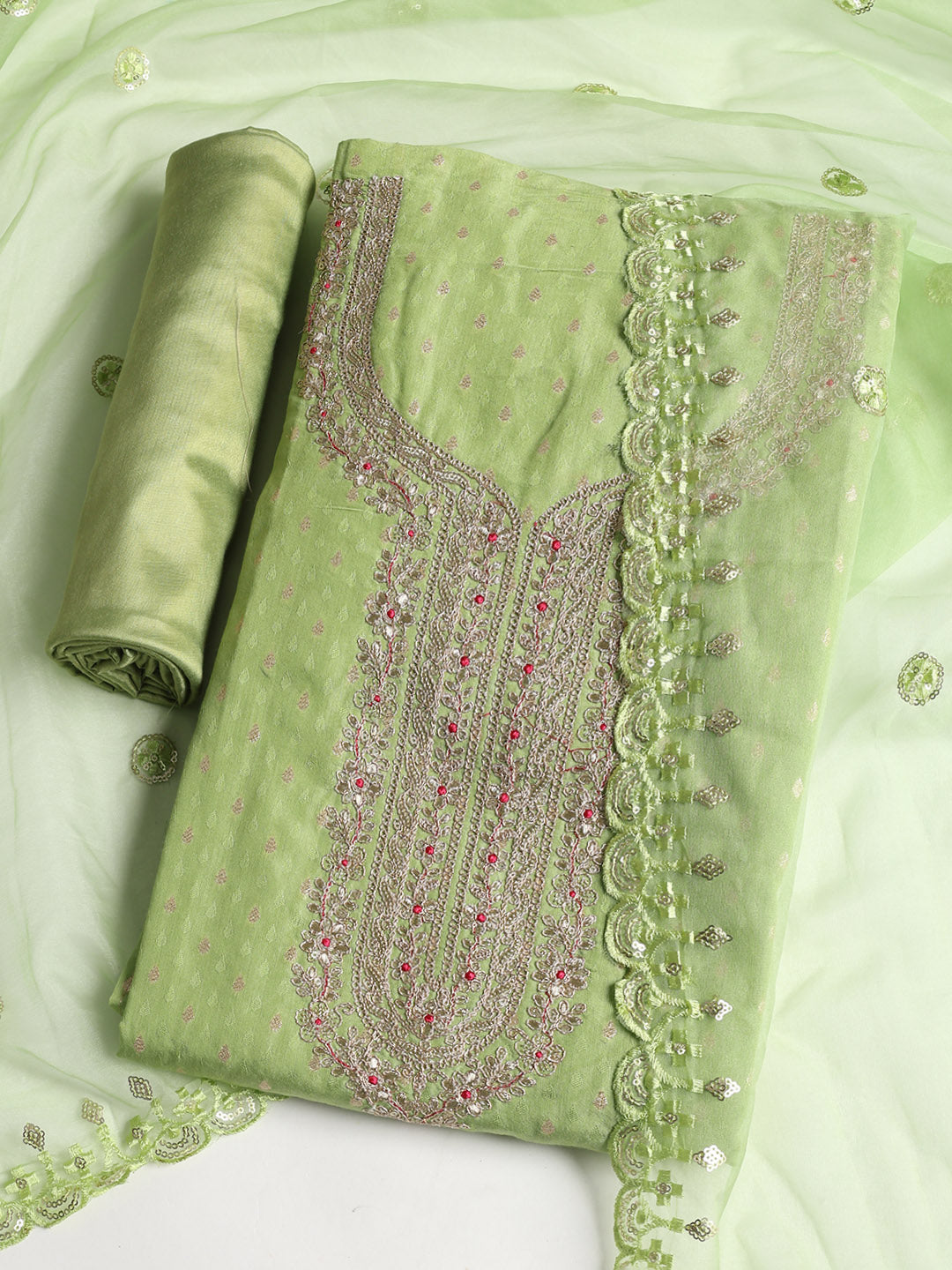 Neck Embroidered Chanderi Unstitched Suit With Dupatta