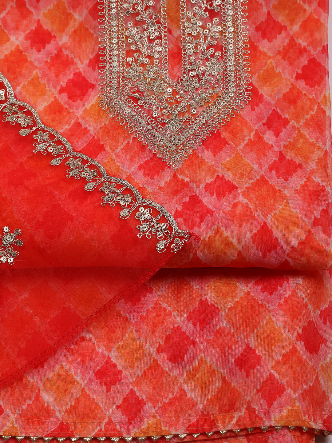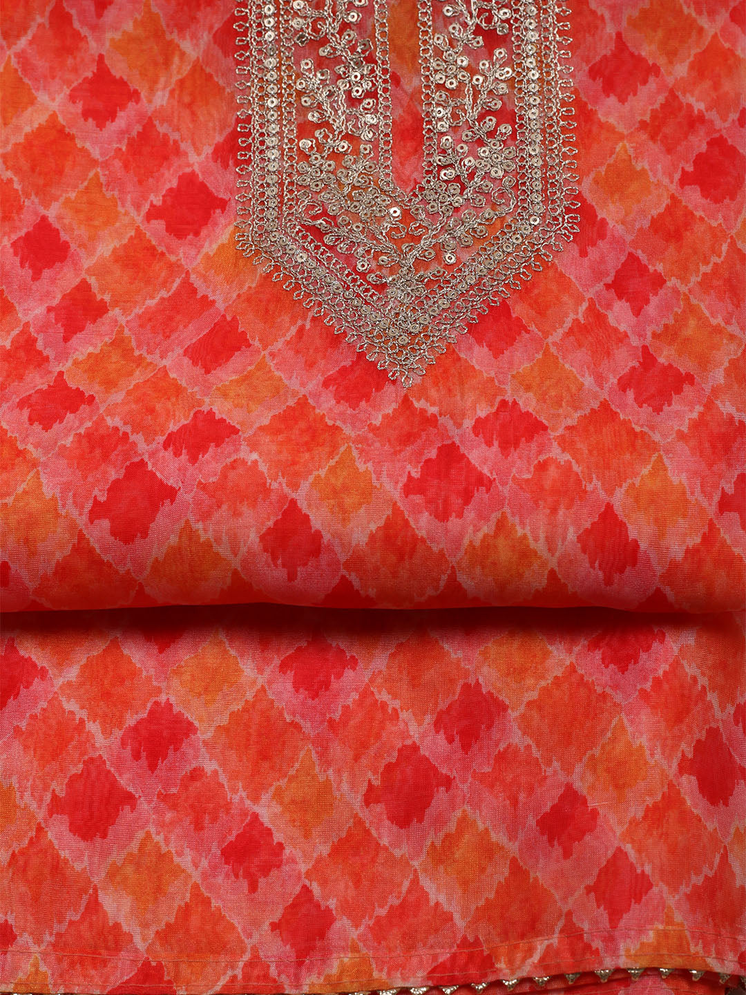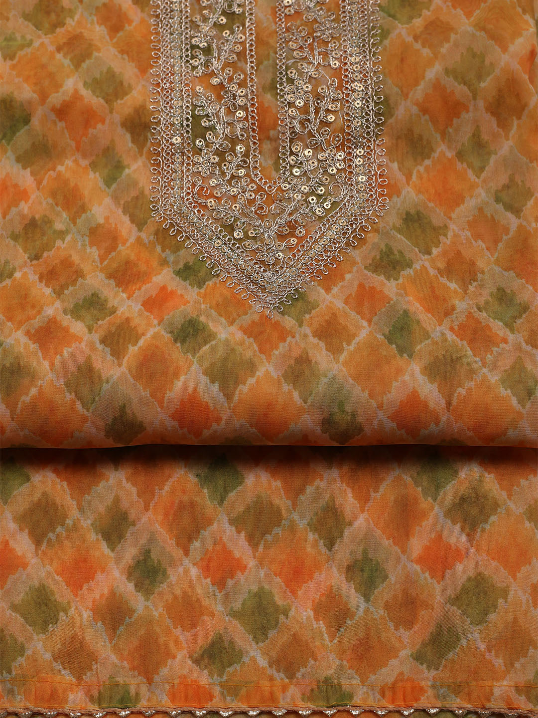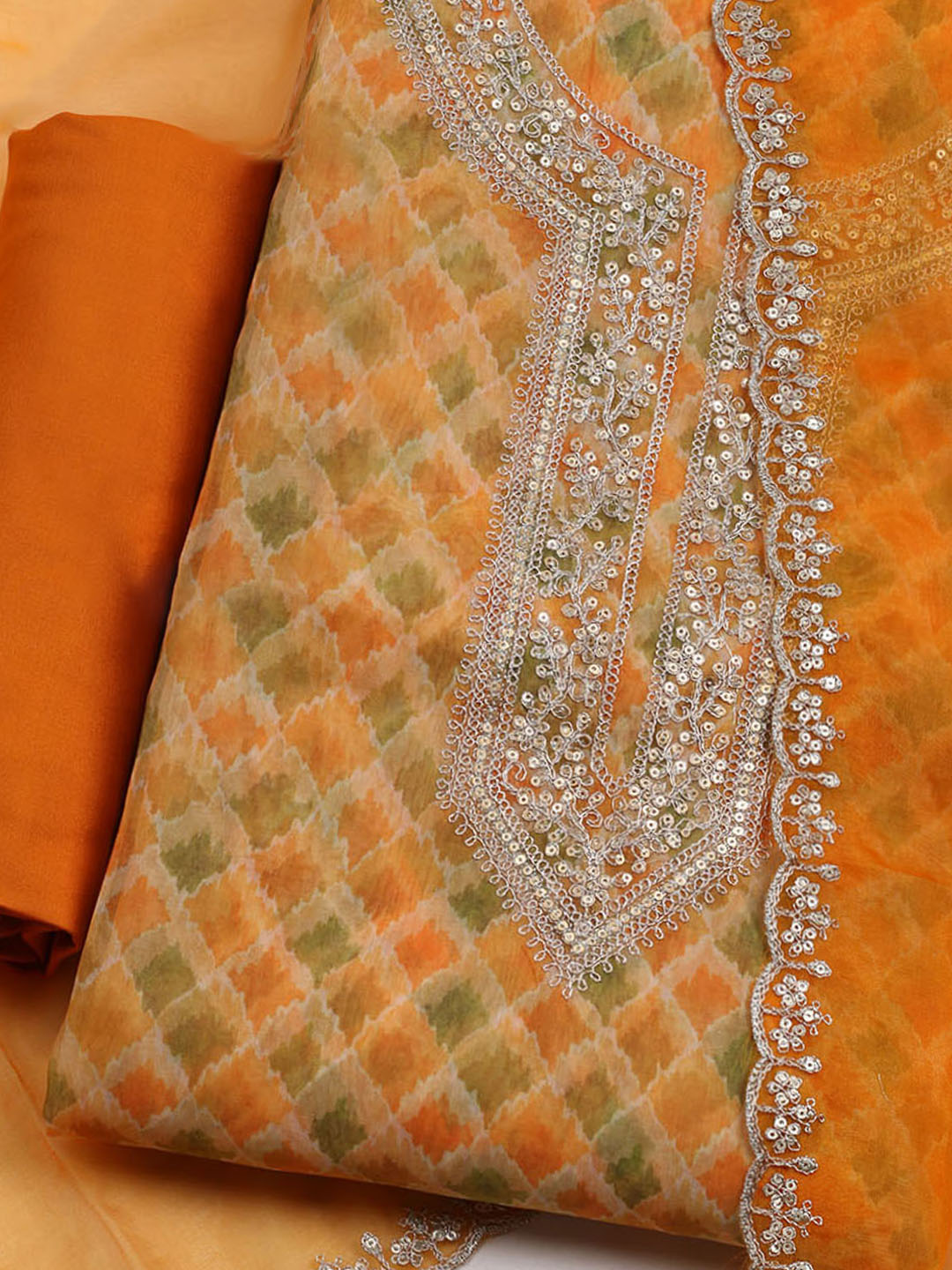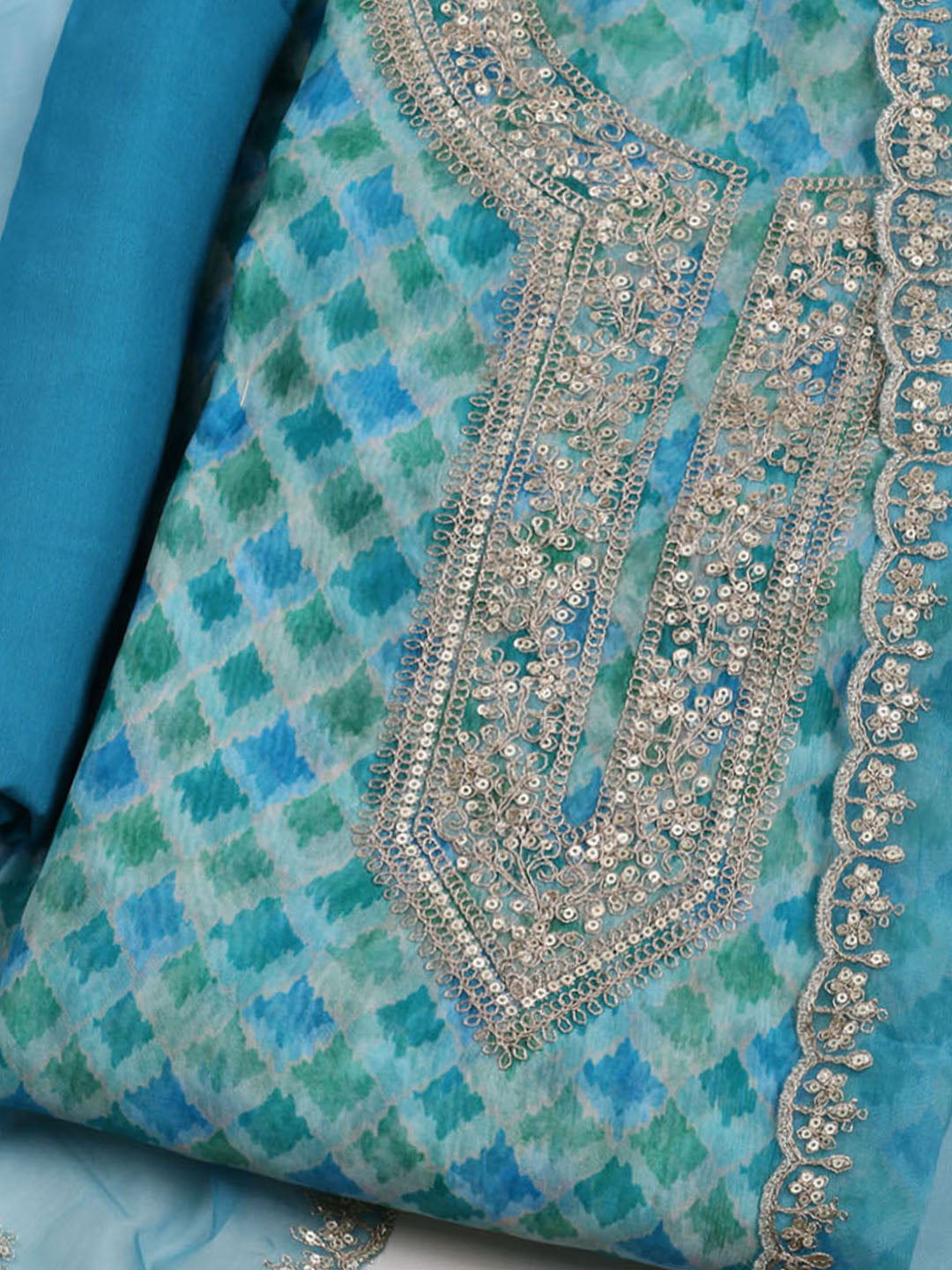 Neck Embroidered & Printed Organza Unstitched Suit With Dupatta