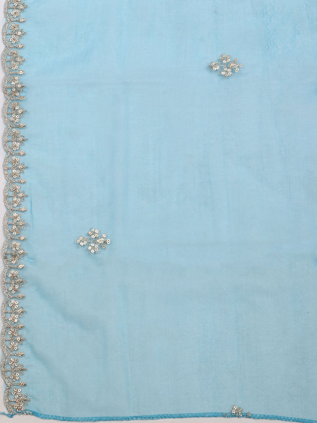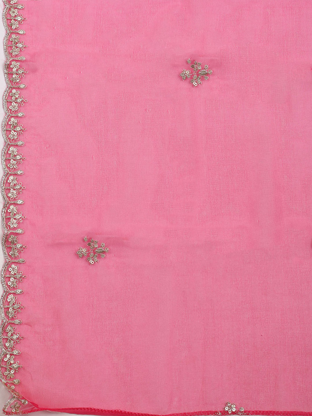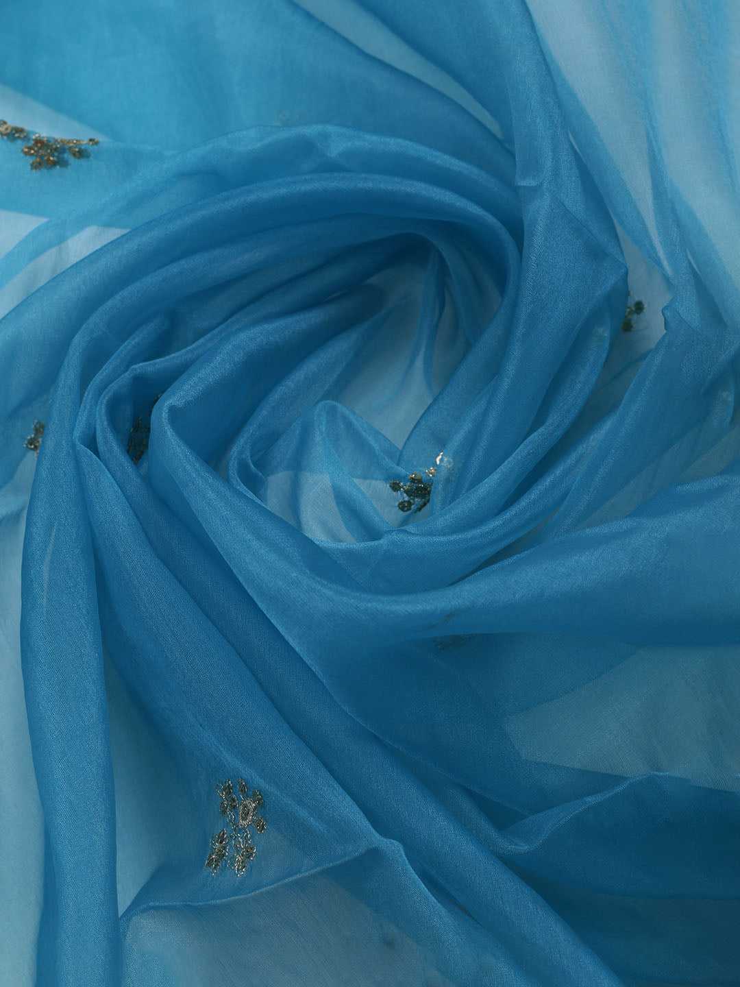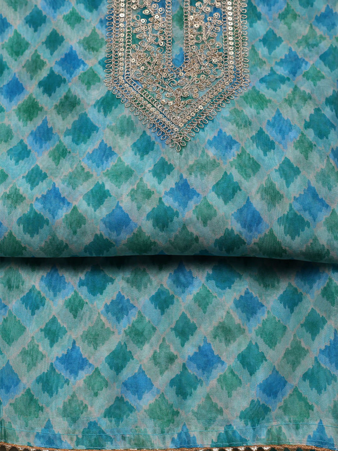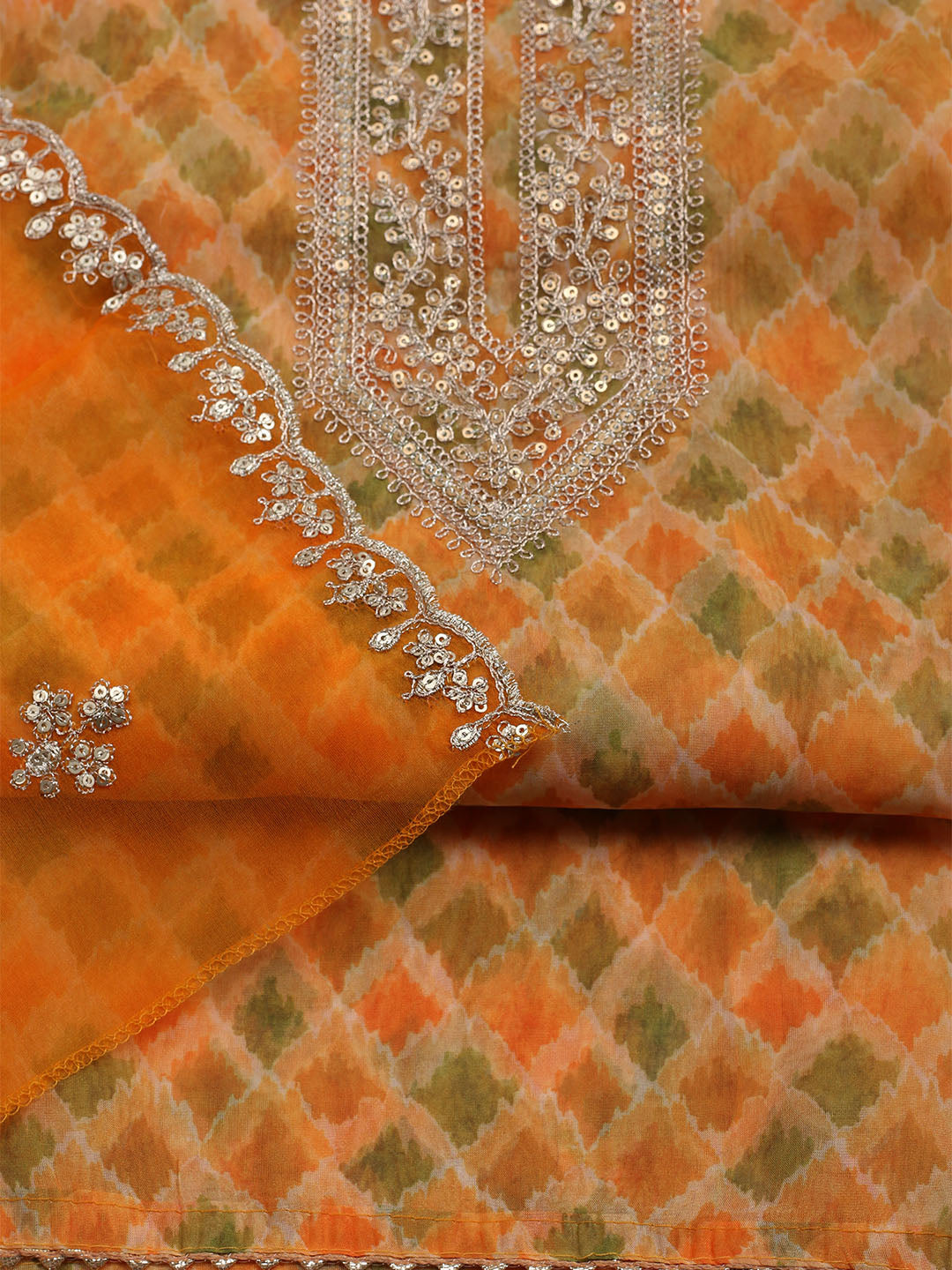 Neck Embroidered & Printed Organza Unstitched Suit With Dupatta