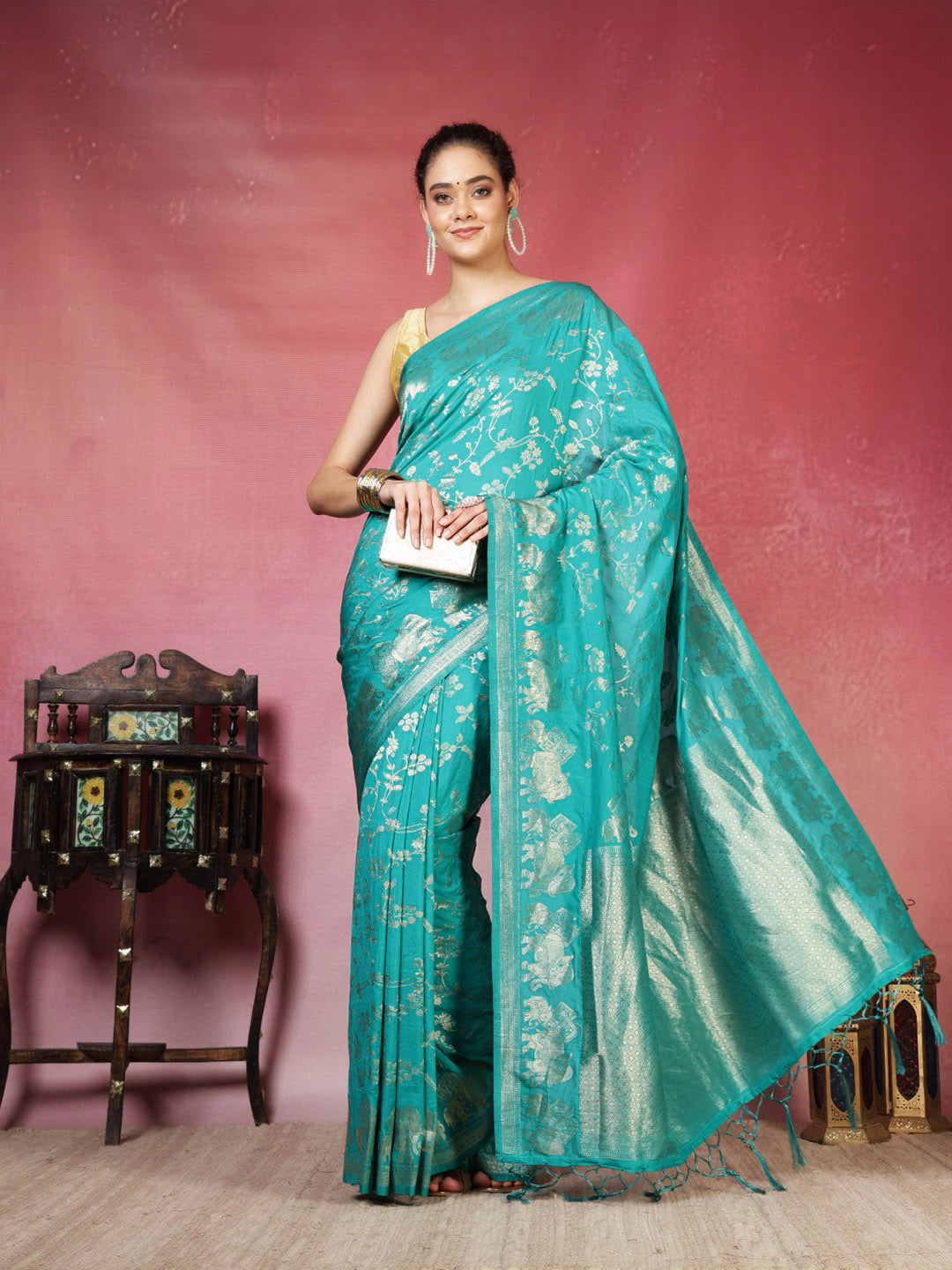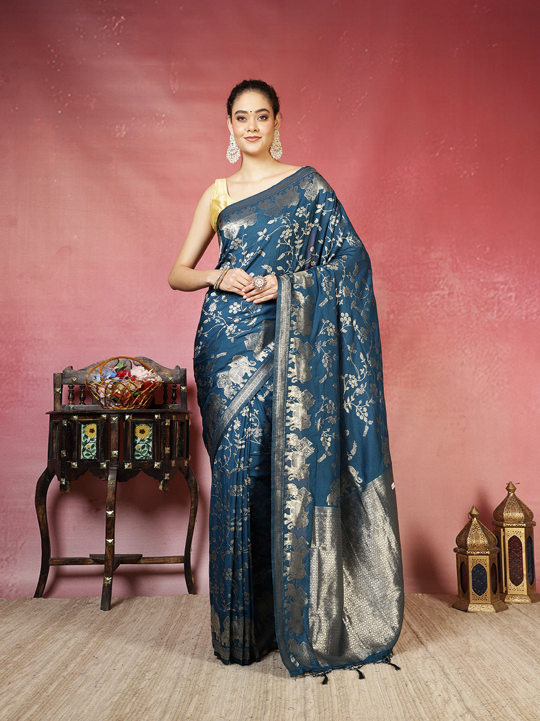 Note: The blouse shown in the pictures is just for Photoshoot purposes. The blouse you will get will be an attached running blouse.