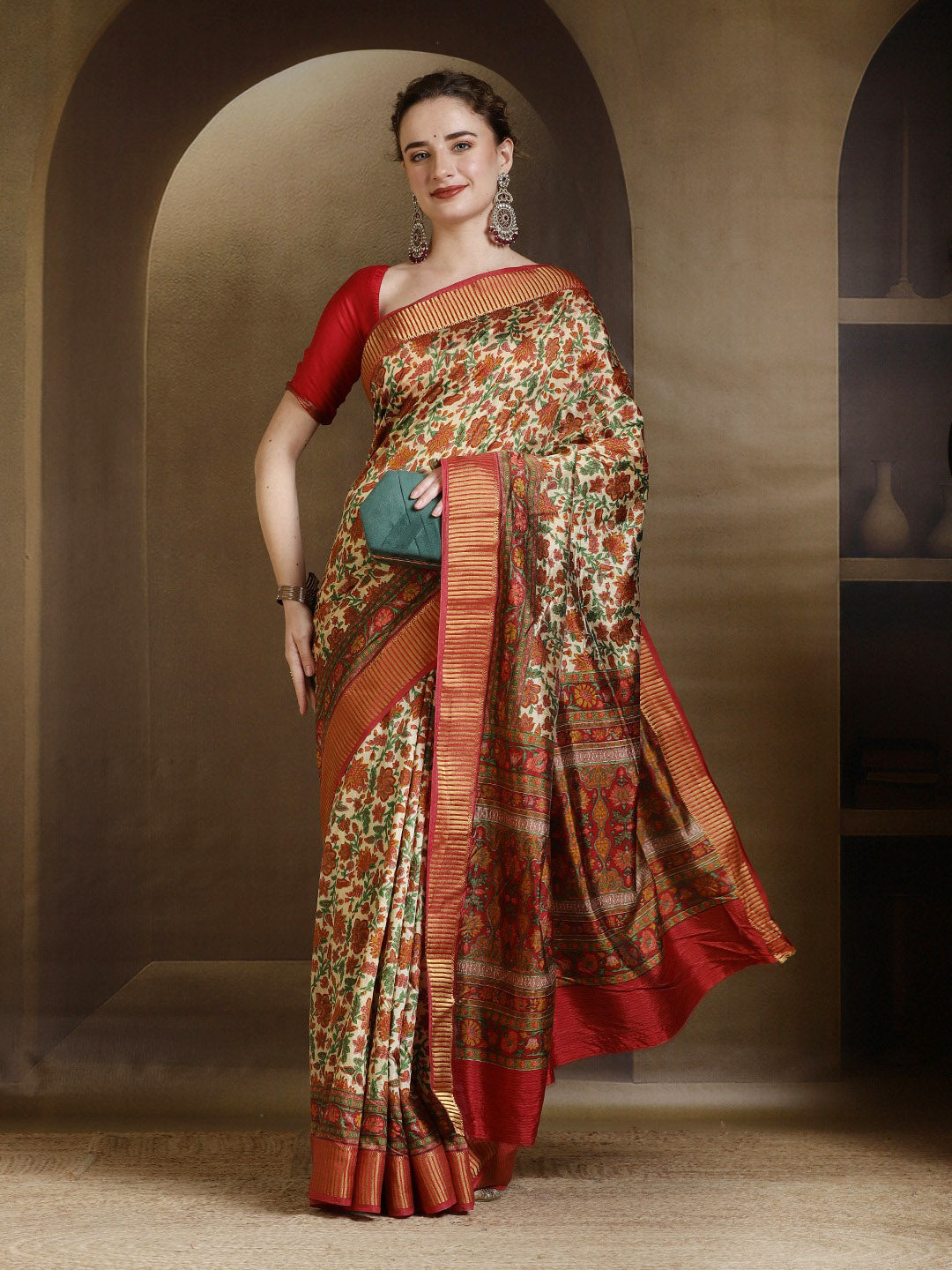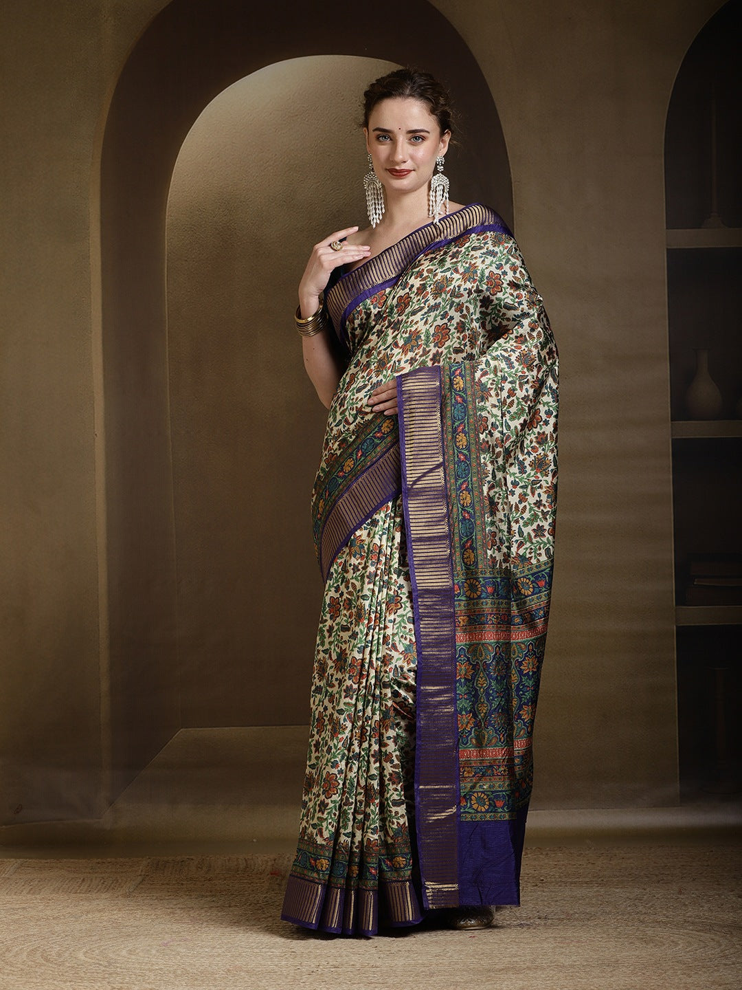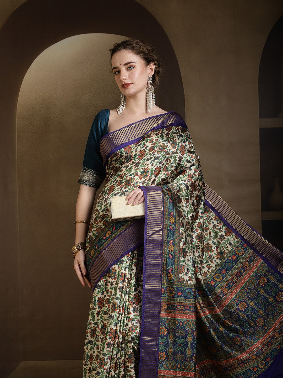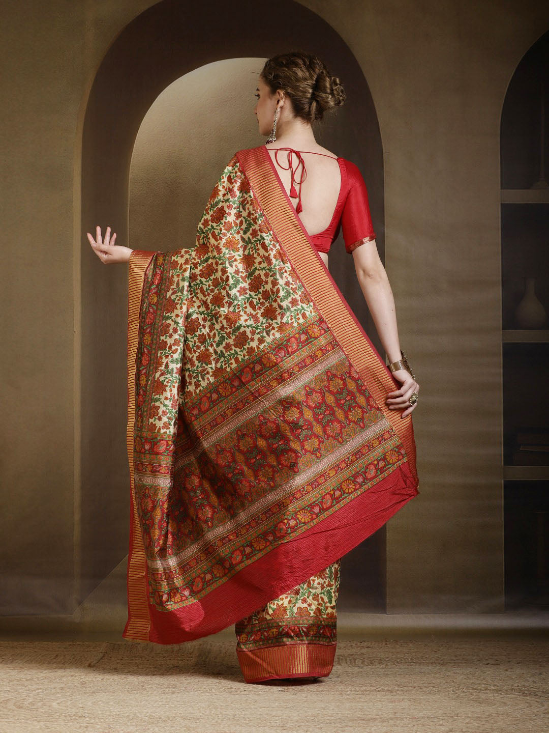 Note: The blouse shown in the pictures is just for Photoshoot purposes. The blouse you will get will be an attached running blouse.