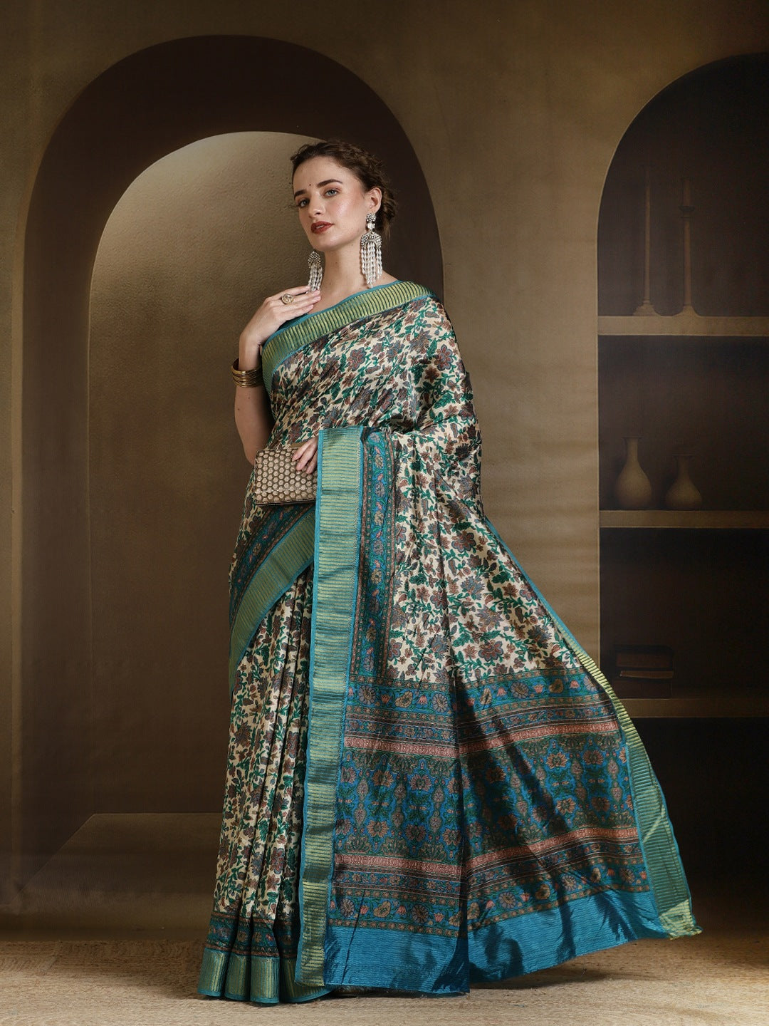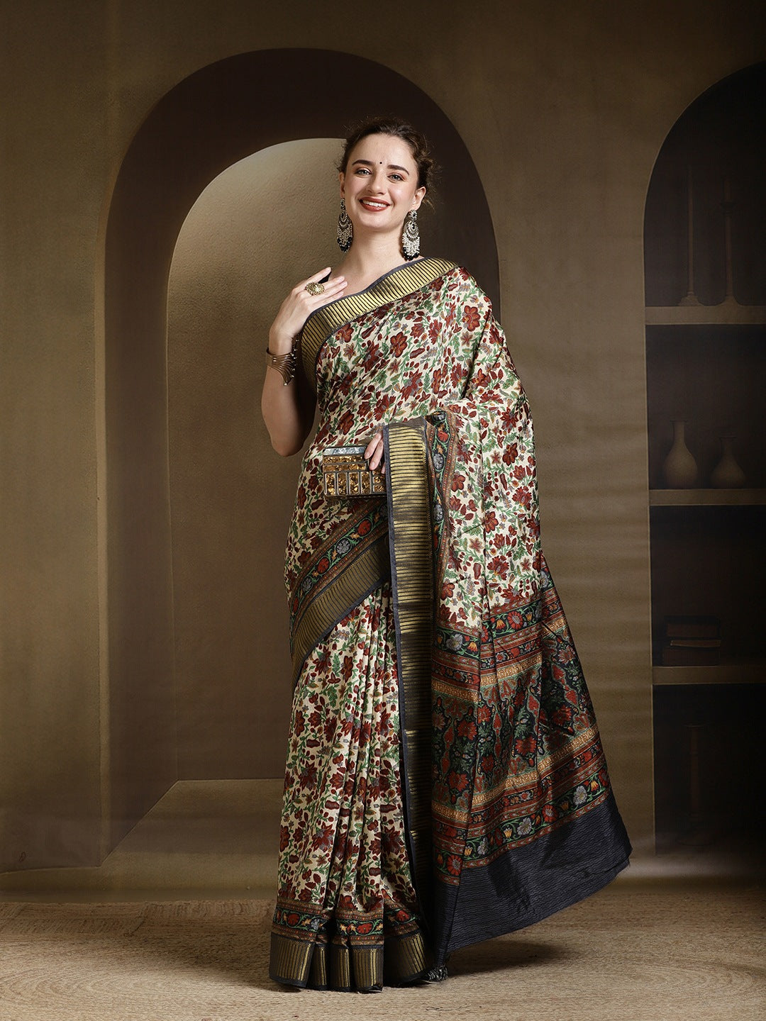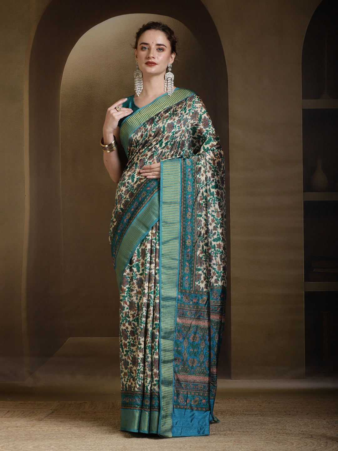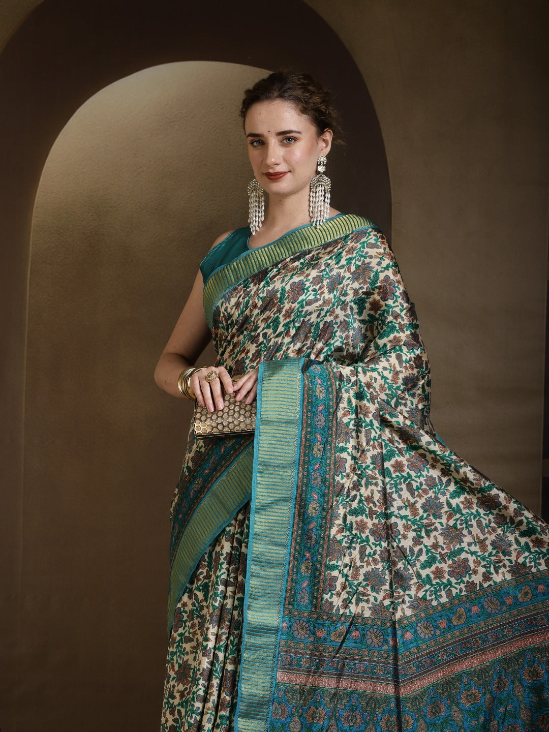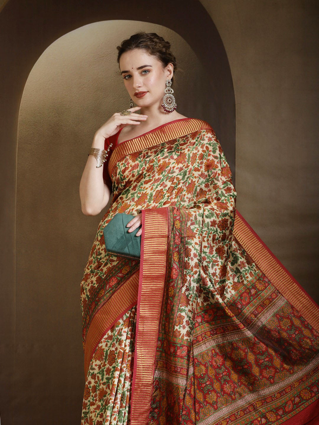 Note: The blouse shown in the pictures is just for Photoshoot purposes. The blouse you will get will be an attached running blouse.