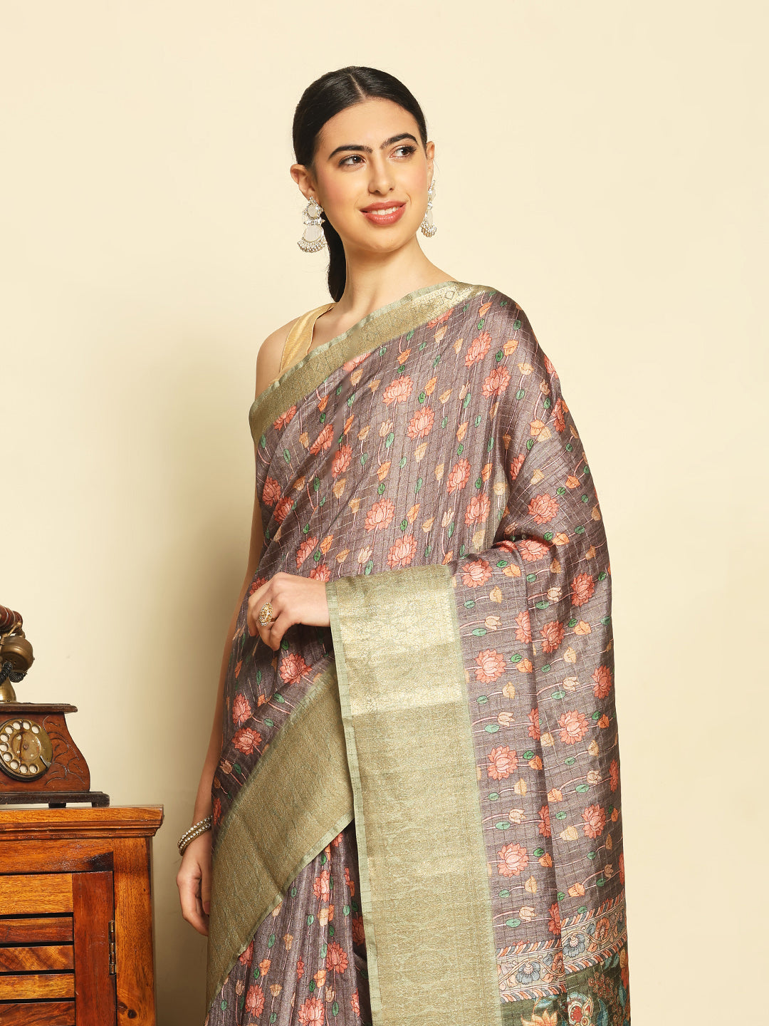 Note: The blouse shown in the pictures is just for Photoshoot purposes. The blouse you will get will be an attached running blouse.
