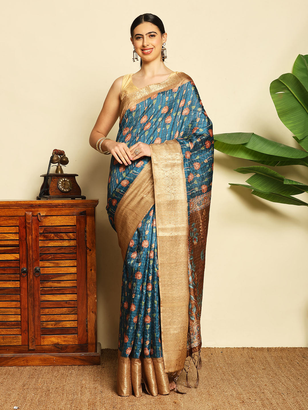 Digital Printed Tussar Saree