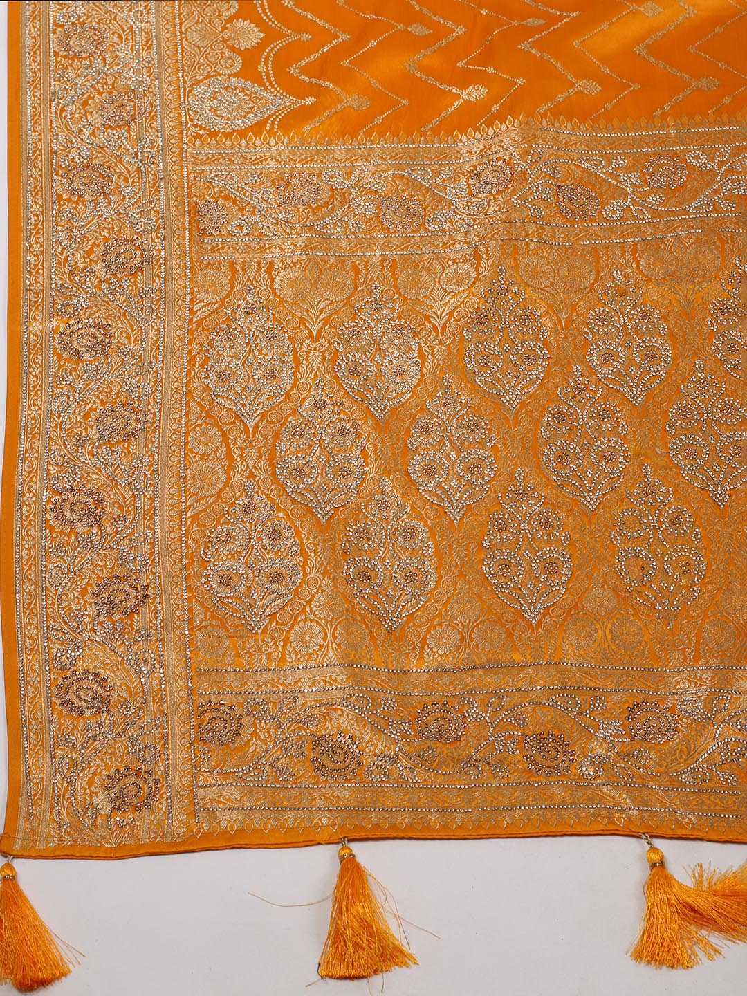 Note: The blouse shown in the pictures is just for Photoshoot purposes. The blouse you will get will be an attached running blouse.