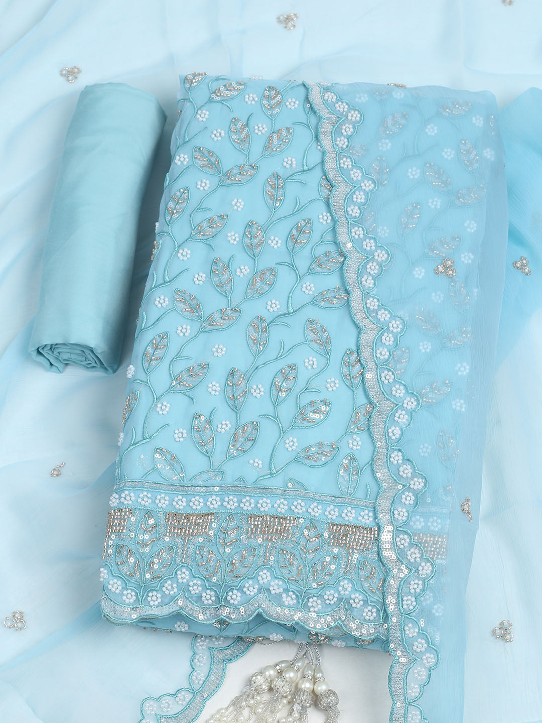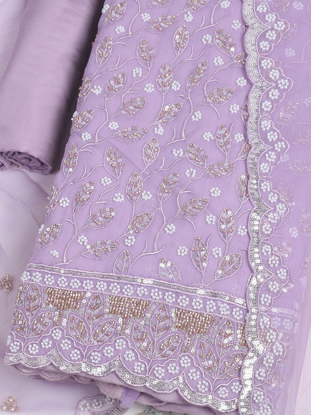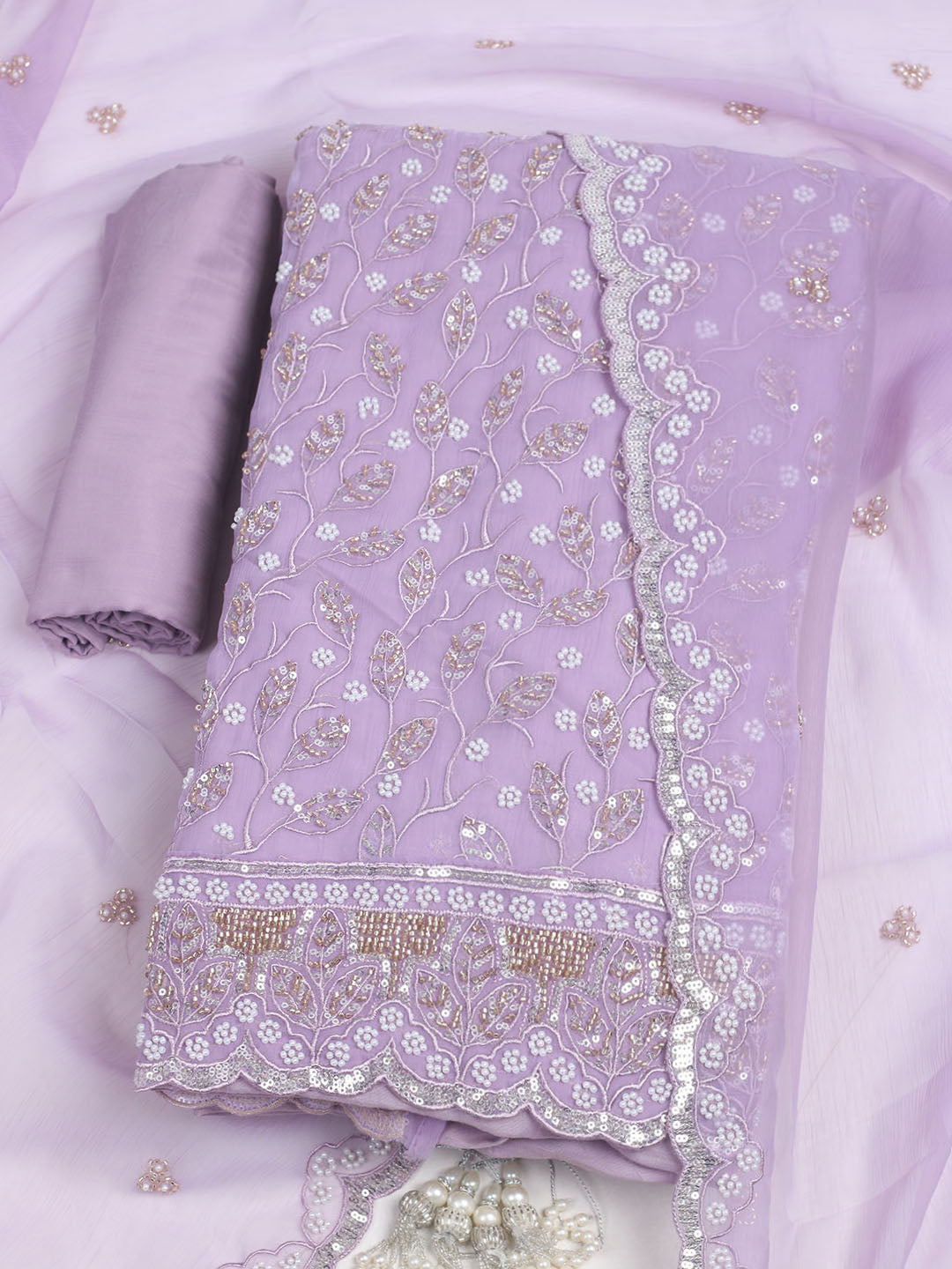 Embroidered Chiffon Unstitched Suit With Dupatta