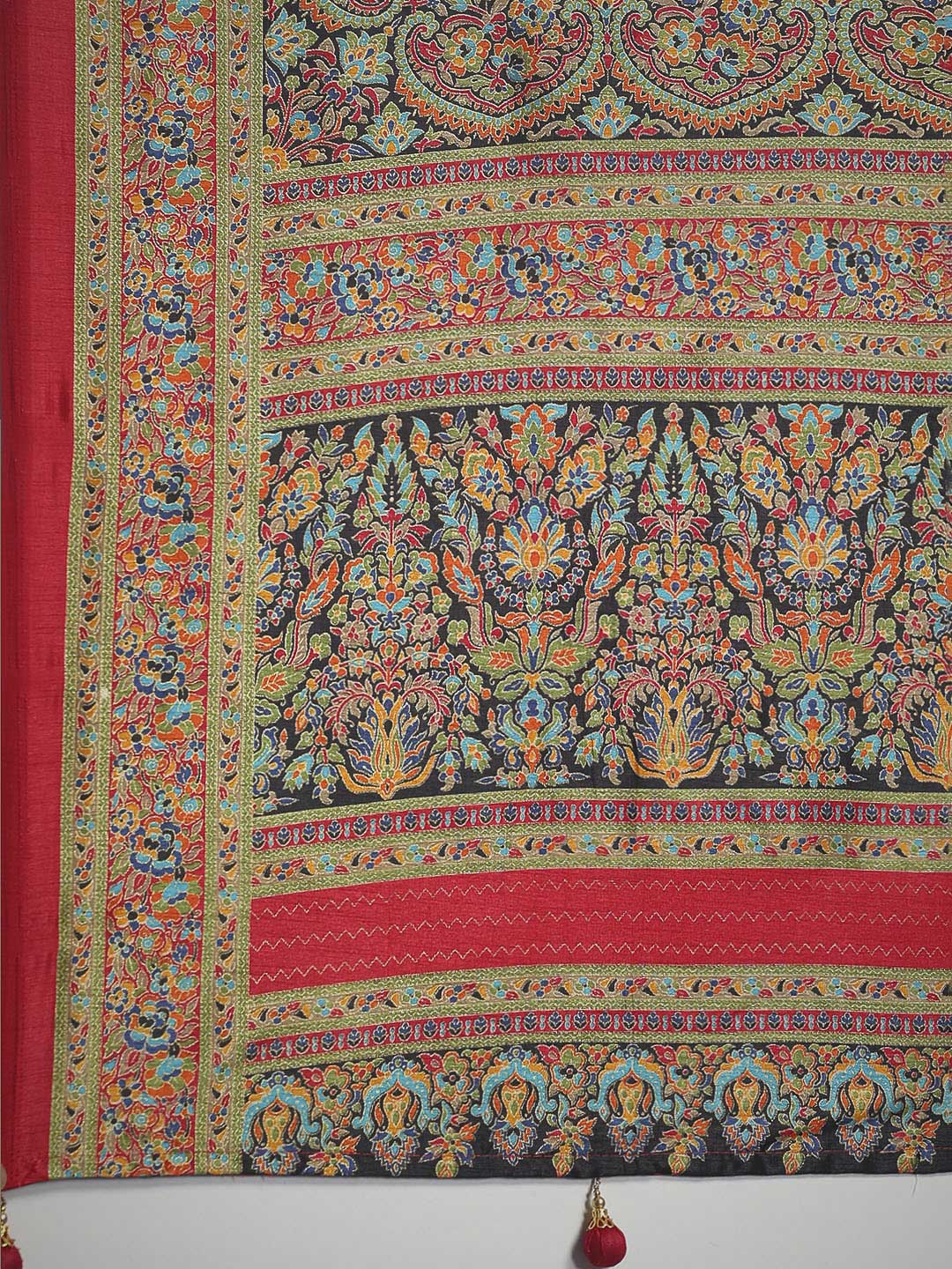 Digital Printed Art Silk Unstitched Suit With Pant & Dupatta