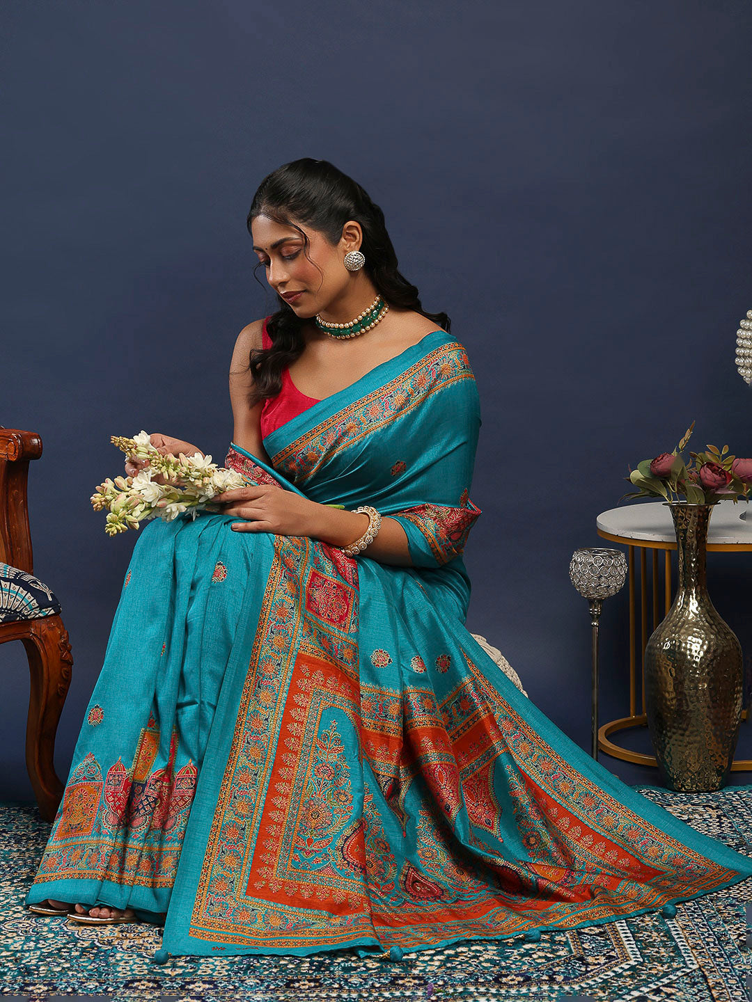 Note: The blouse shown in the pictures is just for Photoshoot purposes. The blouse you will get will be an attached running blouse.