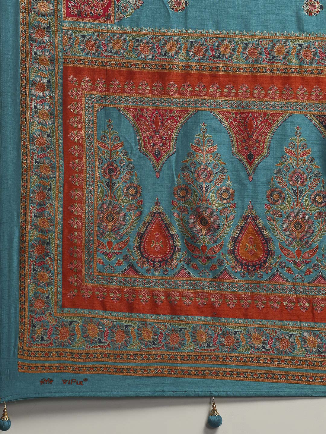 Digital Printed Art Silk Unstitched Suit With Pant & Dupatta