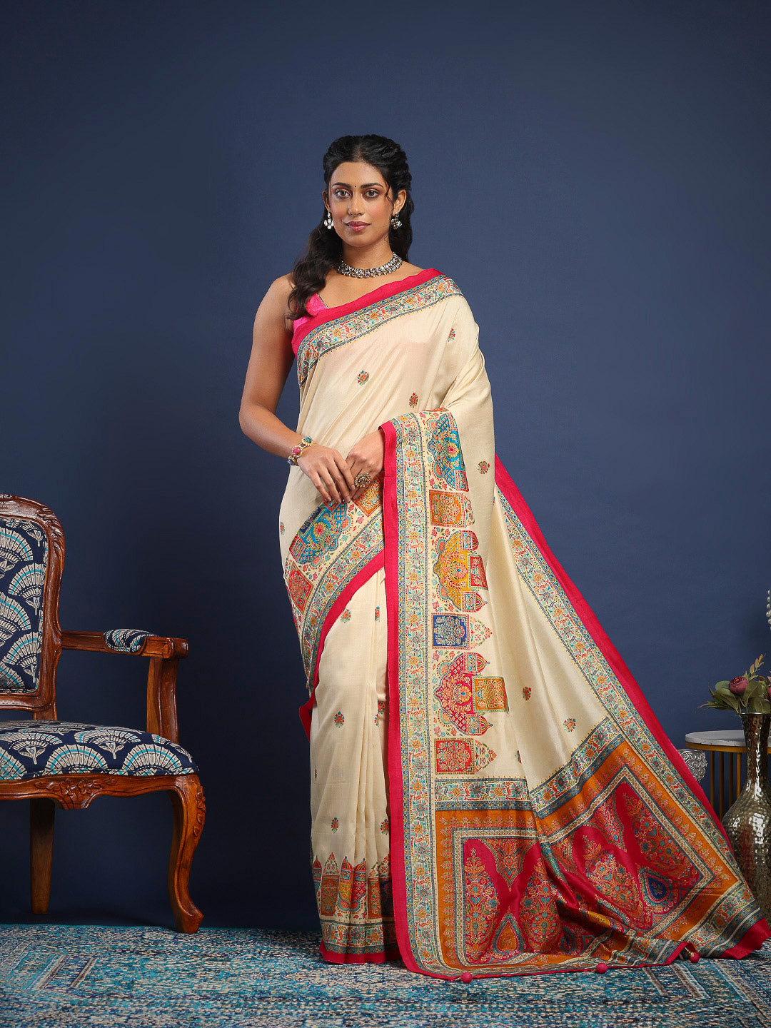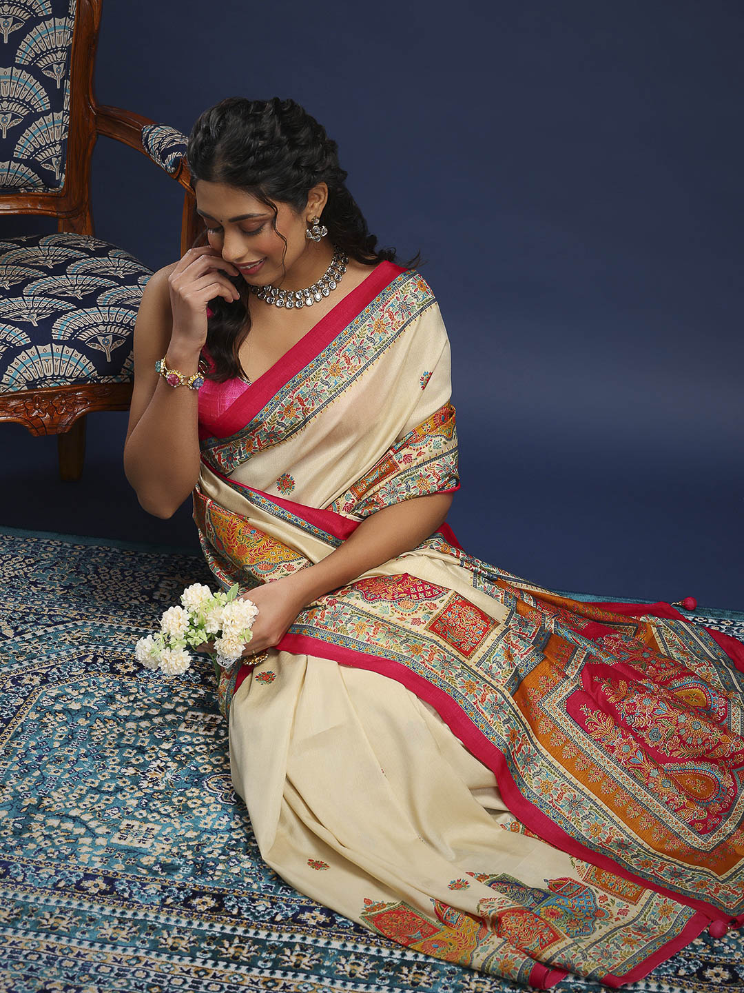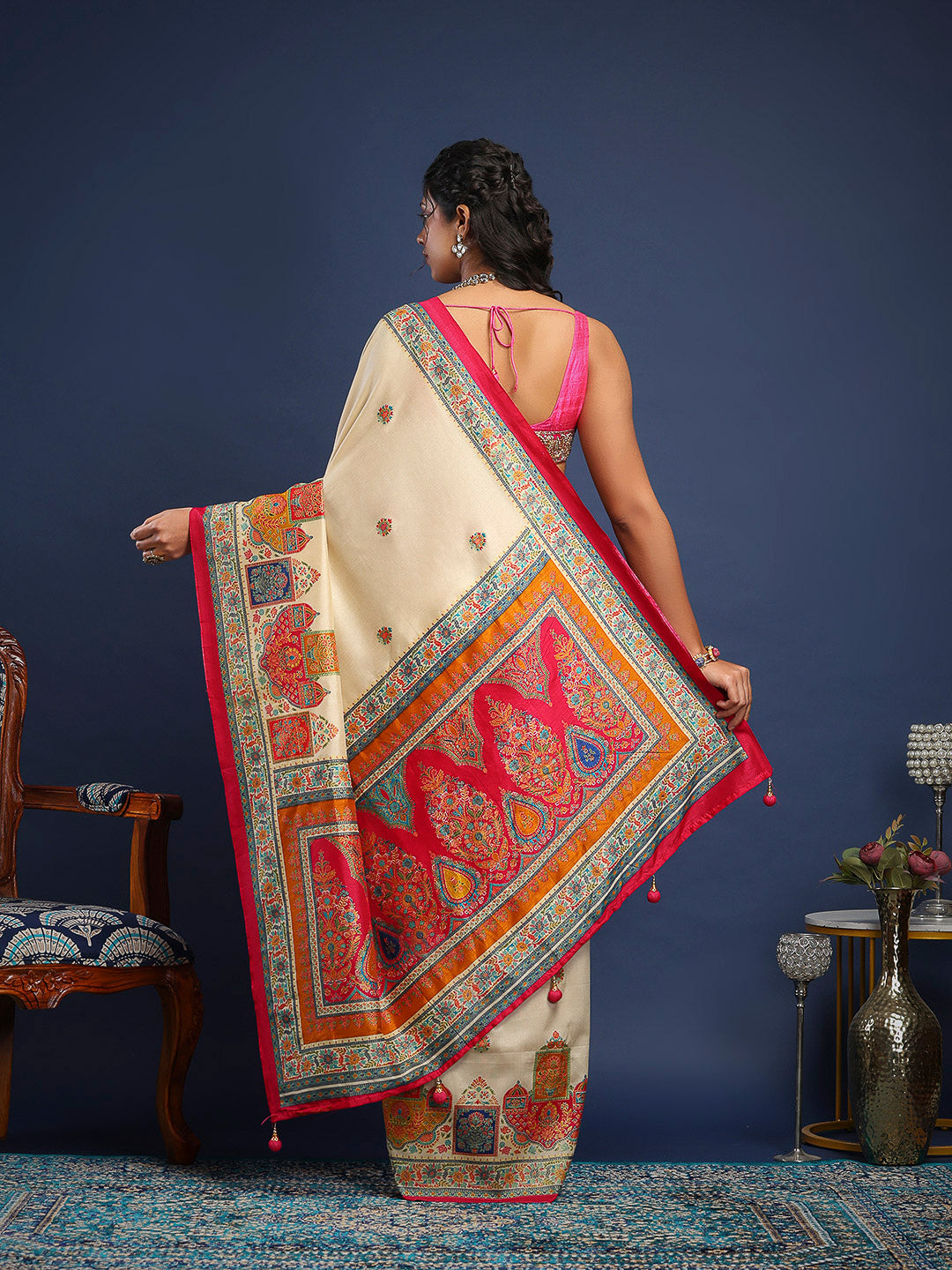 Note: The blouse shown in the pictures is just for Photoshoot purposes. The blouse you will get will be an attached running blouse.