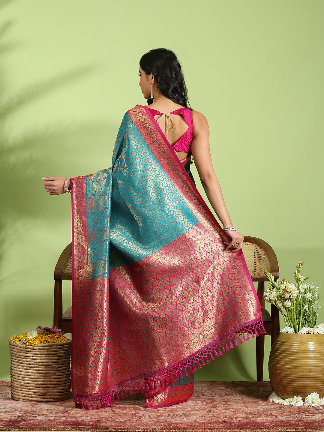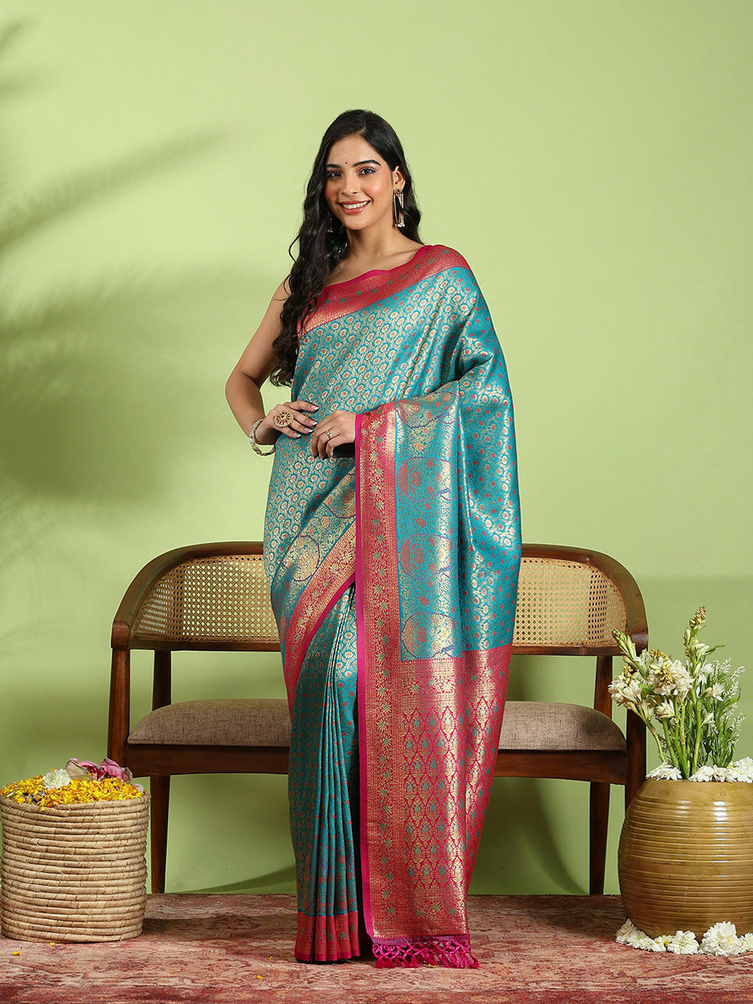 Note: The blouse shown in the pictures is just for Photoshoot purposes. The blouse you will get will be an attached running blouse.