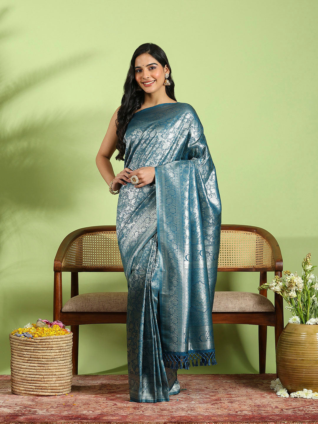 Note: The blouse shown in the pictures is just for Photoshoot purposes. The blouse you will get will be an attached running blouse.