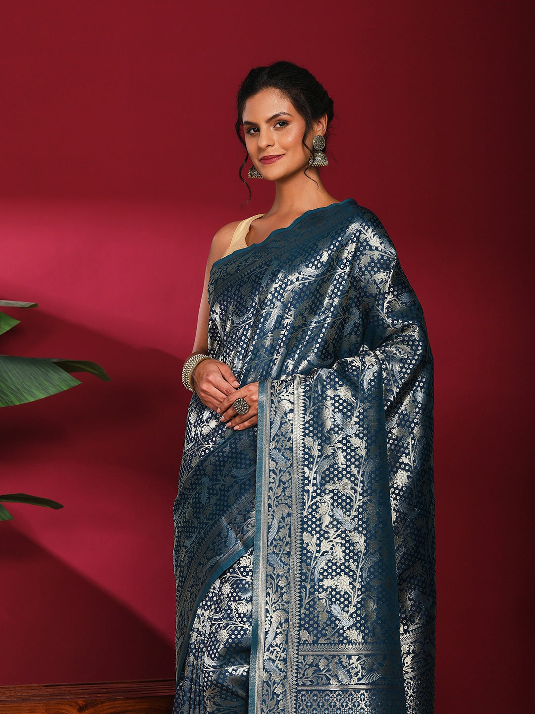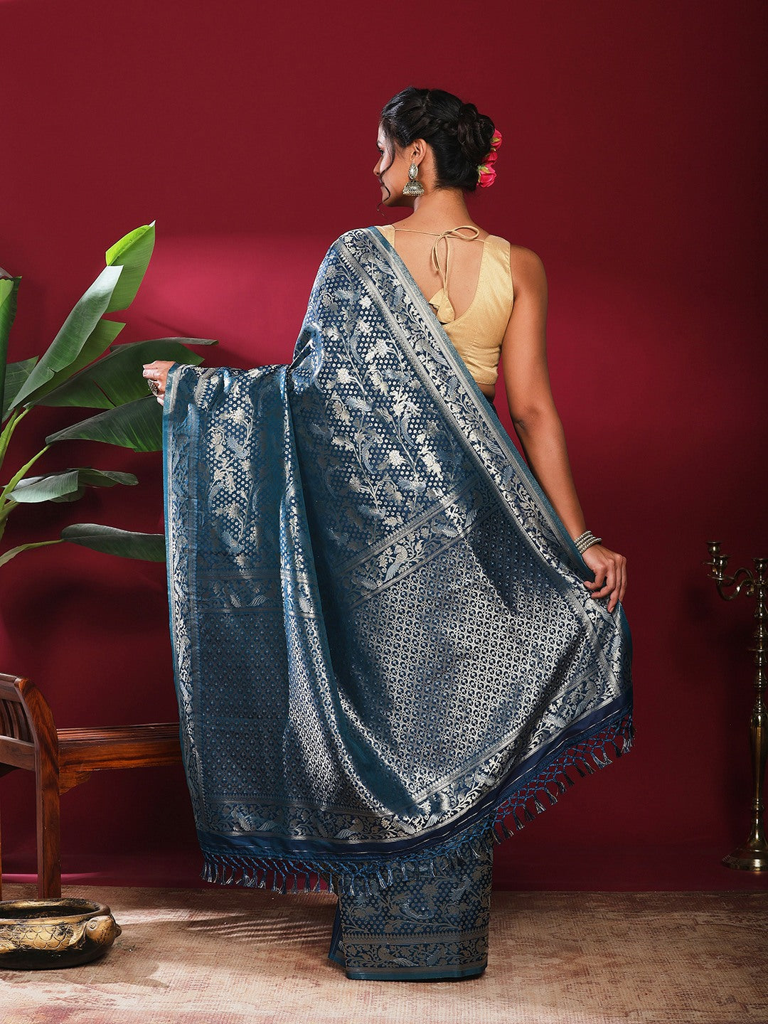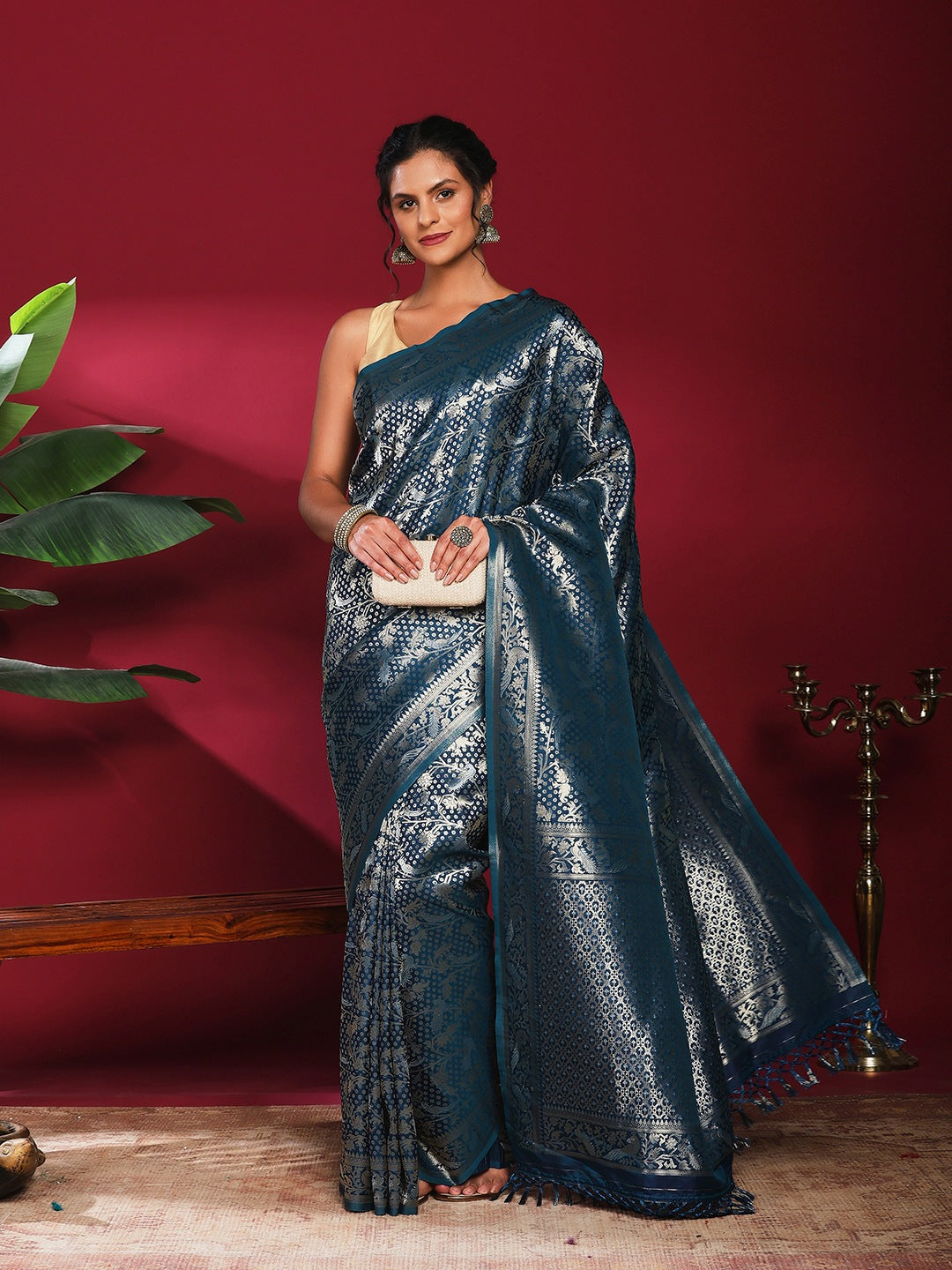 Note: The blouse shown in the pictures is just for Photoshoot purposes. The blouse you will get will be an attached running blouse.