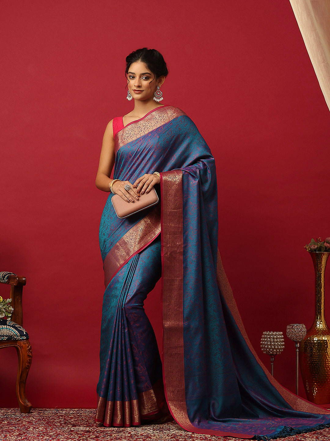 Note: The blouse shown in the pictures is just for Photoshoot purposes. The blouse you will get will be an attached running blouse.