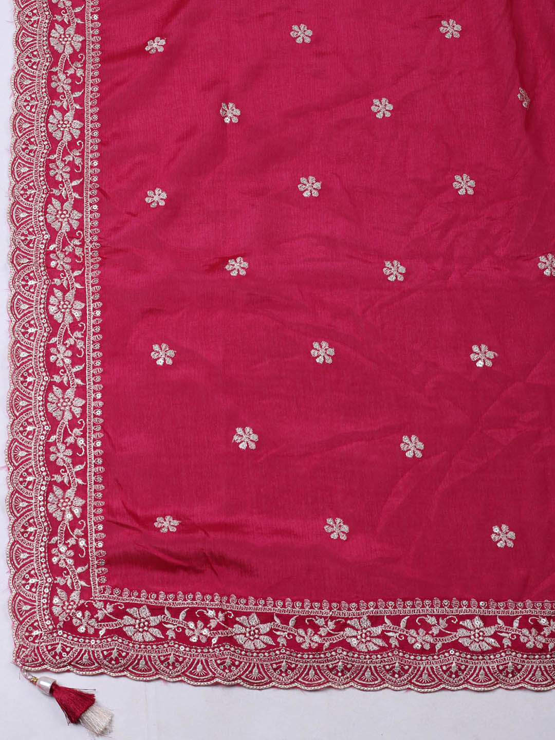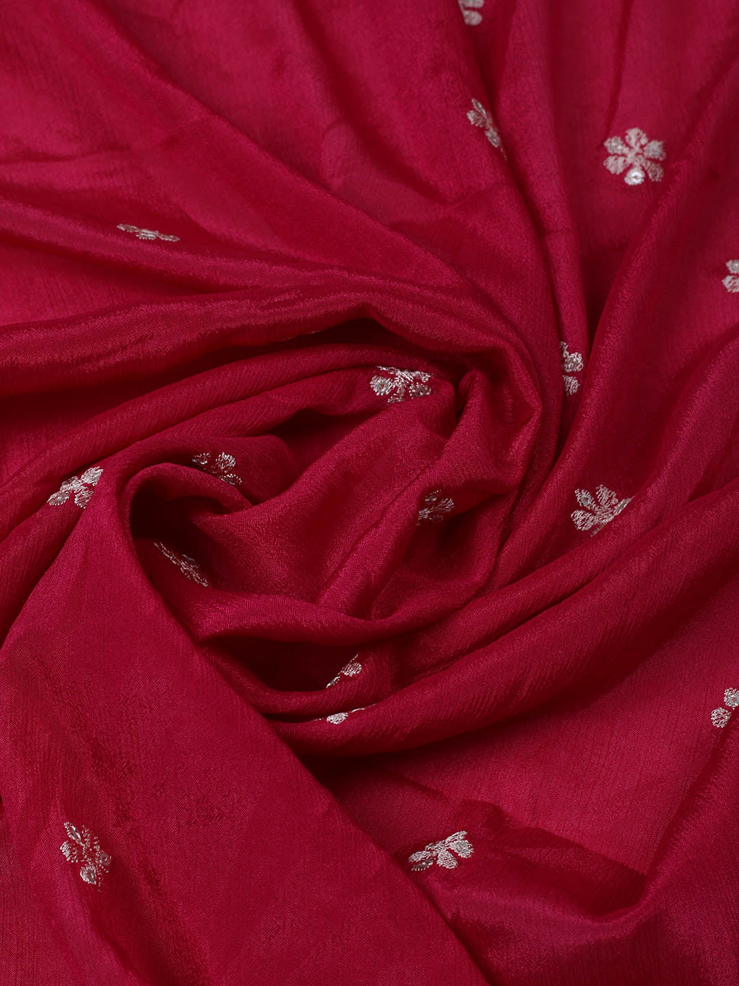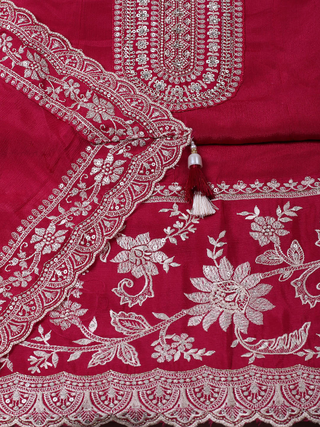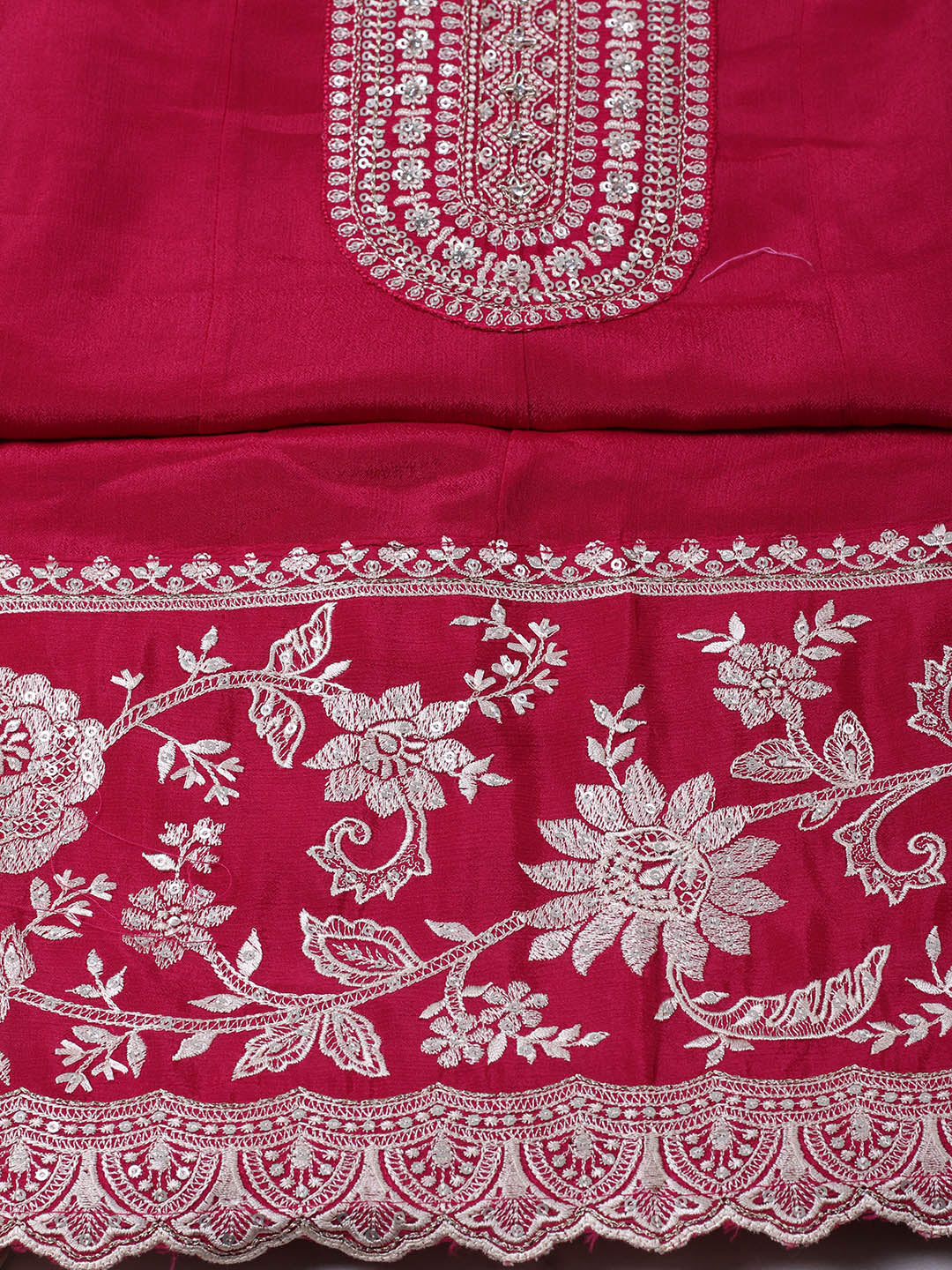 Embroidered Chinon Rani Unstitched Suit With Pant & Dupatta