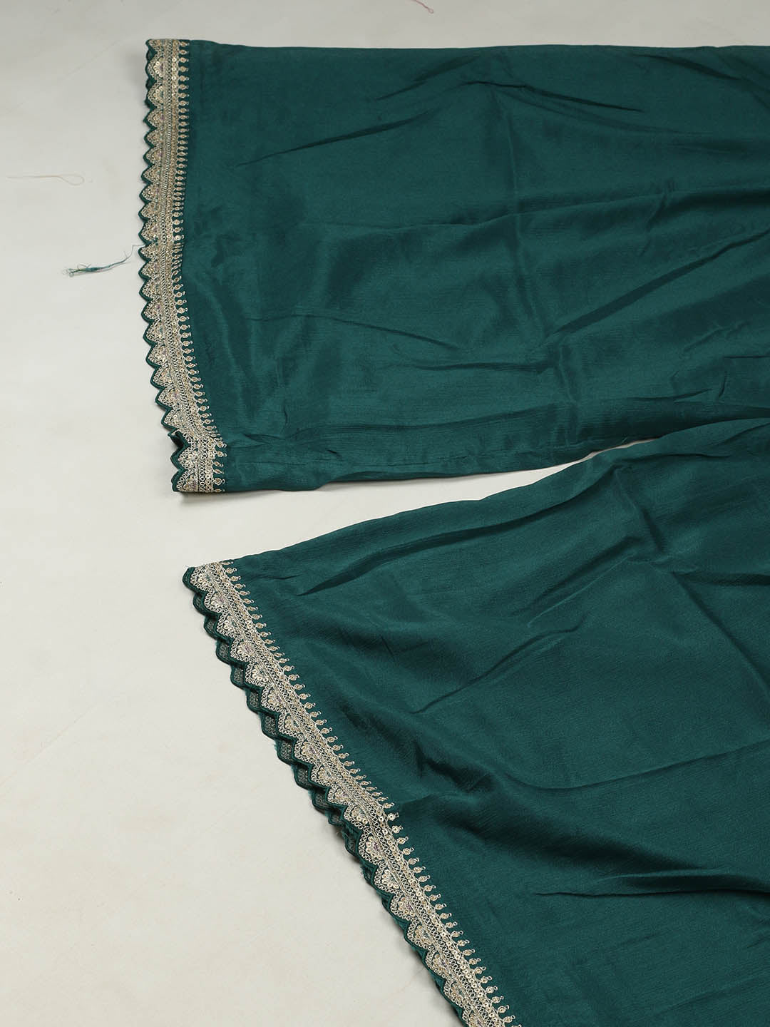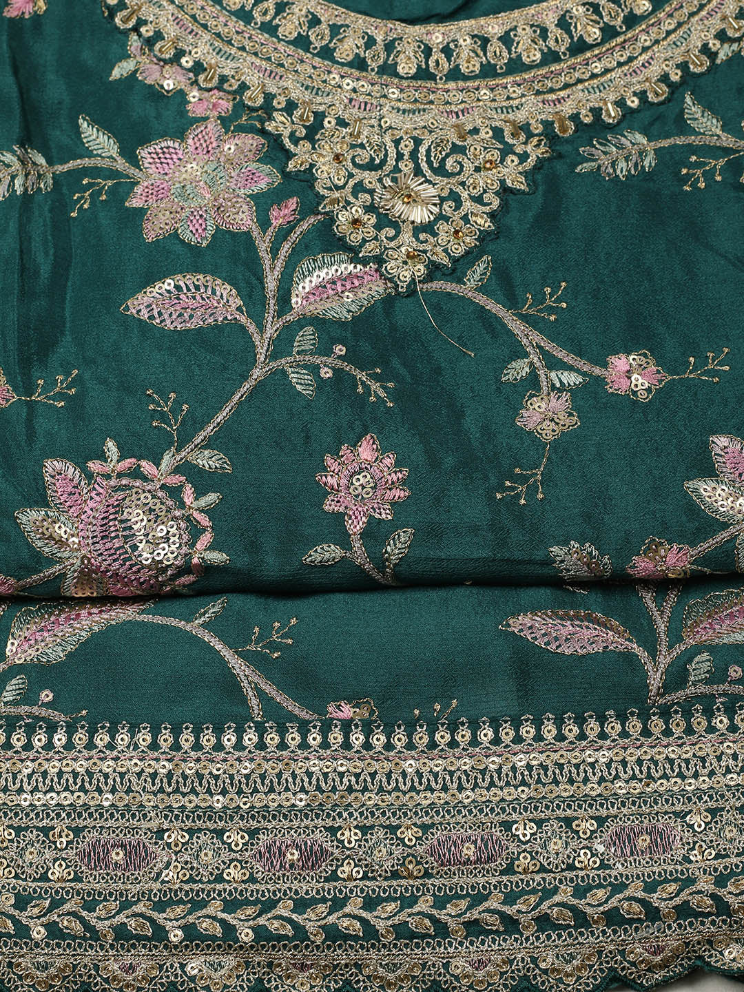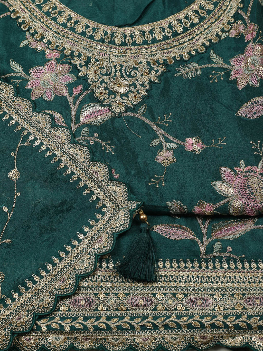 Embroidered Chinon Rama Green Unstitched Suit With Pant & Dupatta