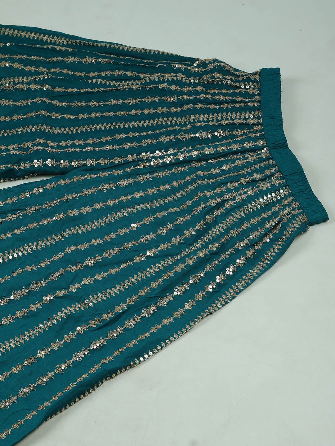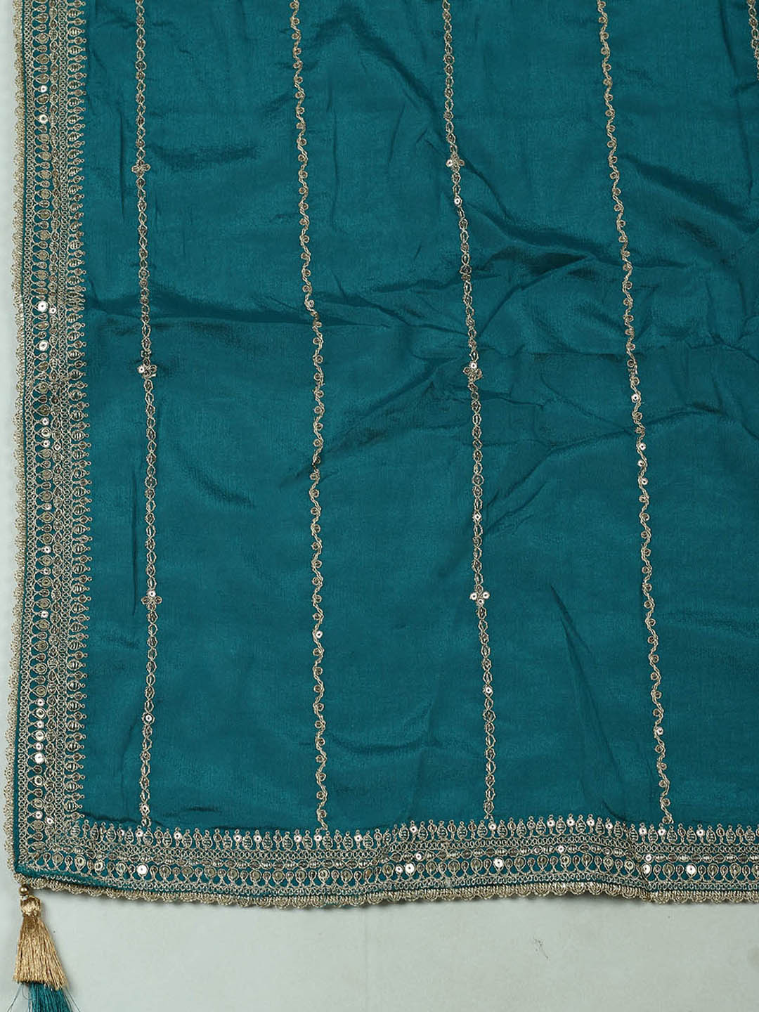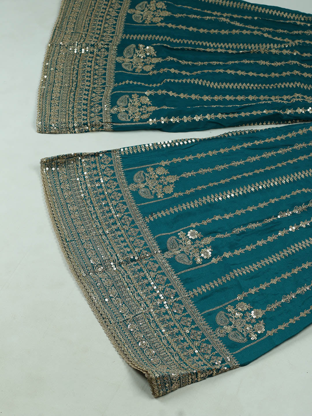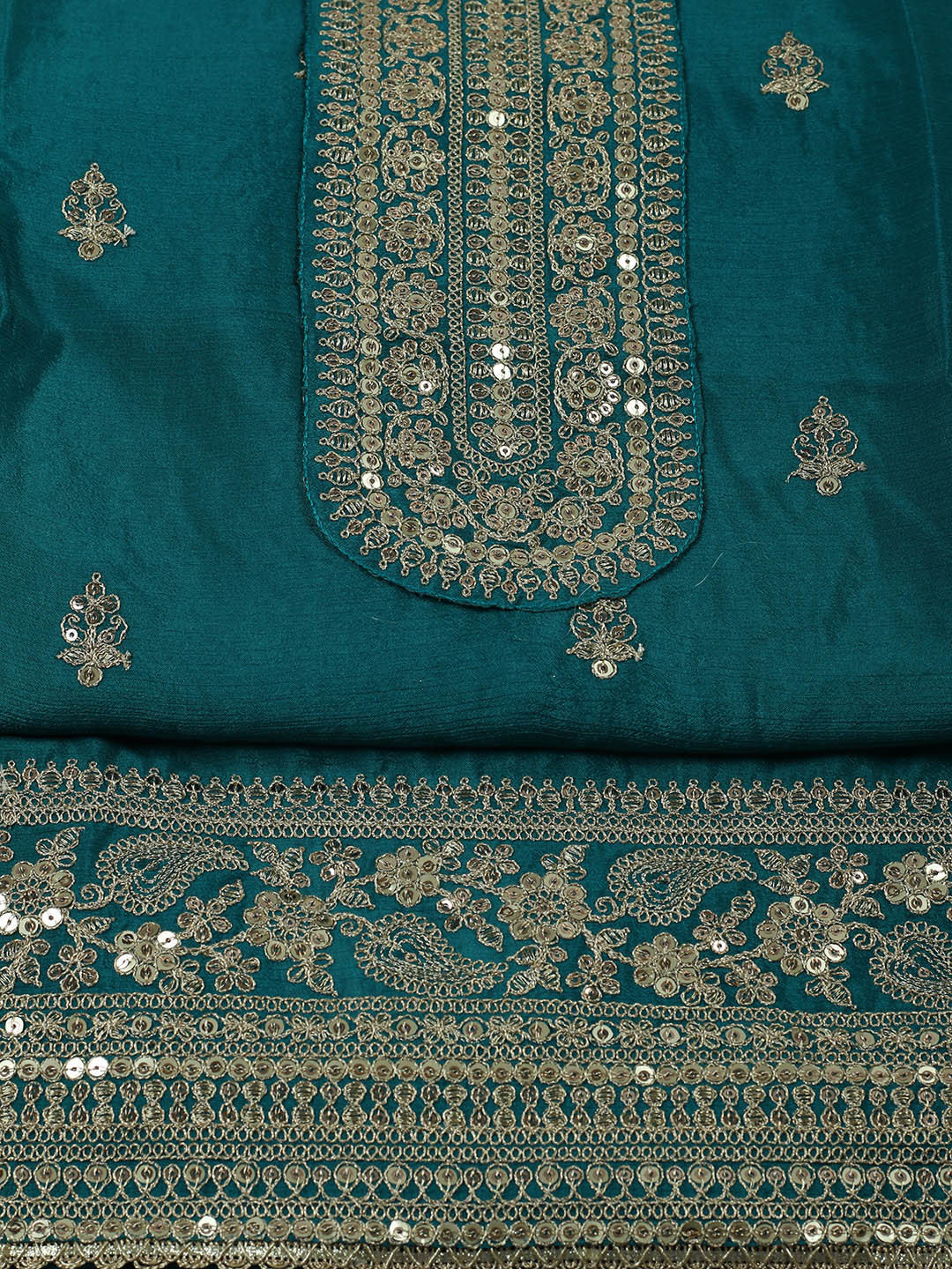 Embroidered Chinon Lake Blue Unstitched Suit With Pant & Dupatta