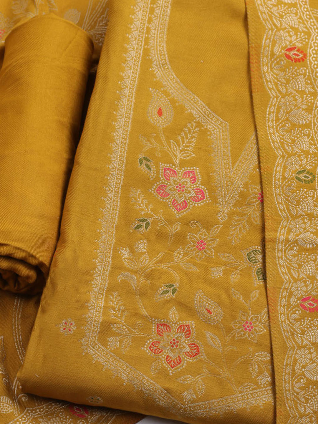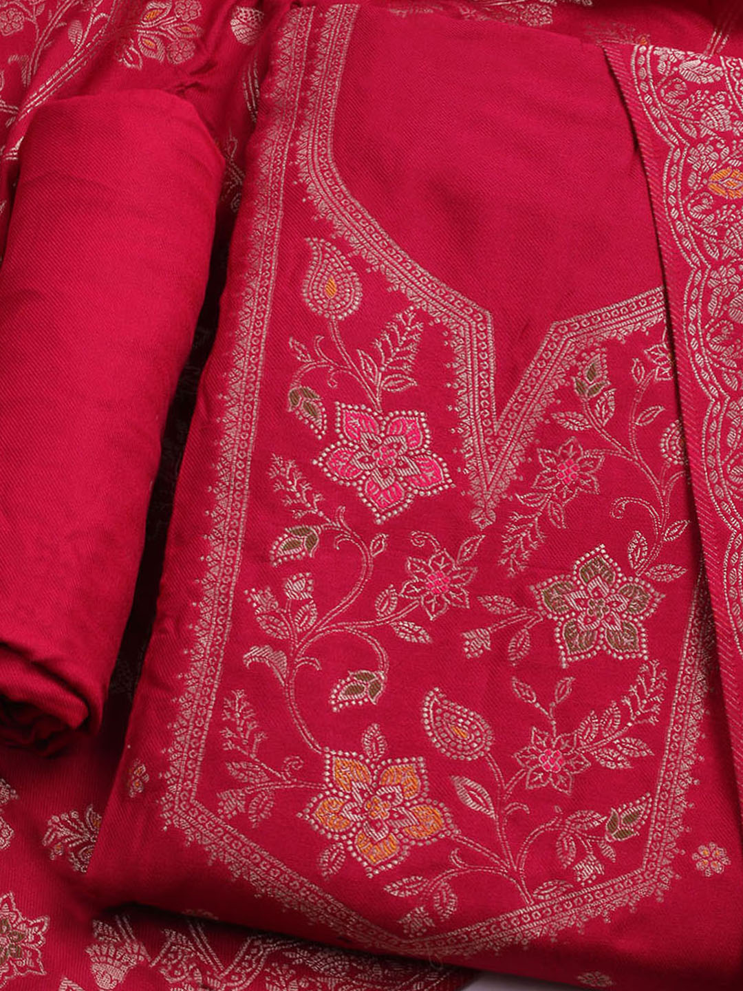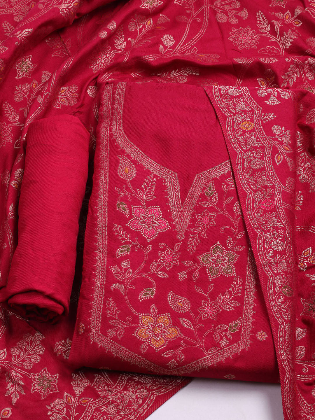 Pashmina Woven Design Unstitched Kurta With Pant & Dupatta